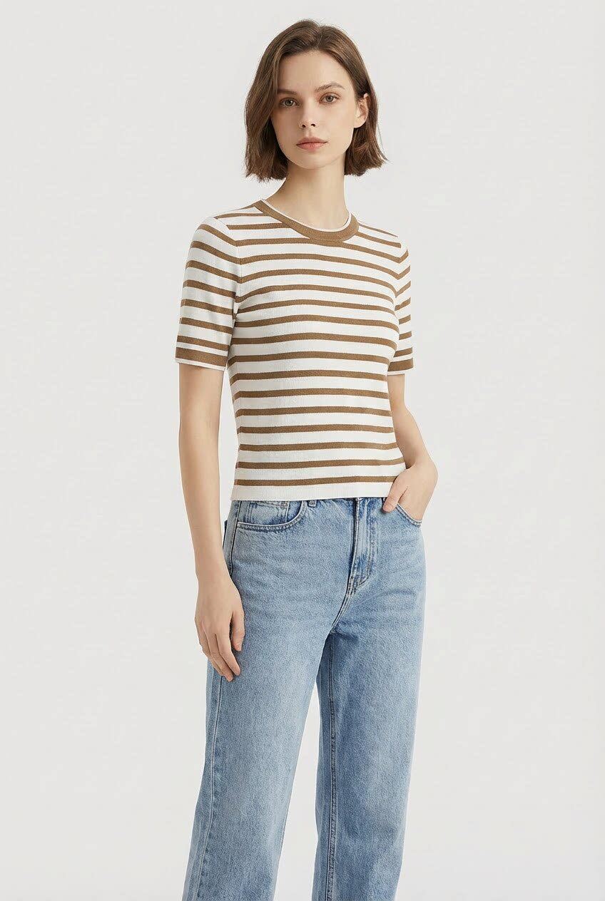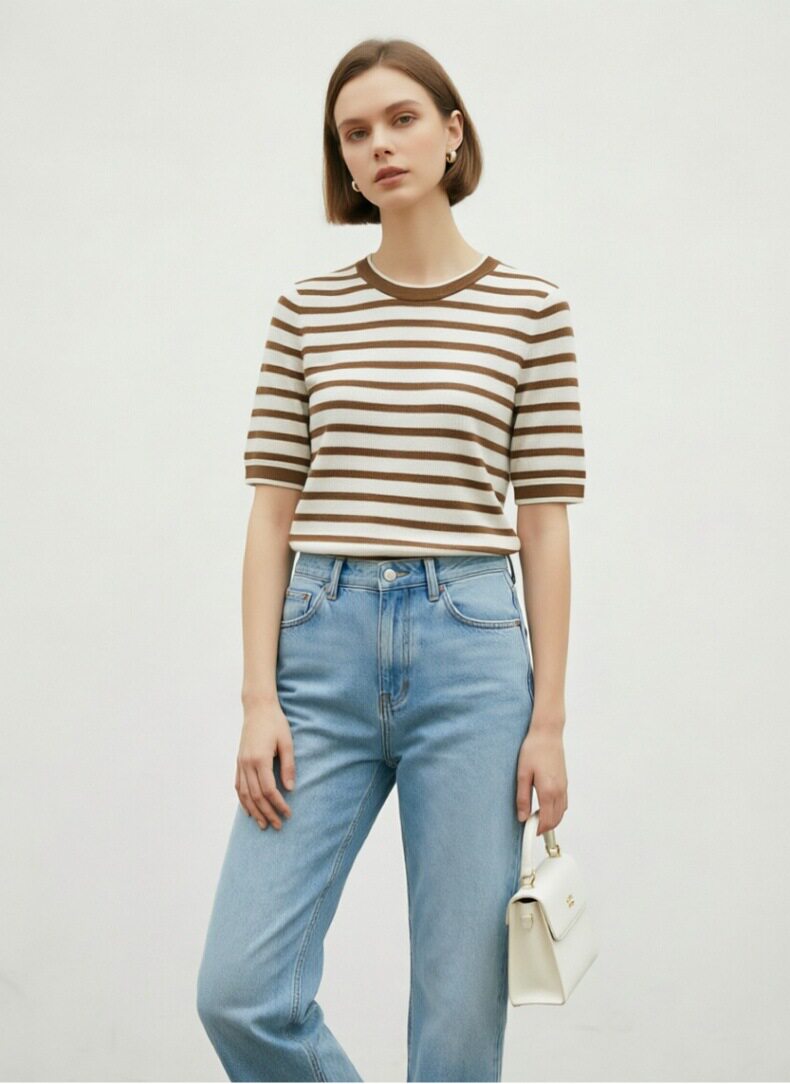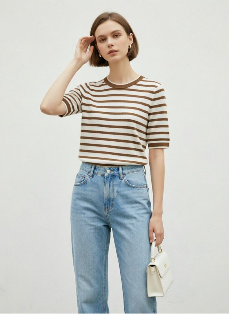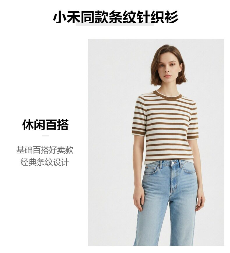 「自」全新升级【铂金会员183/天猫239/差价56】(14157)洛诗琳高级感天丝条纹短袖2026夏季新款圆领显瘦针织T恤女