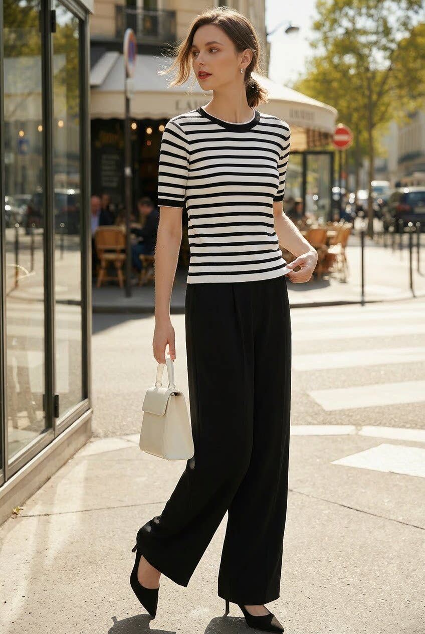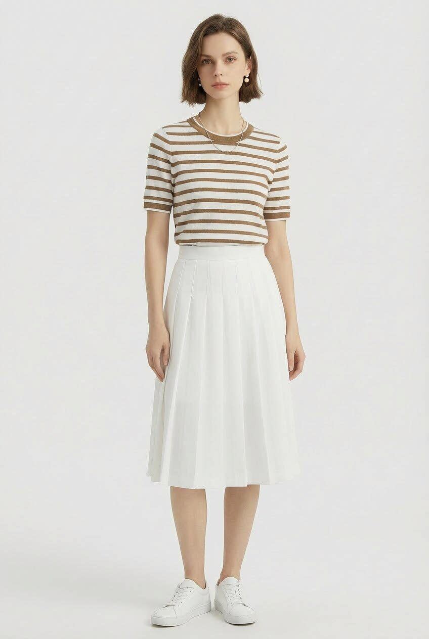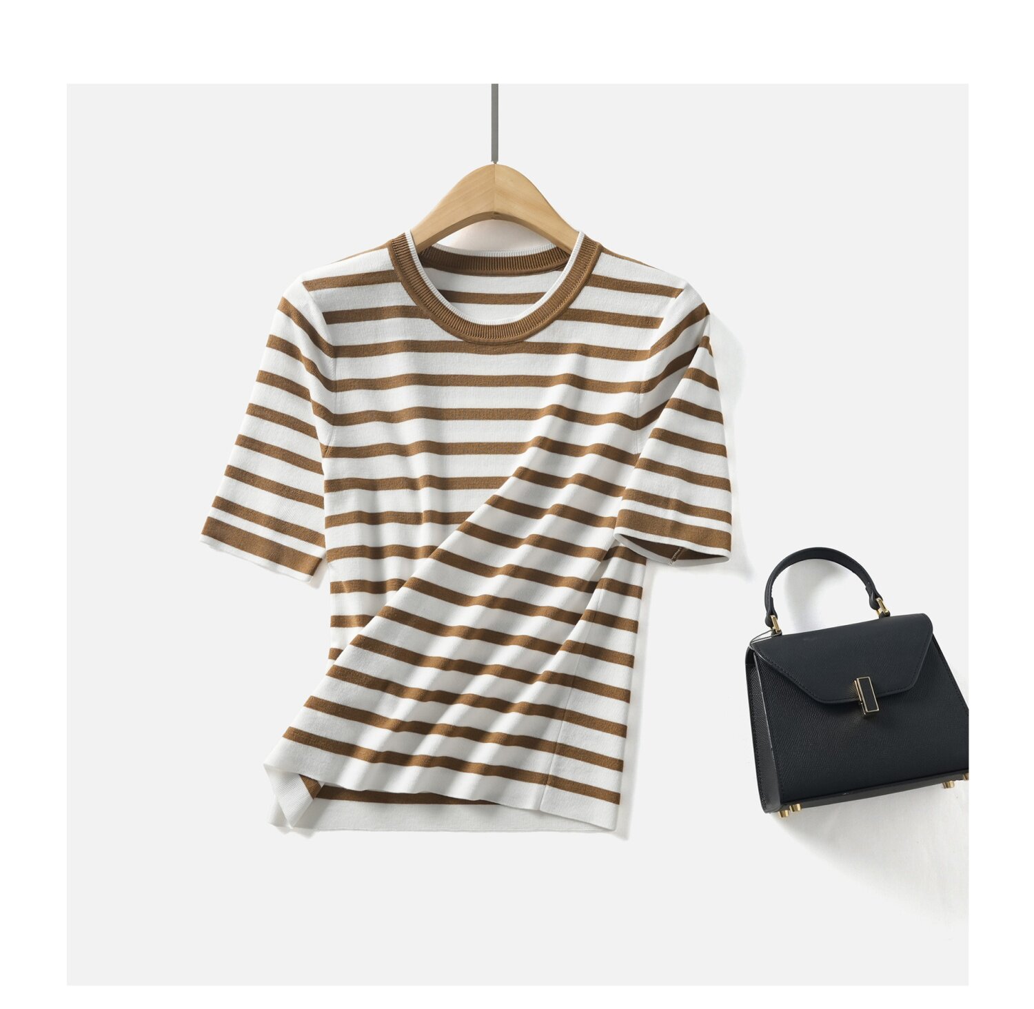 「自」全新升级【铂金会员183/天猫239/差价56】(14157)洛诗琳高级感天丝条纹短袖2026夏季新款圆领显瘦针织T恤女