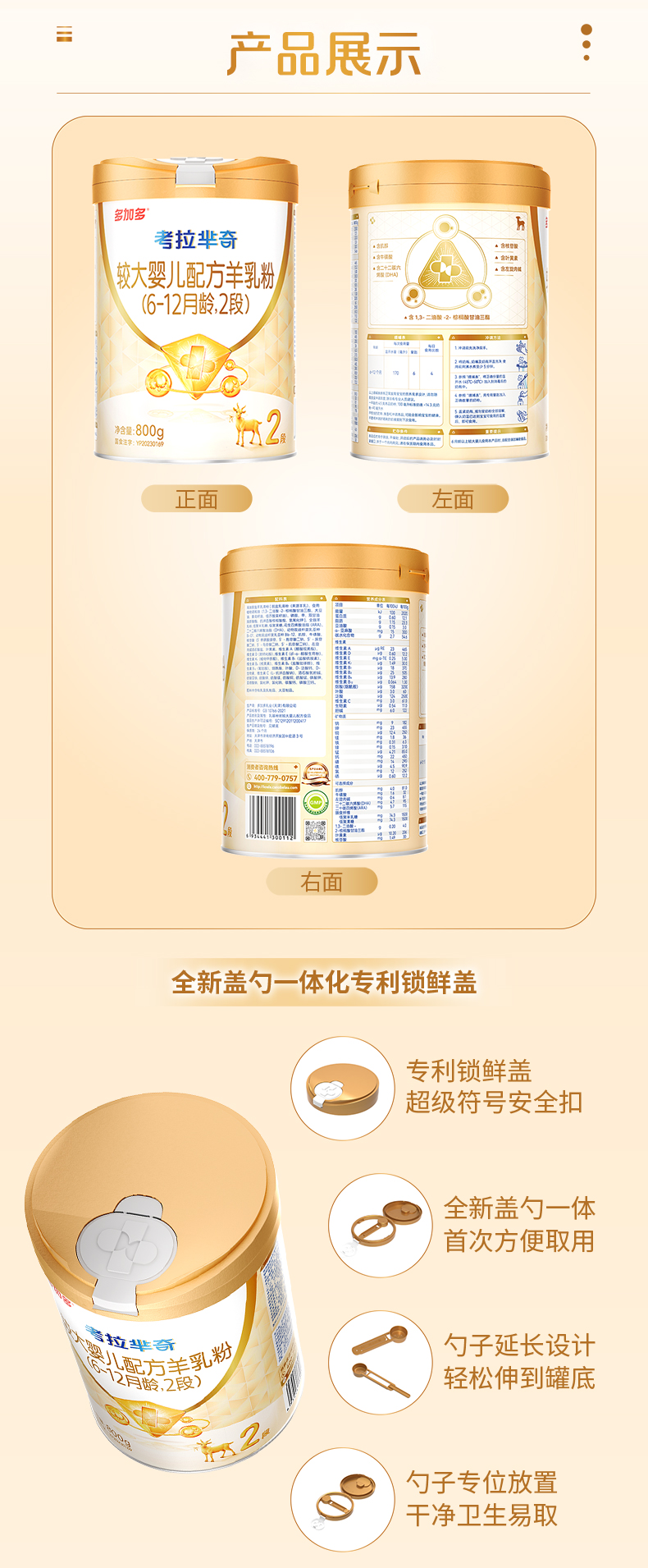 多加多考拉芈奇2段800gOPO好吸收幼儿羊奶粉6-12月
