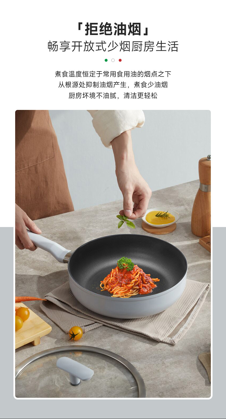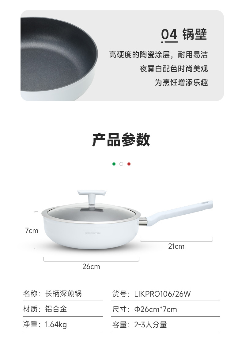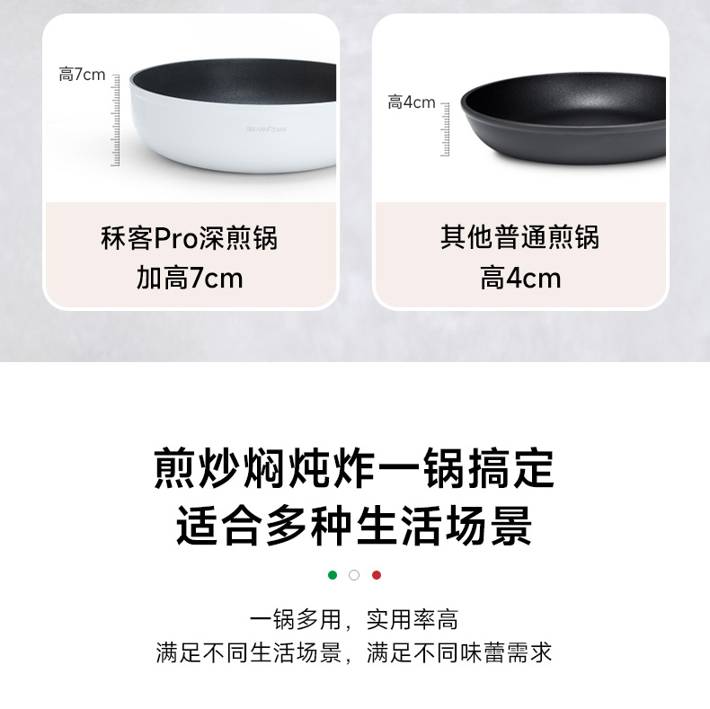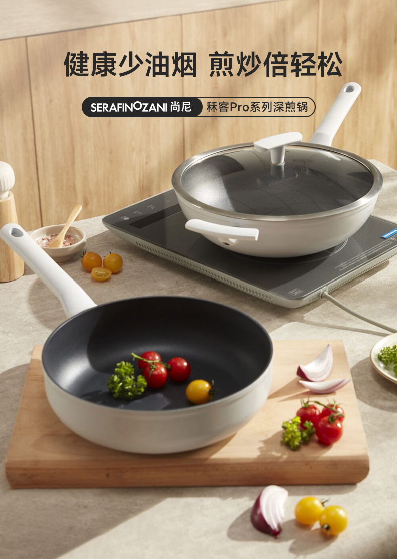 意大利尚尼深煎锅 | 26*7cm 夜雾白 秝客Pro系列不粘锅 煎炒焖炖炸一锅搞定 电磁炉燃气灶通用 送配套锅铲