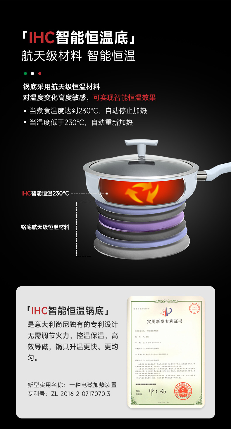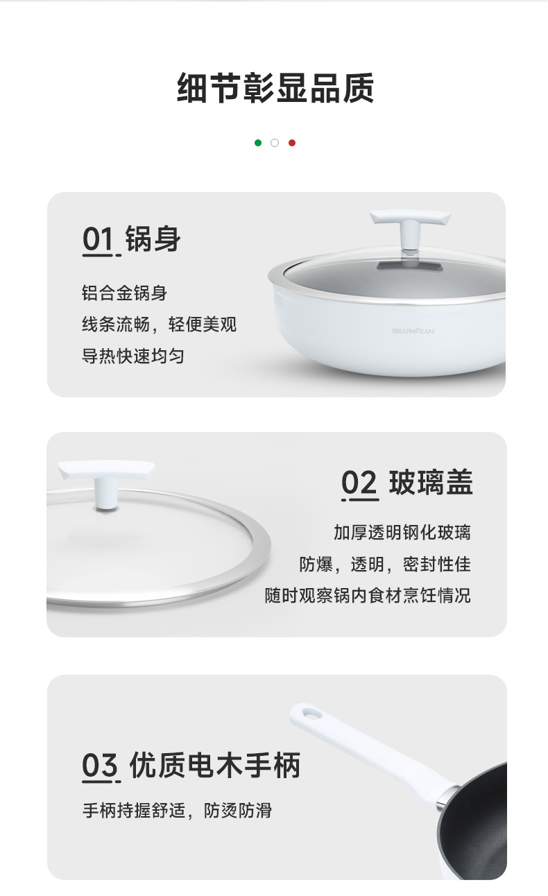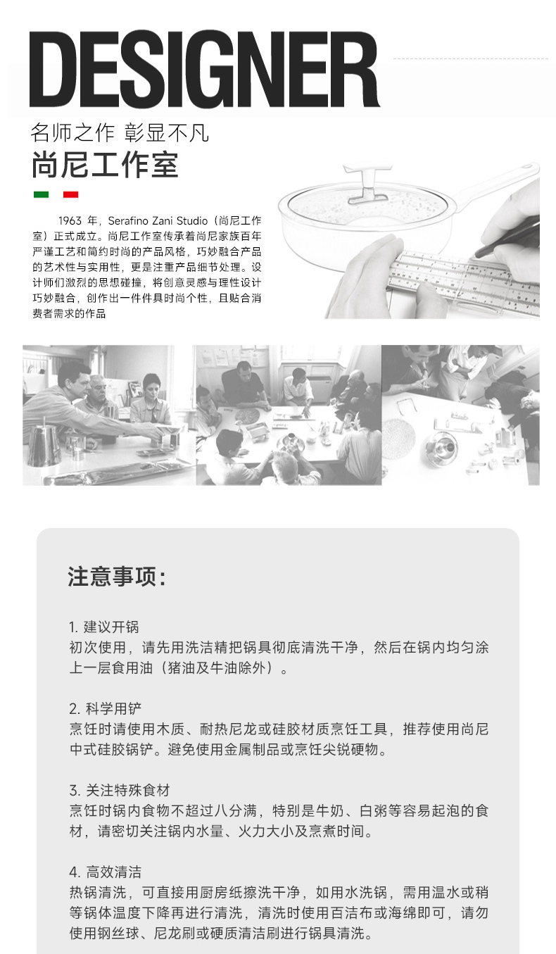 意大利尚尼深煎锅 | 26*7cm 夜雾白 秝客Pro系列不粘锅 煎炒焖炖炸一锅搞定 电磁炉燃气灶通用 送配套锅铲