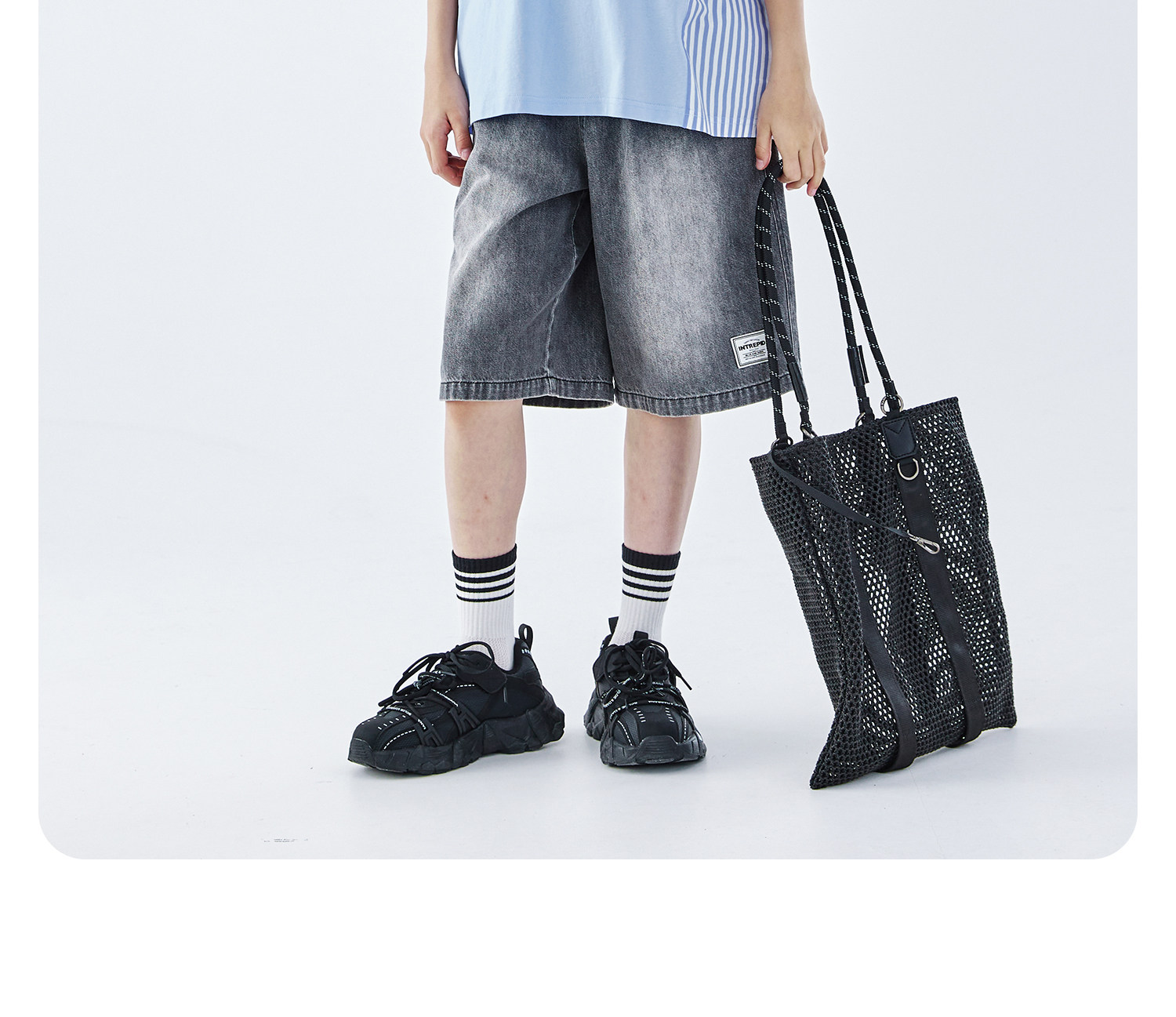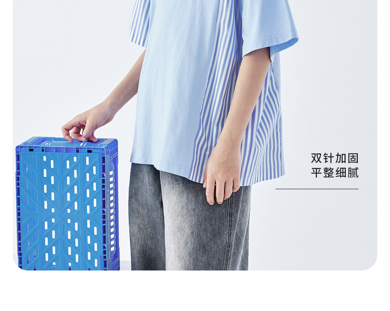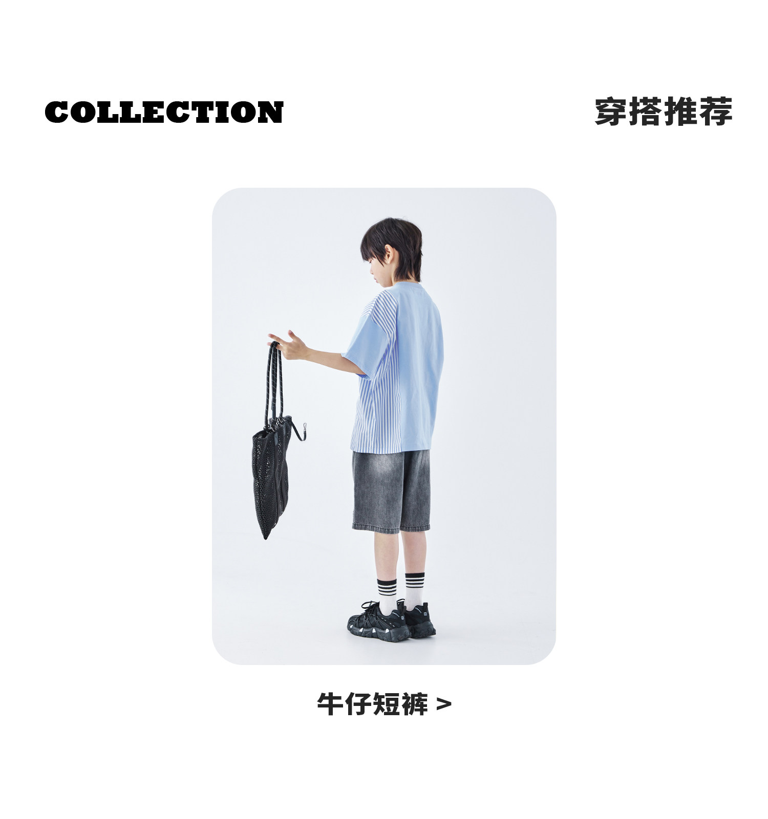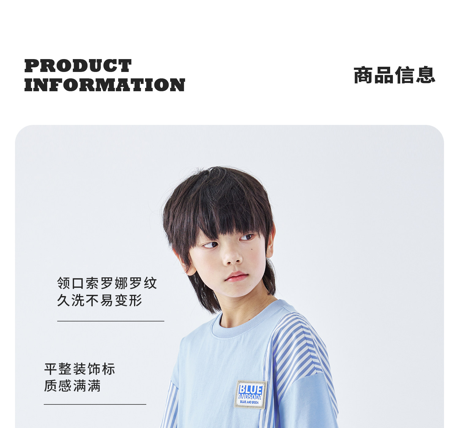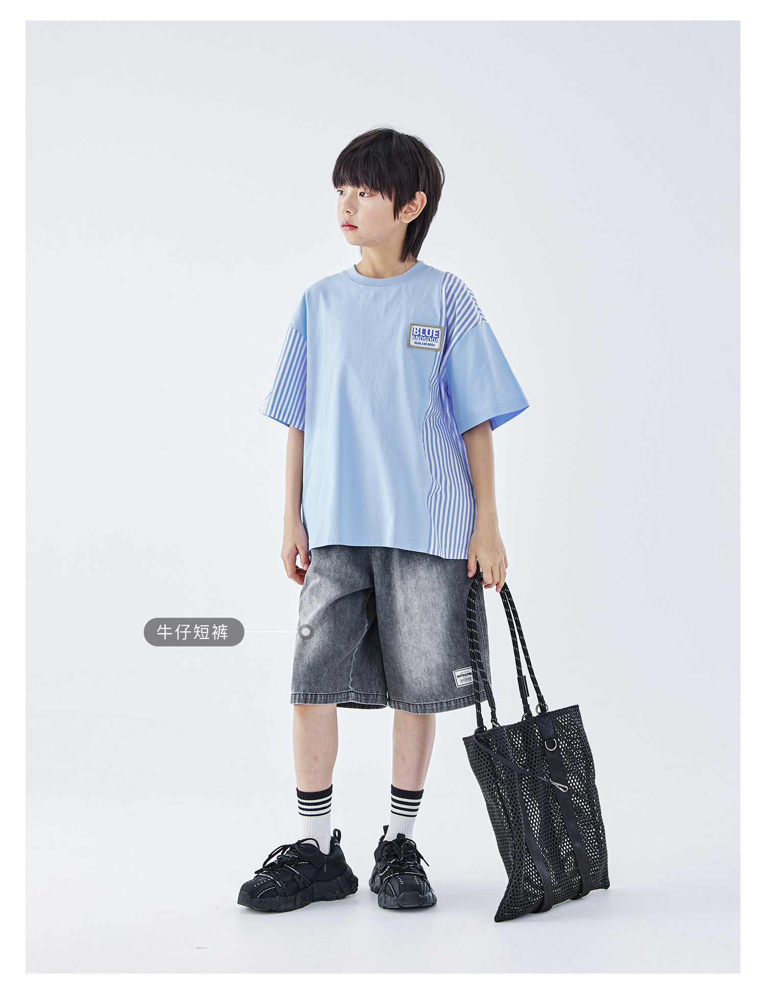 蓝汽水2026夏季新品男童条纹拼接上衣青少年凉感抗菌时尚短袖T恤