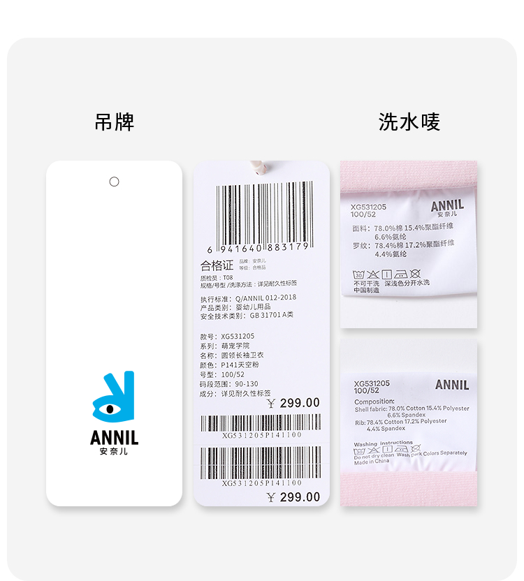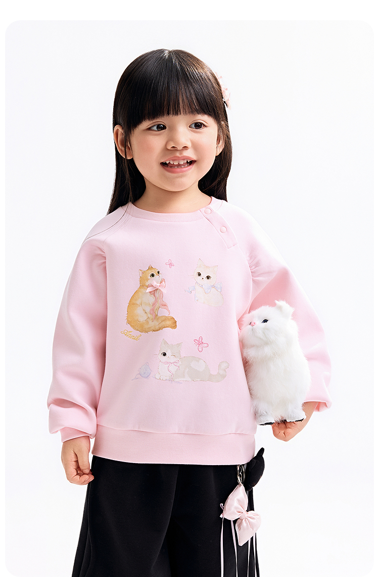 【实体店同款】女童圆领长袖卫衣秋季新款安奈儿童装XG531205