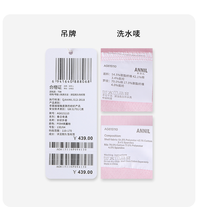 【实体店同款】女童针织外套春季新款安奈儿童装AG615110