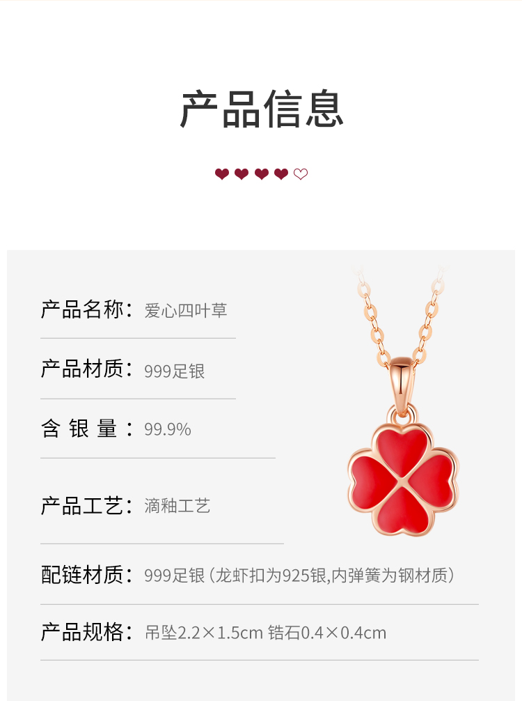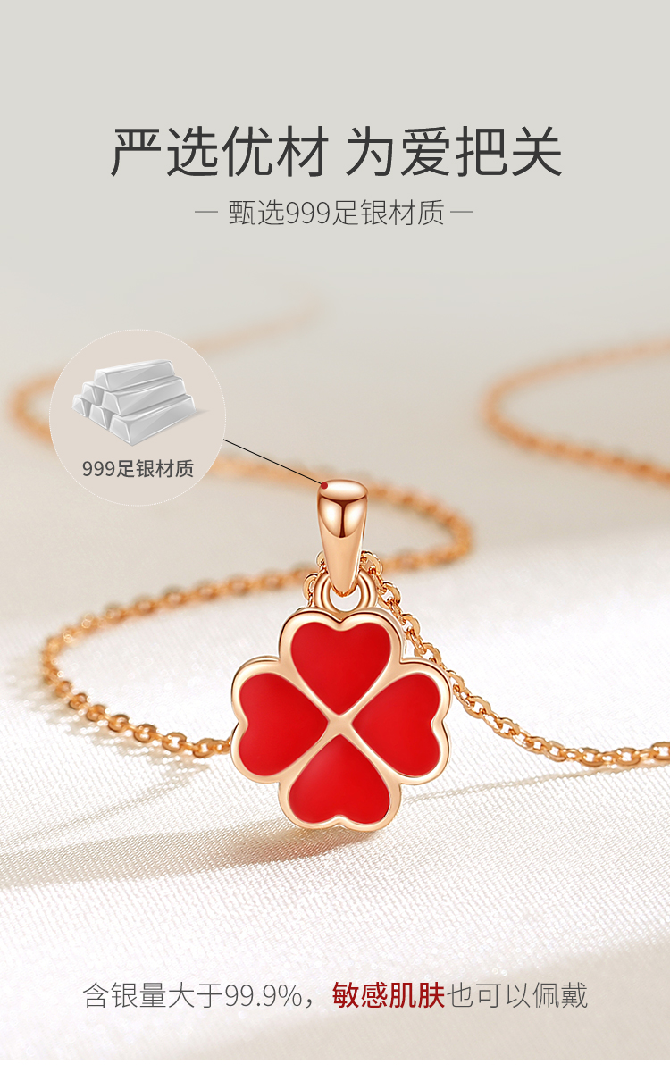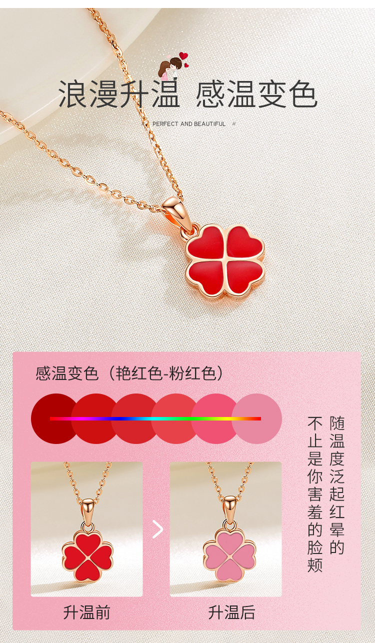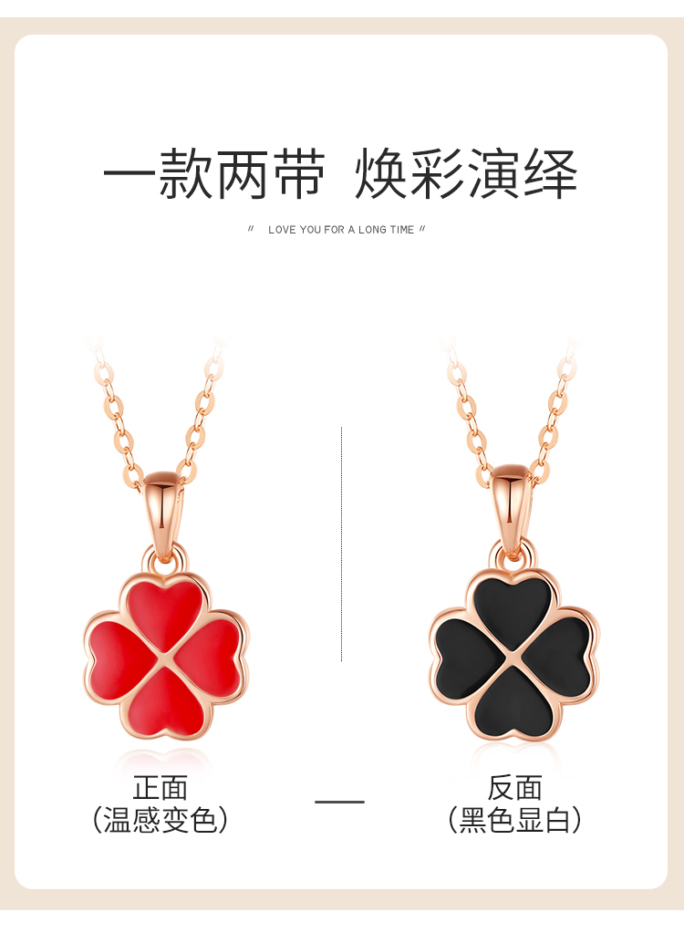 Winy999足银爱心四叶草温感变色项链时尚百搭精致感颈链锁骨链送女友闺蜜节日生日礼物