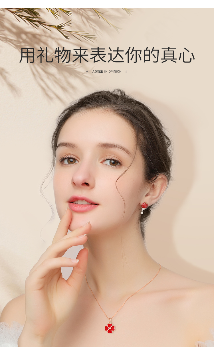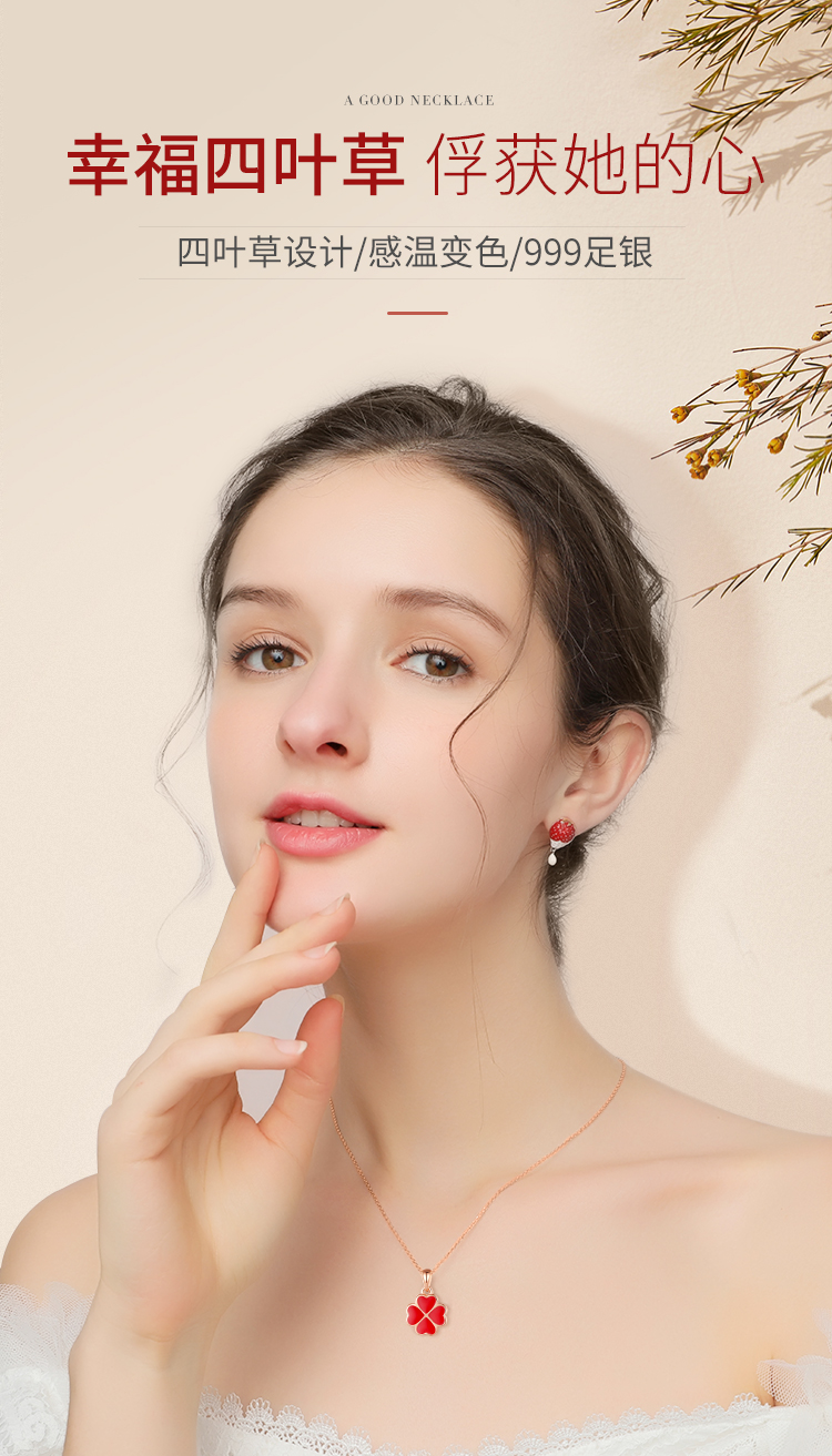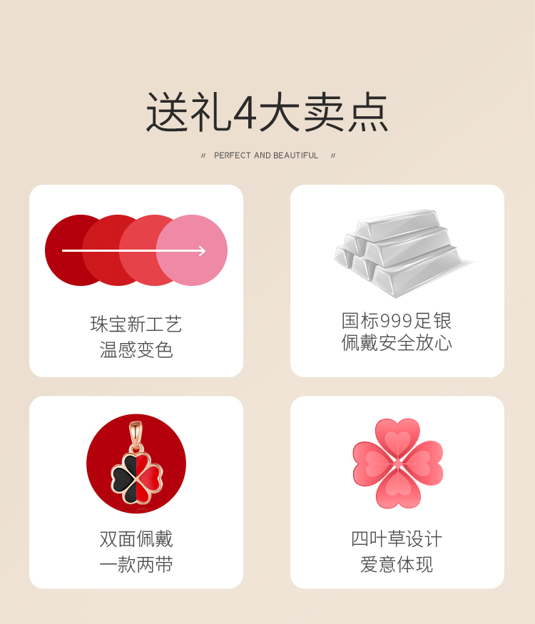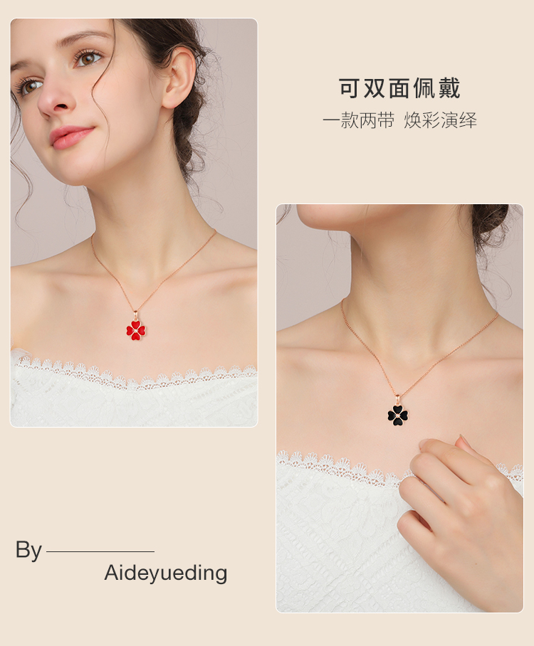 Winy999足银爱心四叶草温感变色项链时尚百搭精致感颈链锁骨链送女友闺蜜节日生日礼物