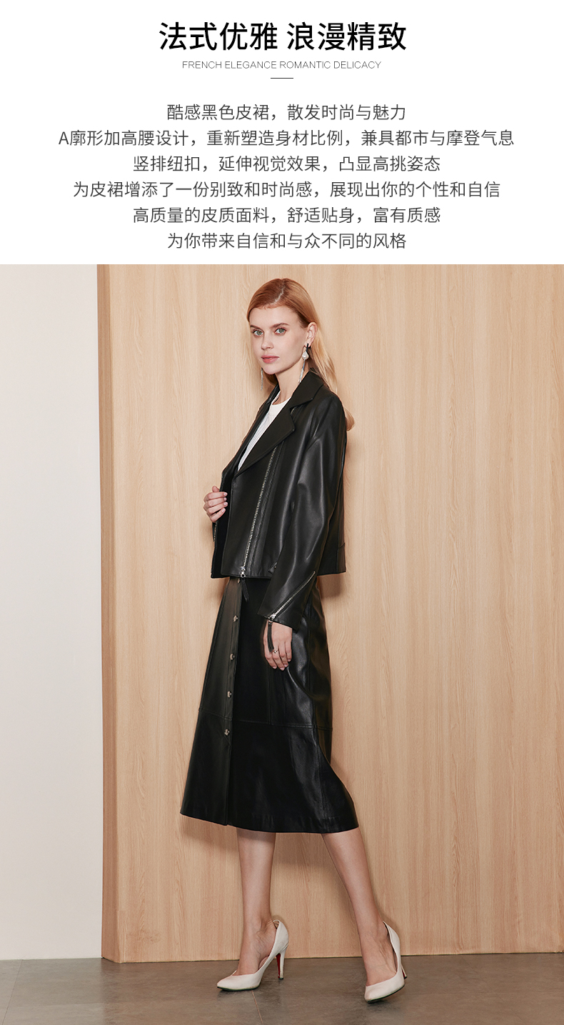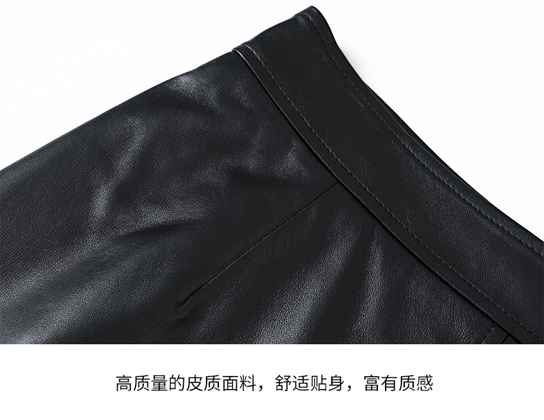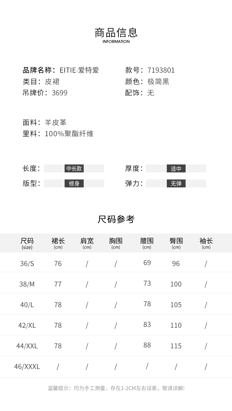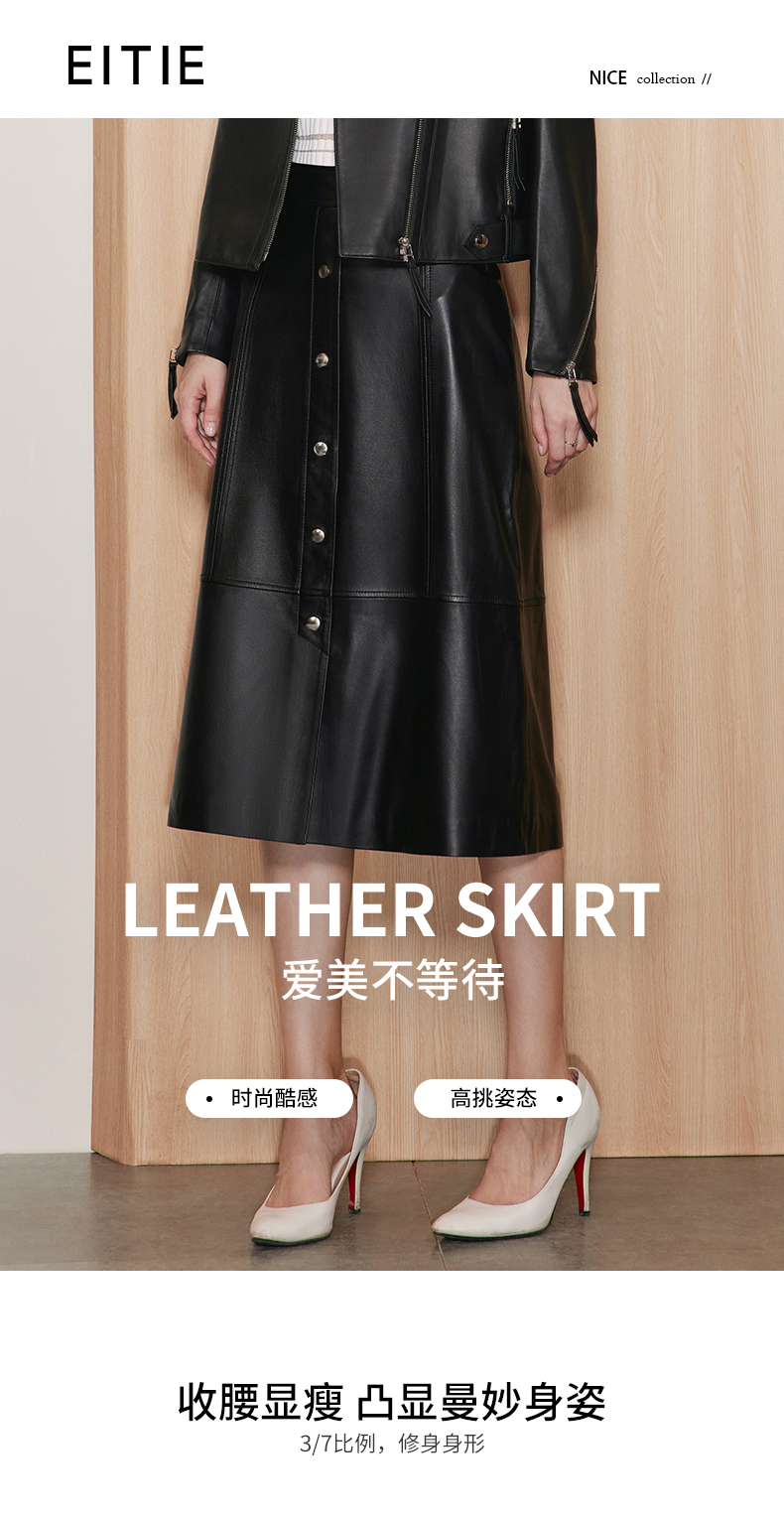EITIE爱特爱秋秋季新款时尚复古显瘦简约百搭高腰皮裙半身裙皮裙7193801