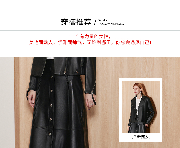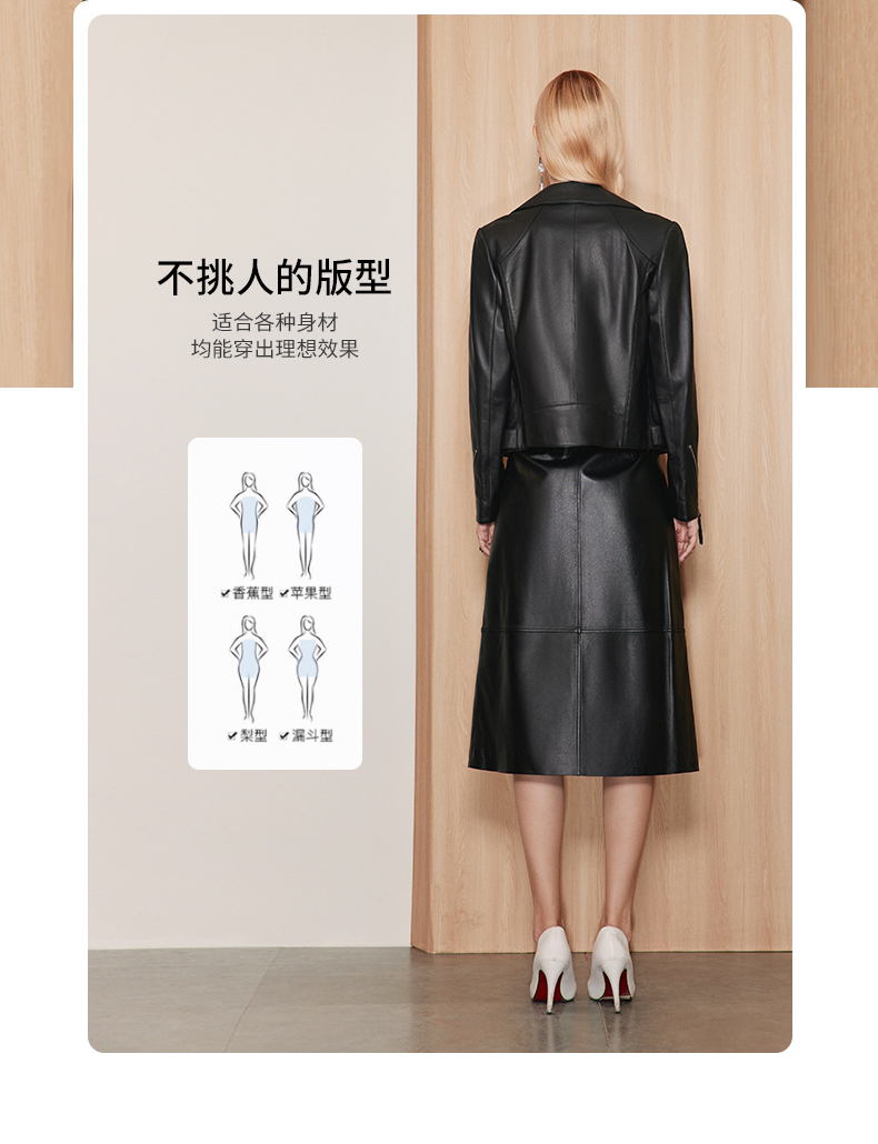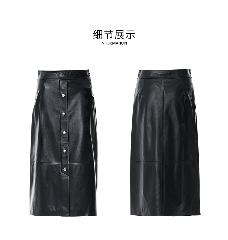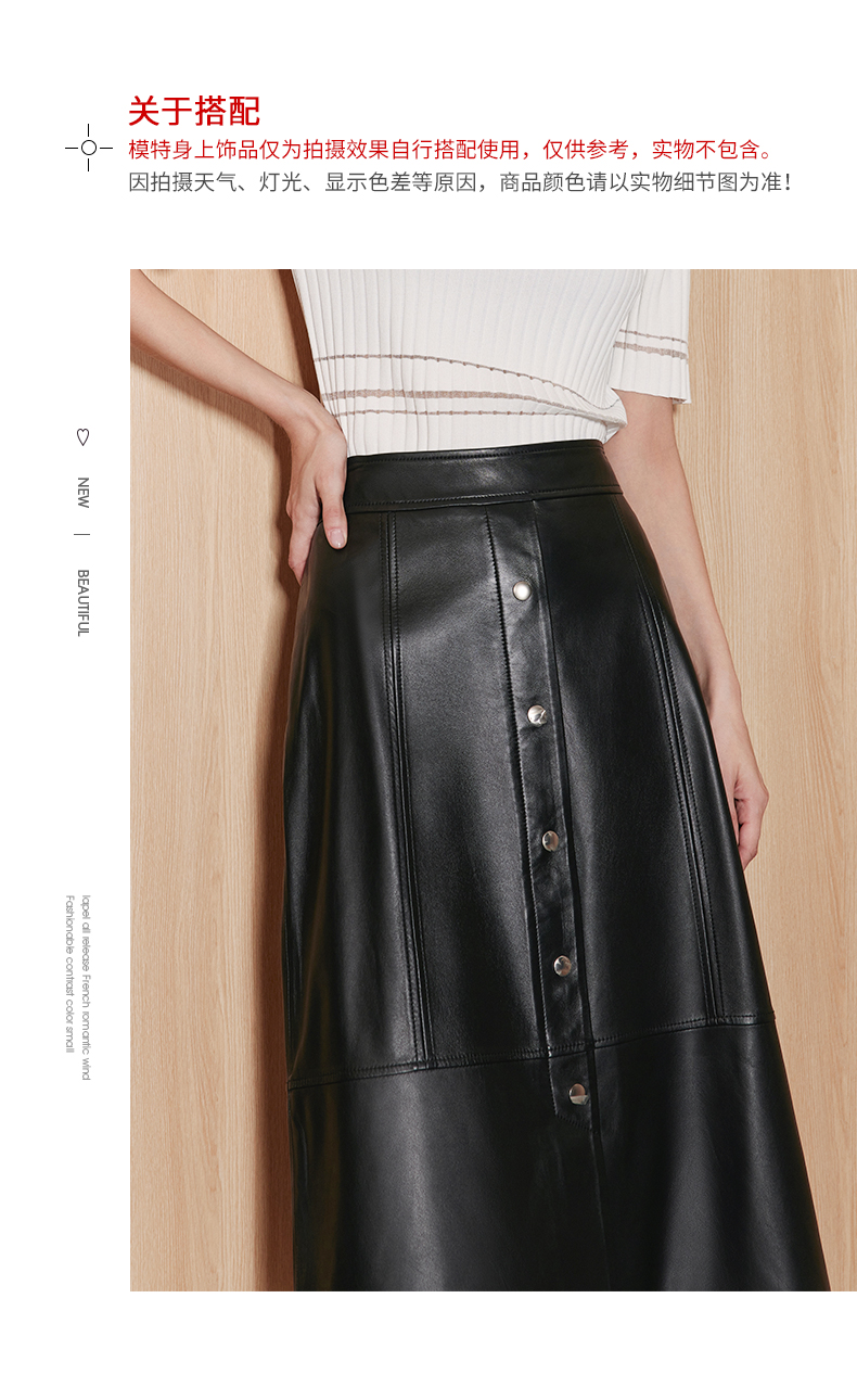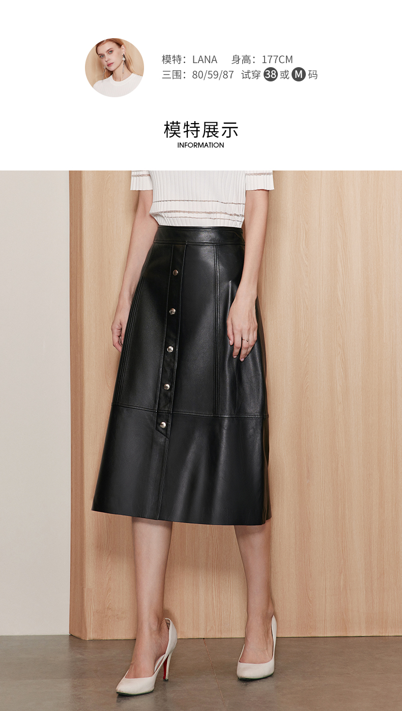 EITIE爱特爱秋秋季新款时尚复古显瘦简约百搭高腰皮裙半身裙皮裙7193801
