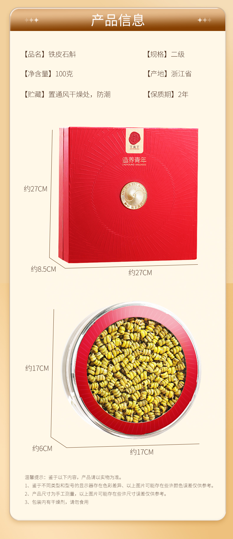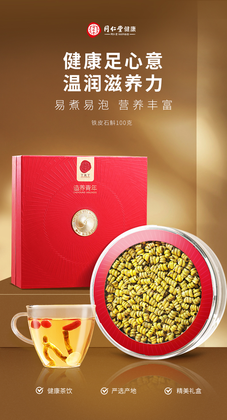 【正宗同仁堂品牌】北京同仁堂铁皮石斛礼盒100克 浙江原产 胶质浓郁 纹理清晰 色泽金黄SY