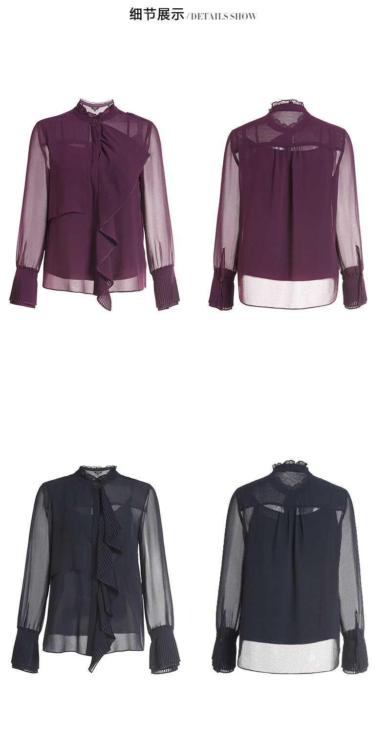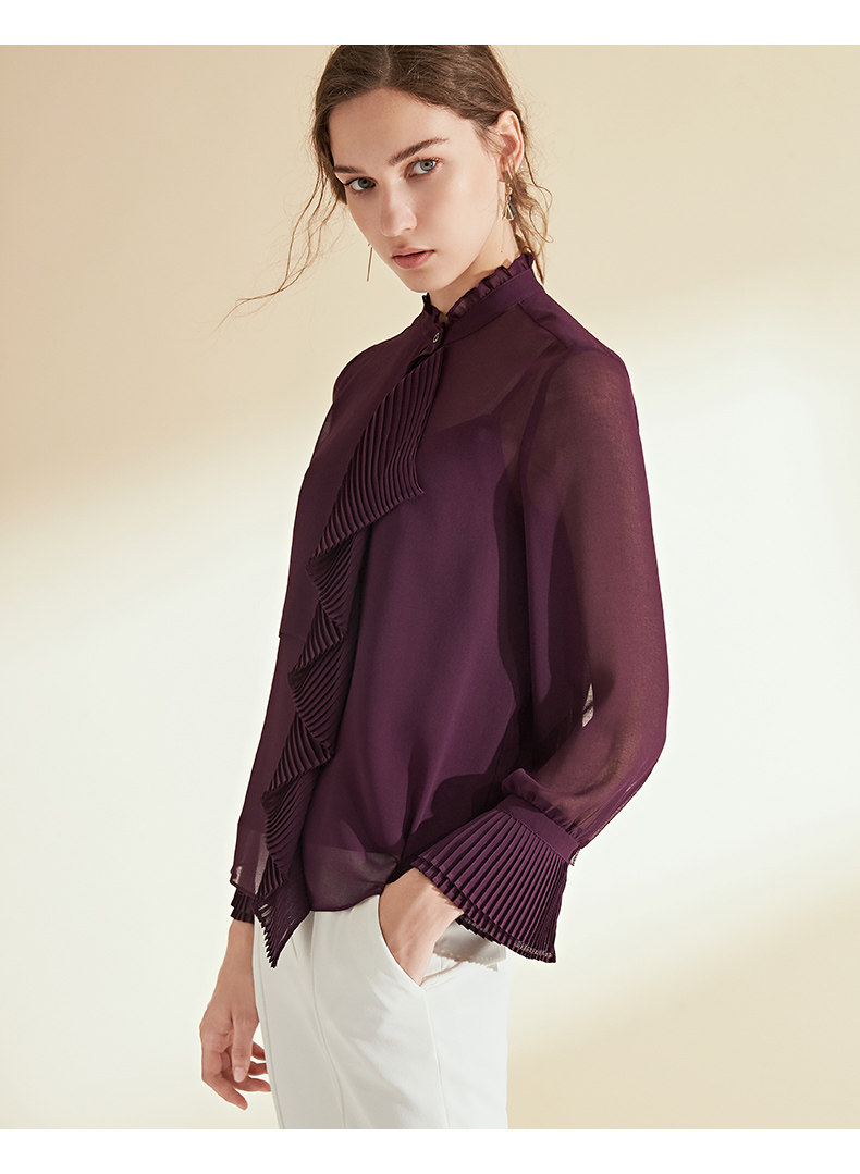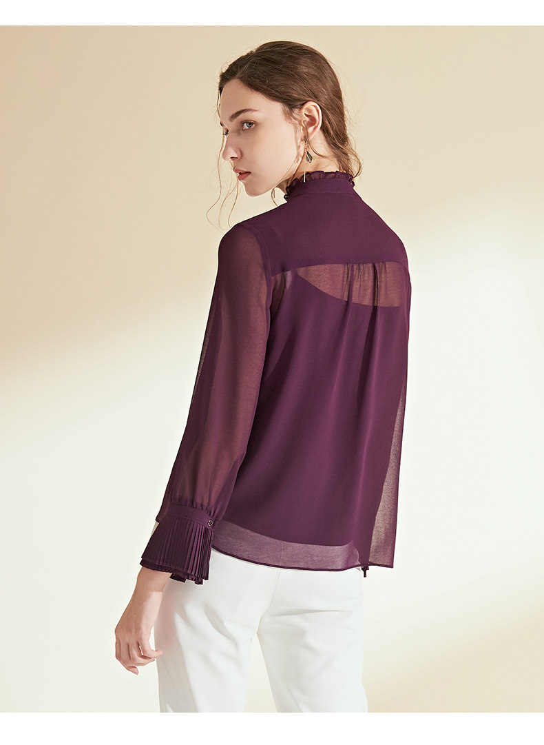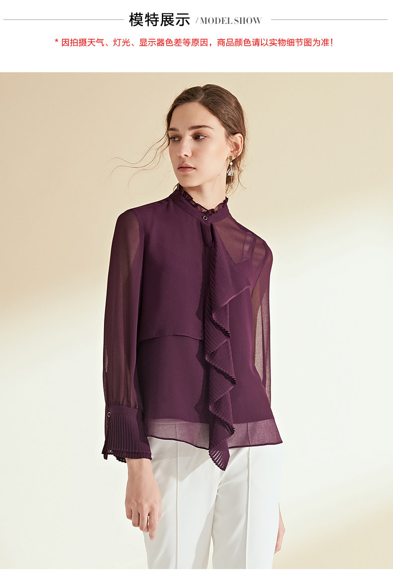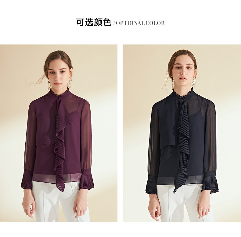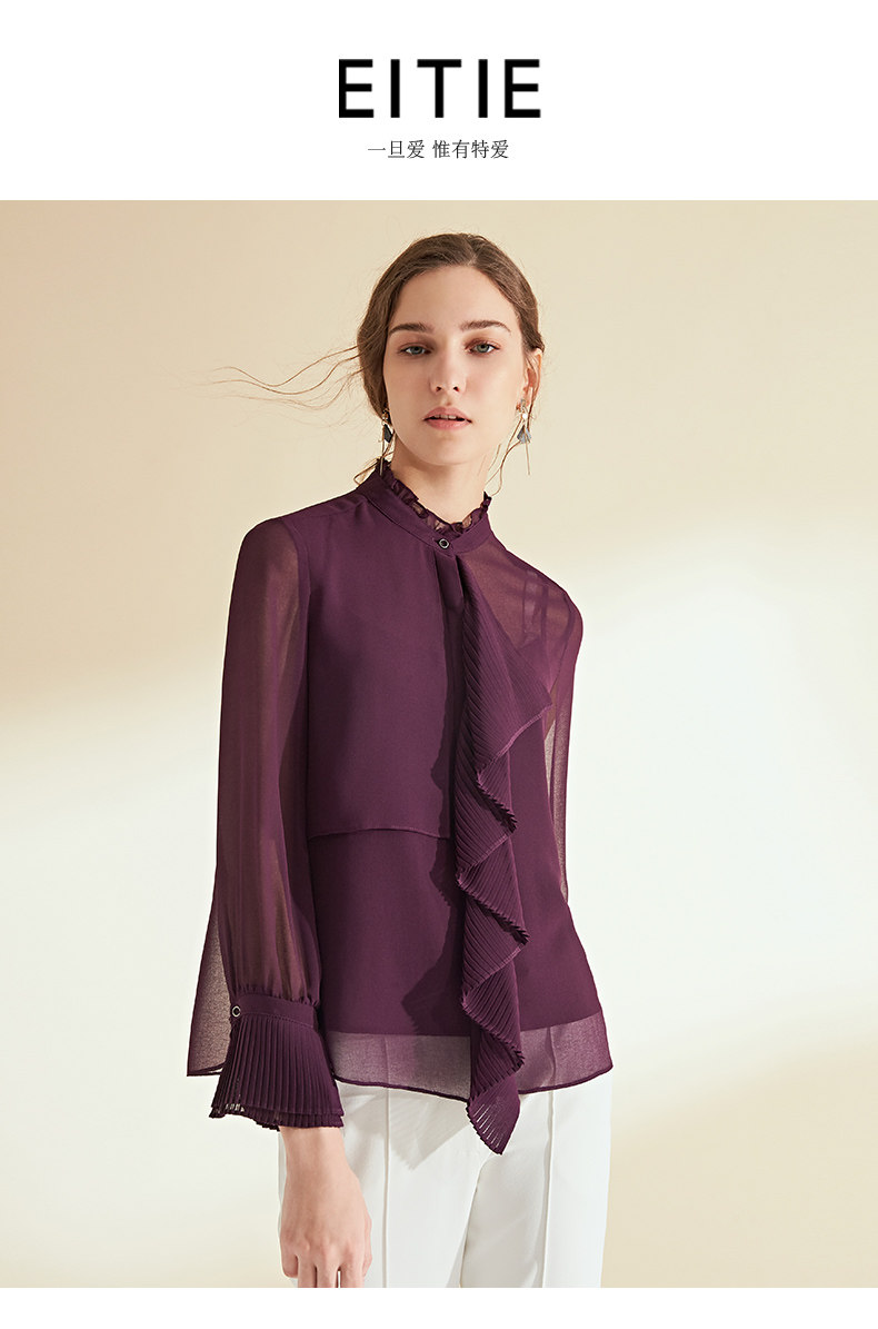 EITIE爱特爱女装初秋季新款通勤OL风喇叭袖口衬衫小上衣6009703