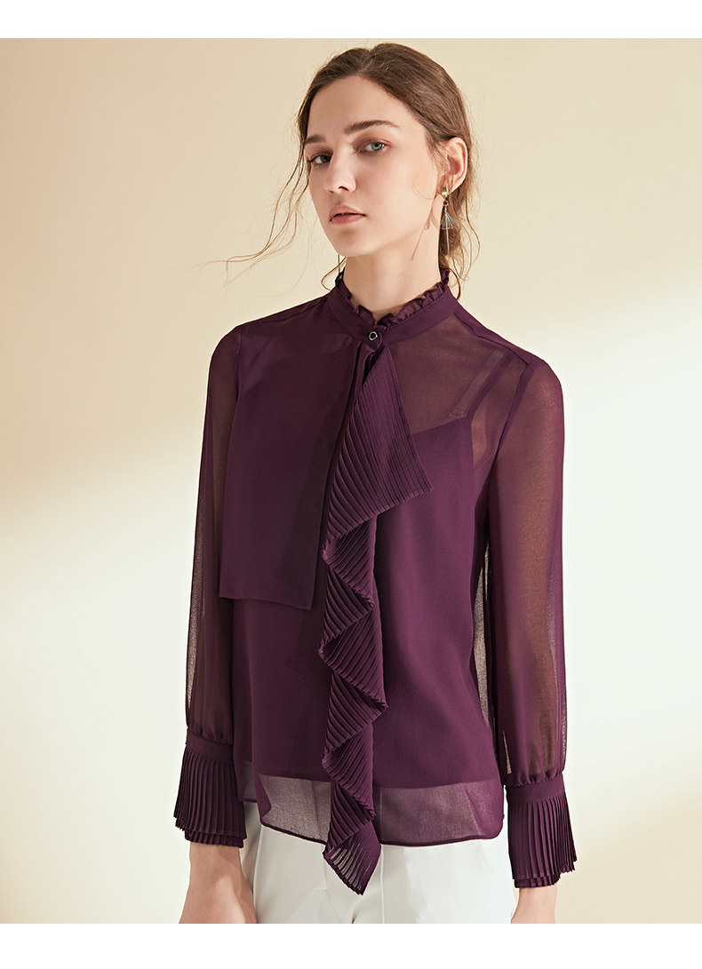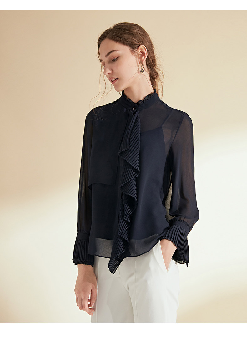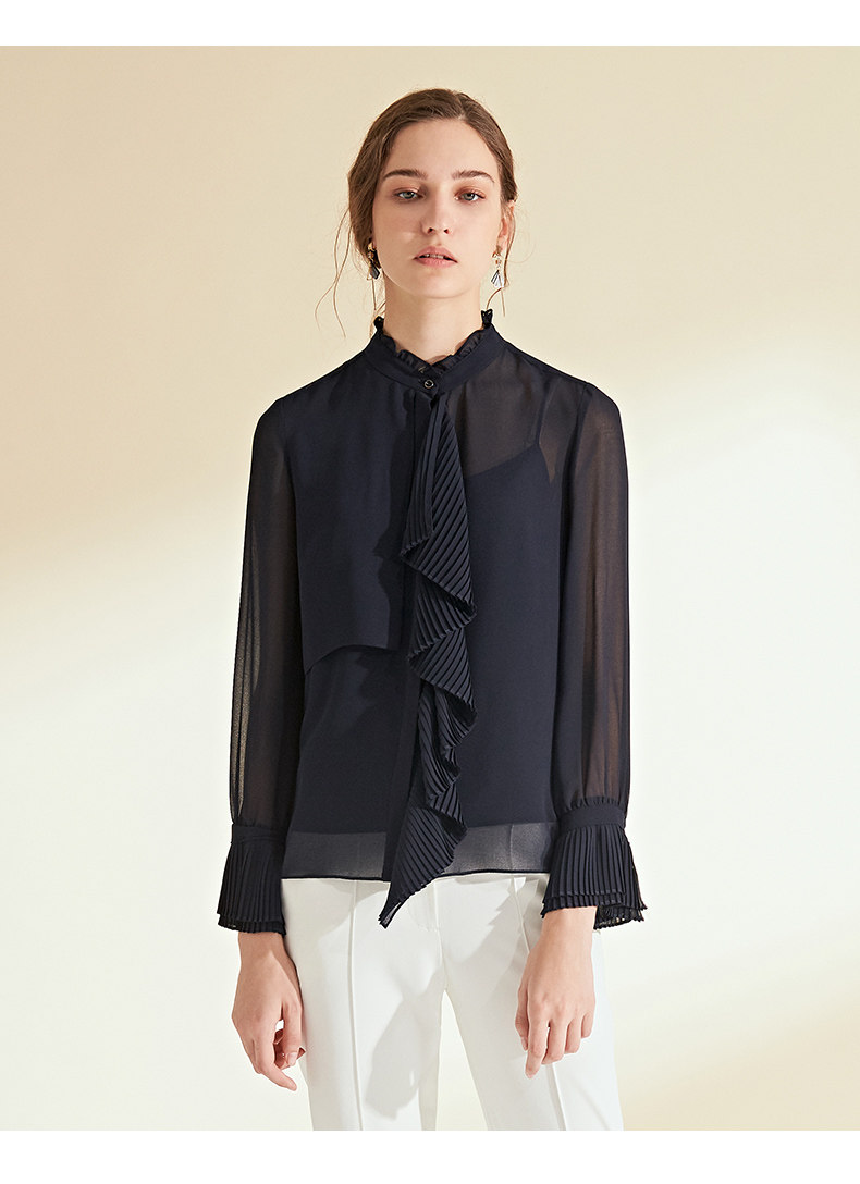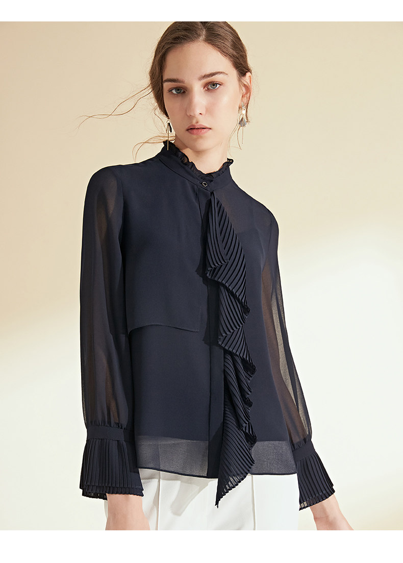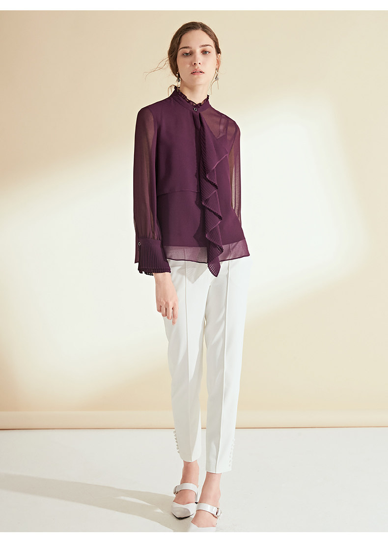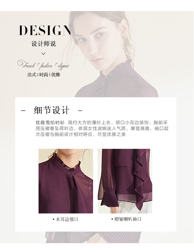 EITIE爱特爱女装初秋季新款通勤OL风喇叭袖口衬衫小上衣6009703