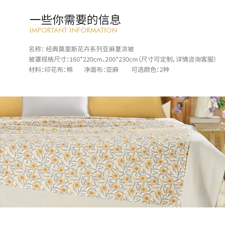 经典莫里斯花卉系列亚麻夏凉被空调盖毯简约纯棉亚麻床品