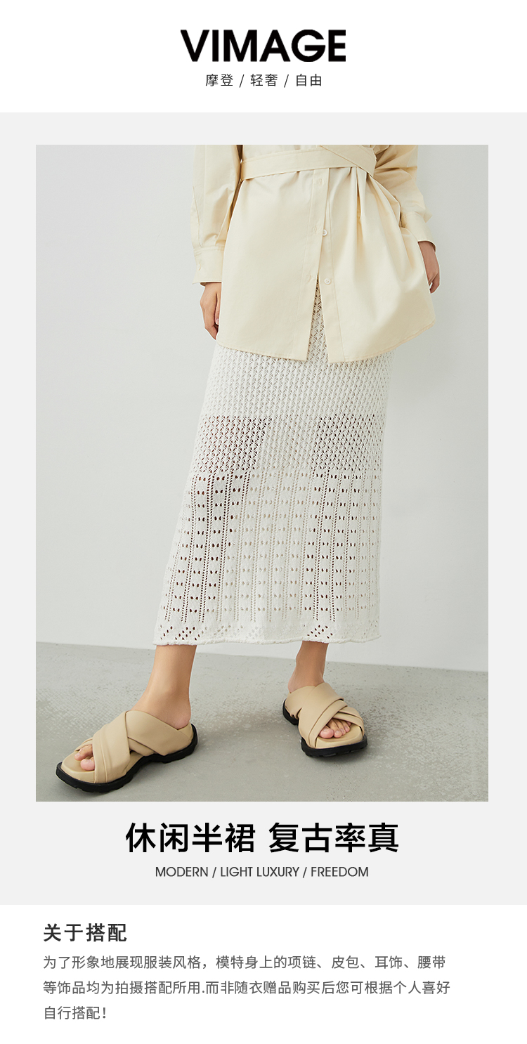 VIMAGE纬漫纪春季新款时尚包臀过膝镂空针织半身裙女半裙V1701303