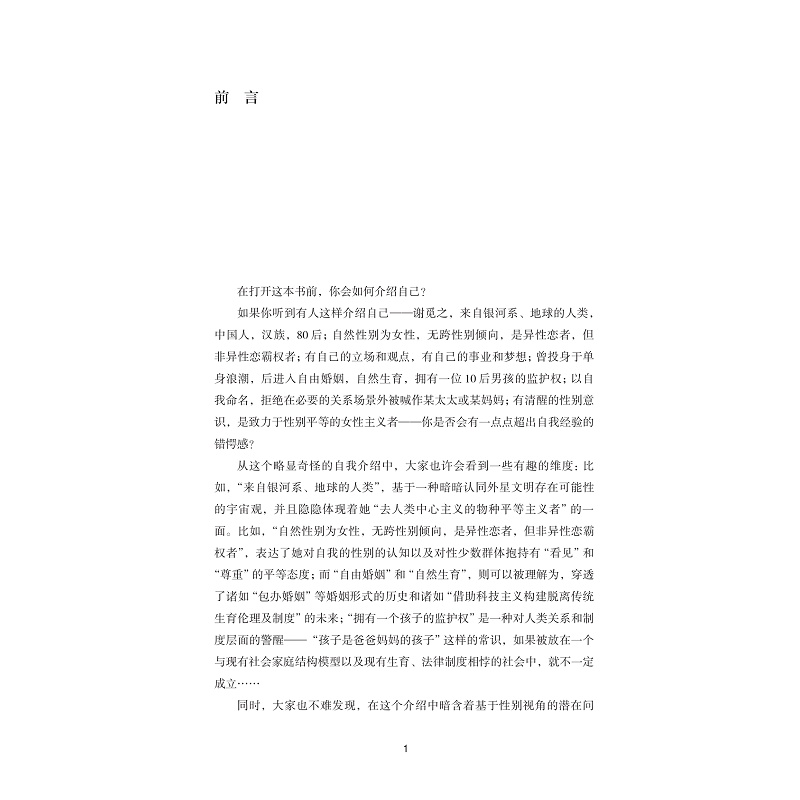 本书的第一部分从性别形成的角度切入较为经典的性别理论和相关案例,激活大家对性别身份社会建构及媒介呈现的观察与想象。第二部分通过系统展示历史中的性别运动历程及语艺传播,帮助大家掌握女性主义传媒批判理论,理清媒介与性别研究发展脉络,了解性别、文化、传播三者间的深刻关系。第三部分就媒介与社会传播中热议的性别命题展开多维度、更深入的探讨,并立足于突破西方语境的东方文本,探析其中的话语制造与性别叙事,以期为推动不受性别限制的平等教育、发现中国社会转型中的性别创新力量提供一定的视角。