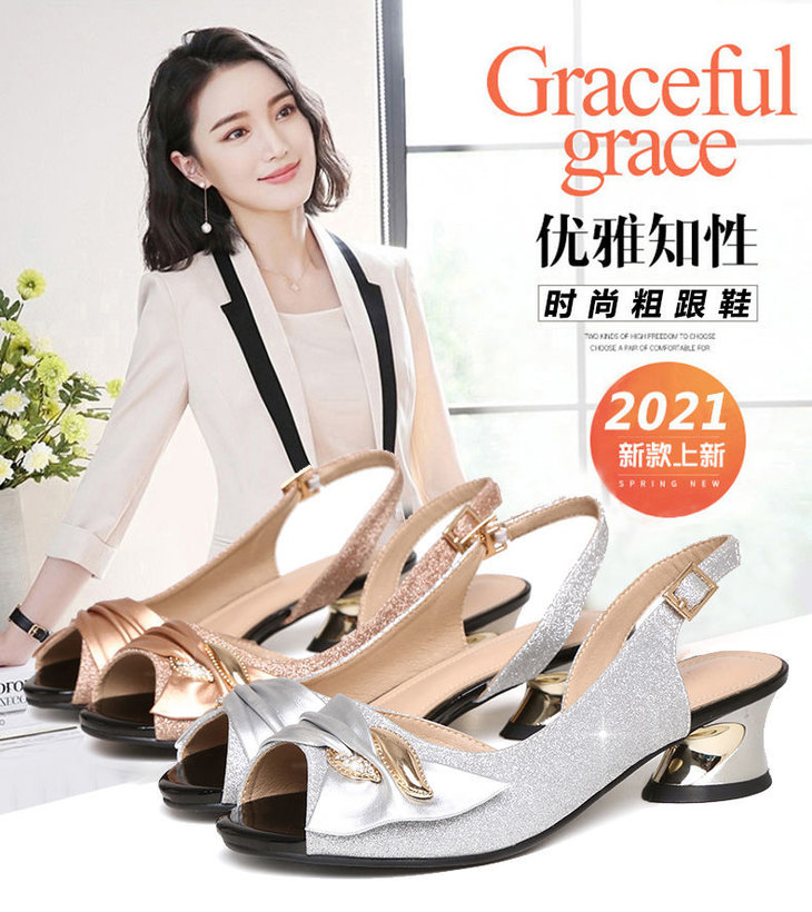 TZW-新款夏季女鞋百搭舒适软底中跟鱼嘴鞋女