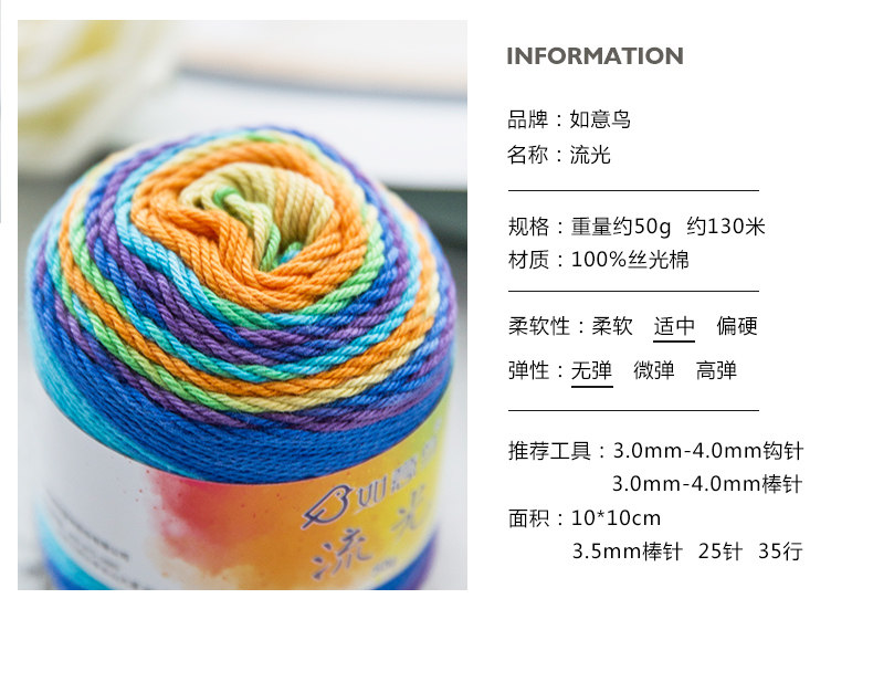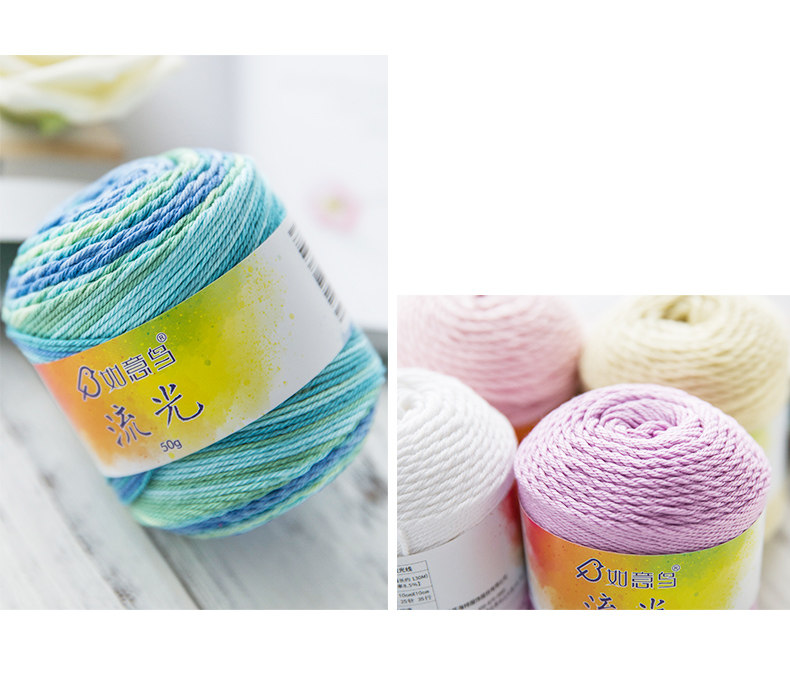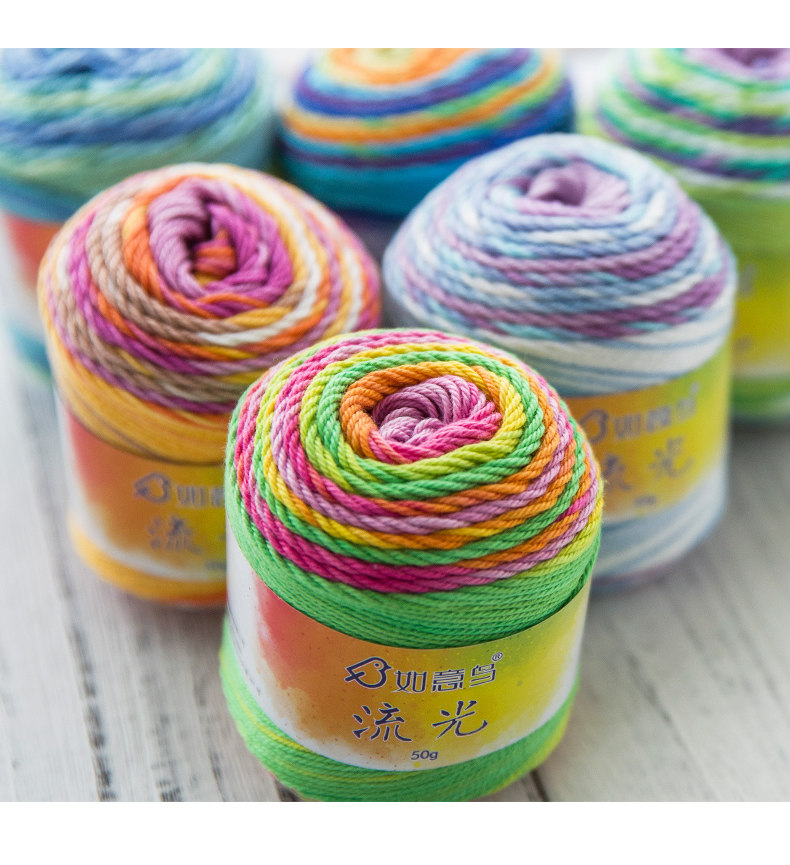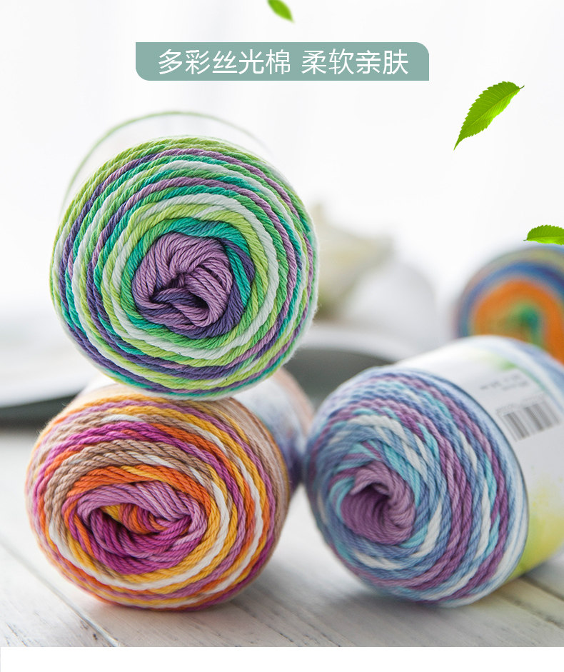 如意鸟流光丝光棉毛线编织手工棉线织毛衣线段染丝光棉