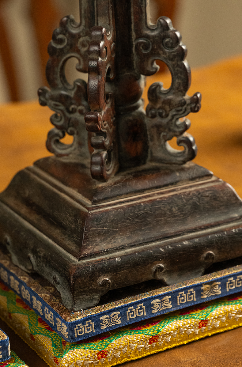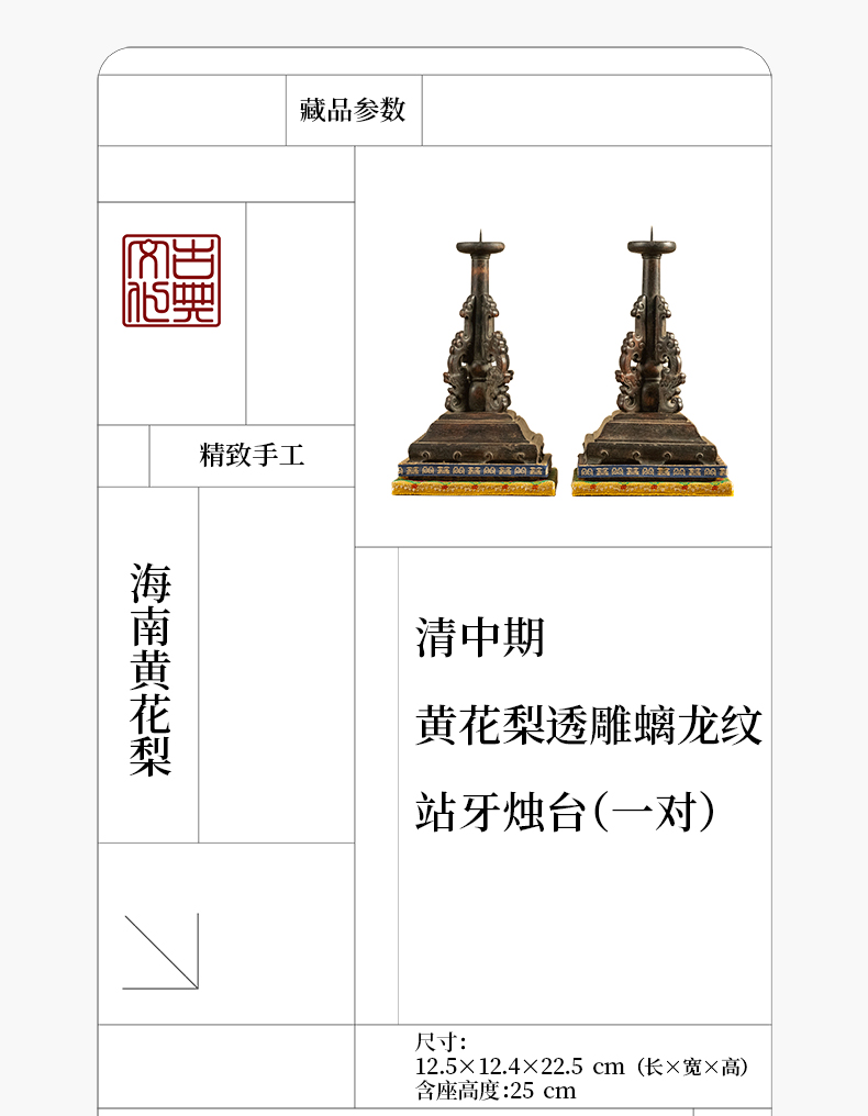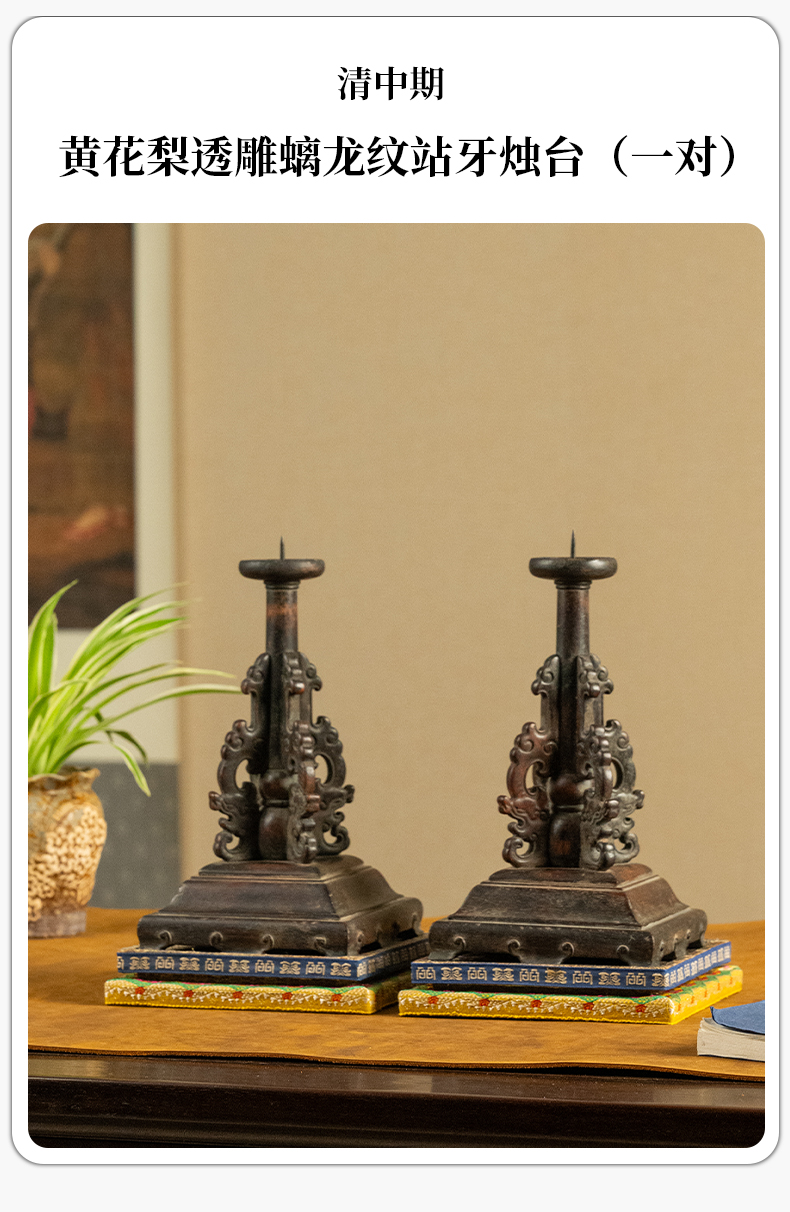清中期 黄花梨透雕螭龙纹站牙烛台(一对)