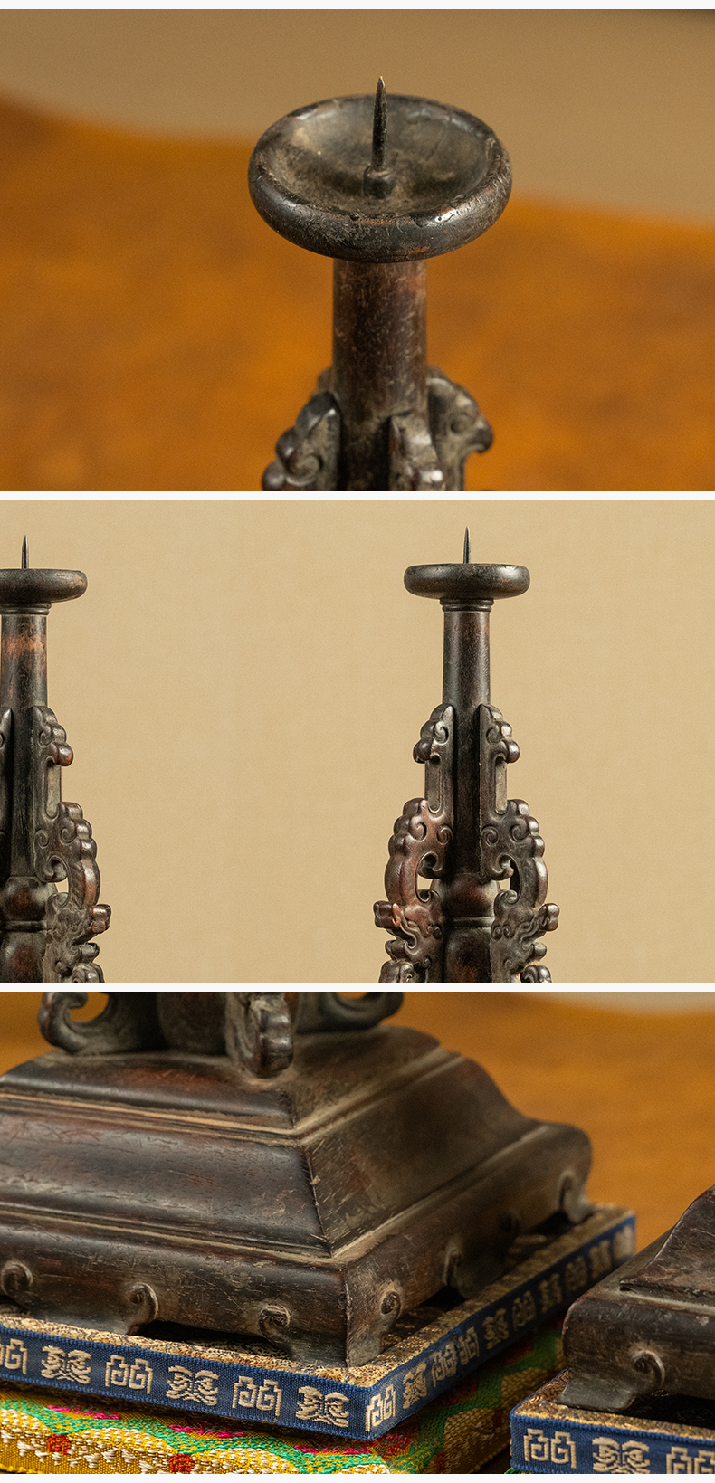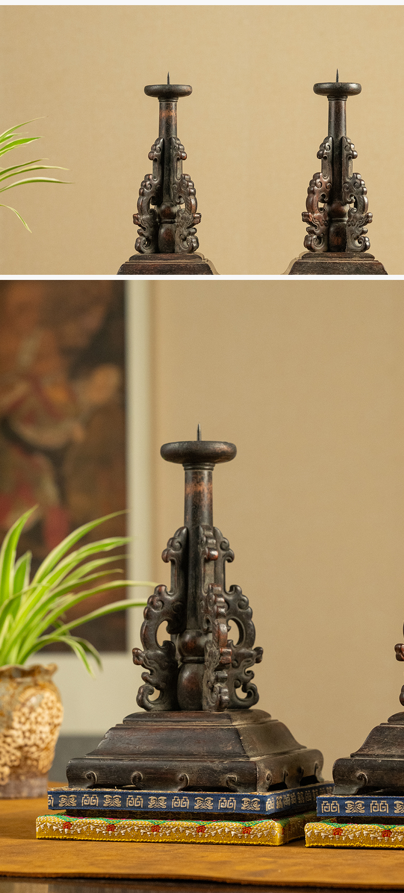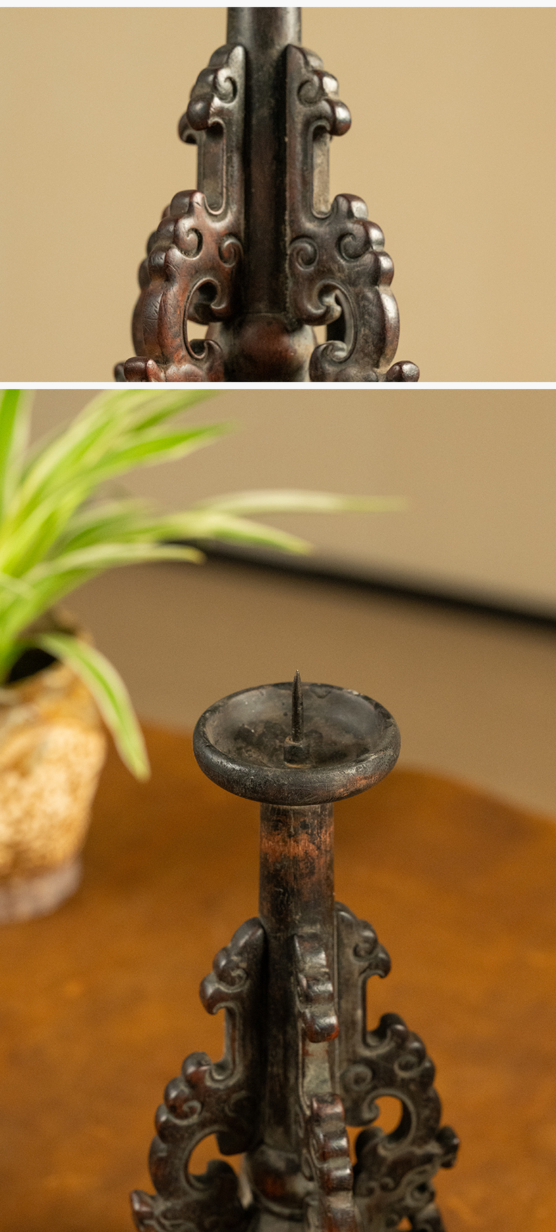 清中期 黄花梨透雕螭龙纹站牙烛台(一对)