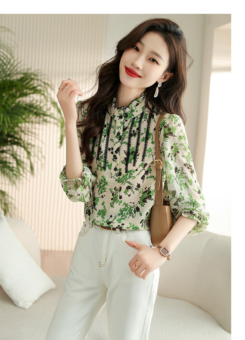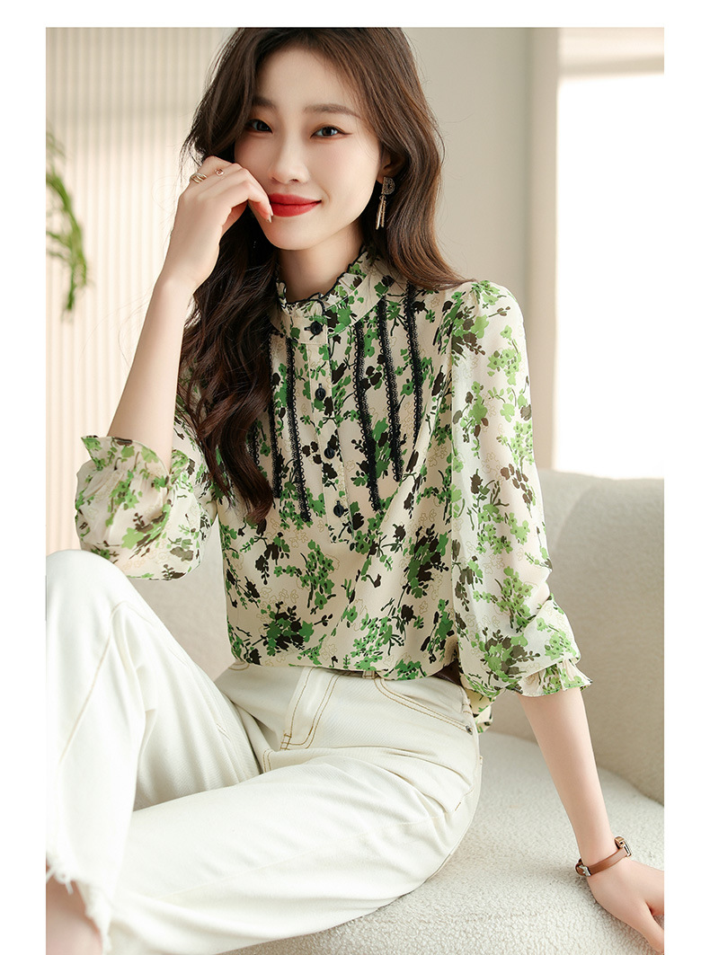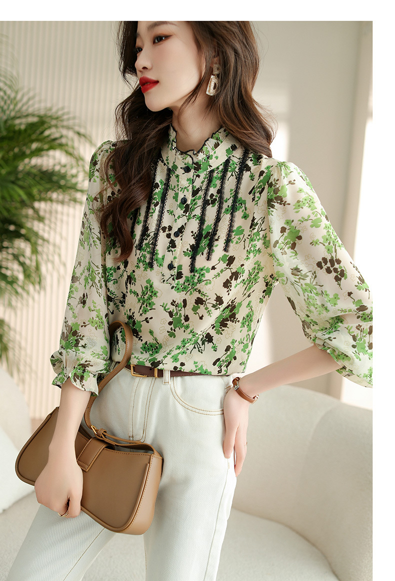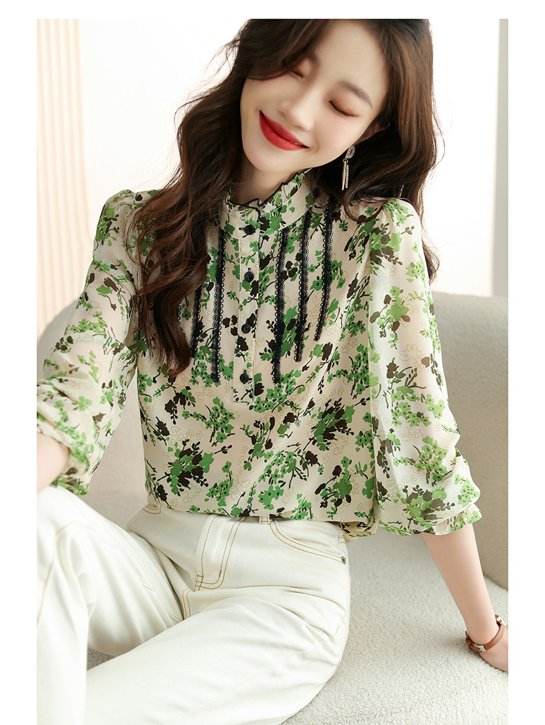 YY-QSLG23011小碎花长袖小立领衬衫女2023年春季新款气质雪纺衫洋气上衣简约