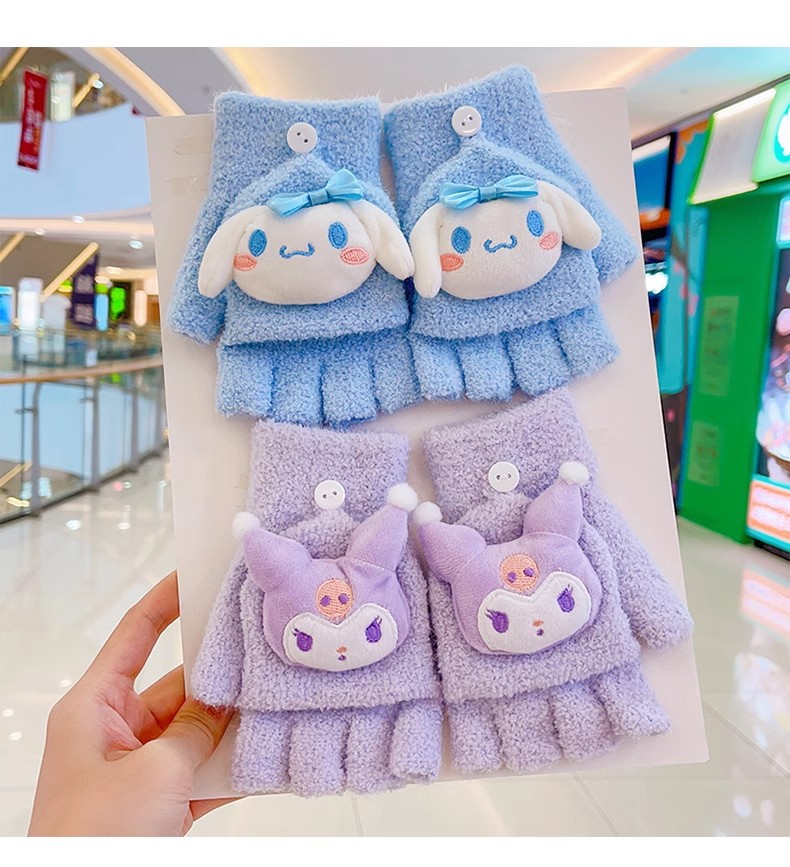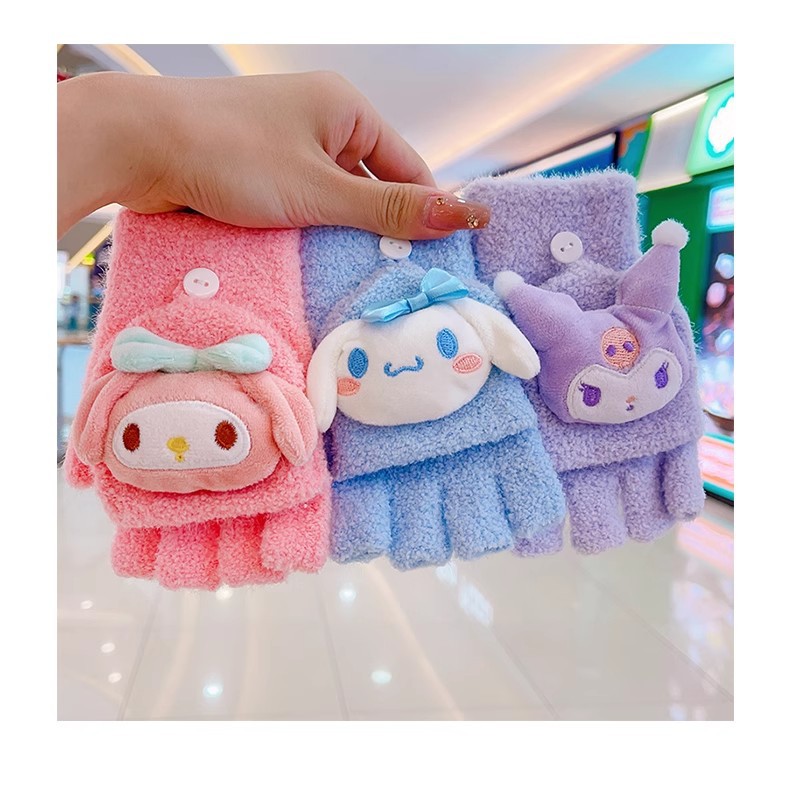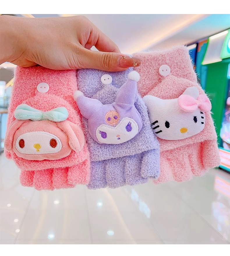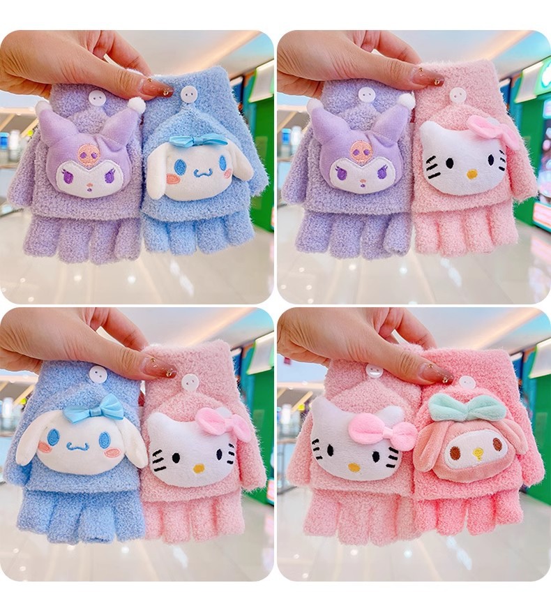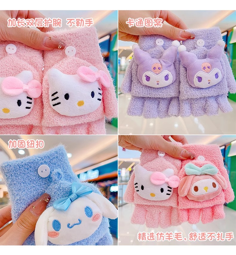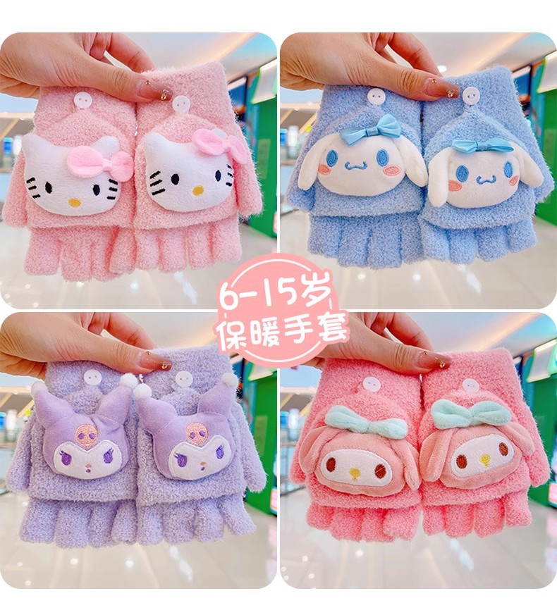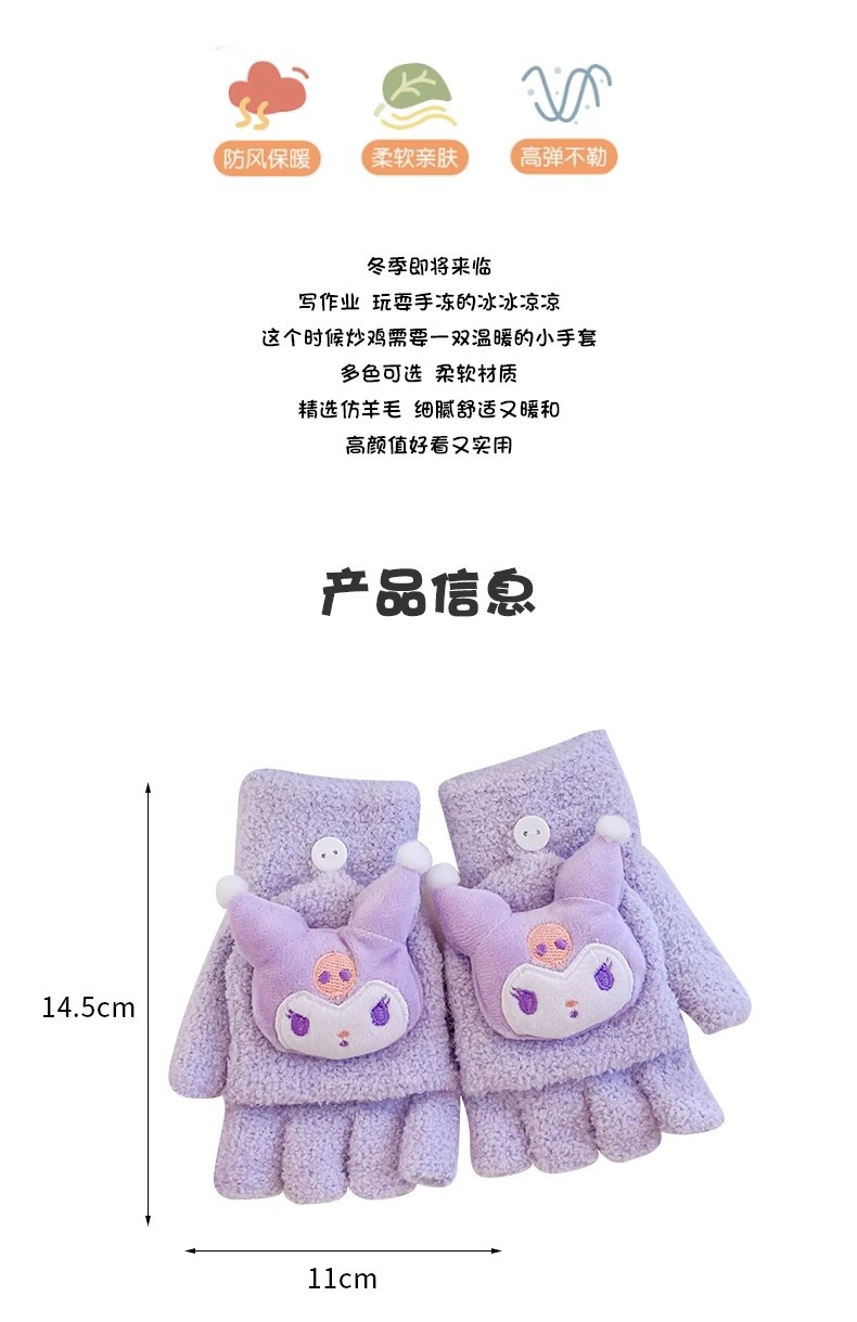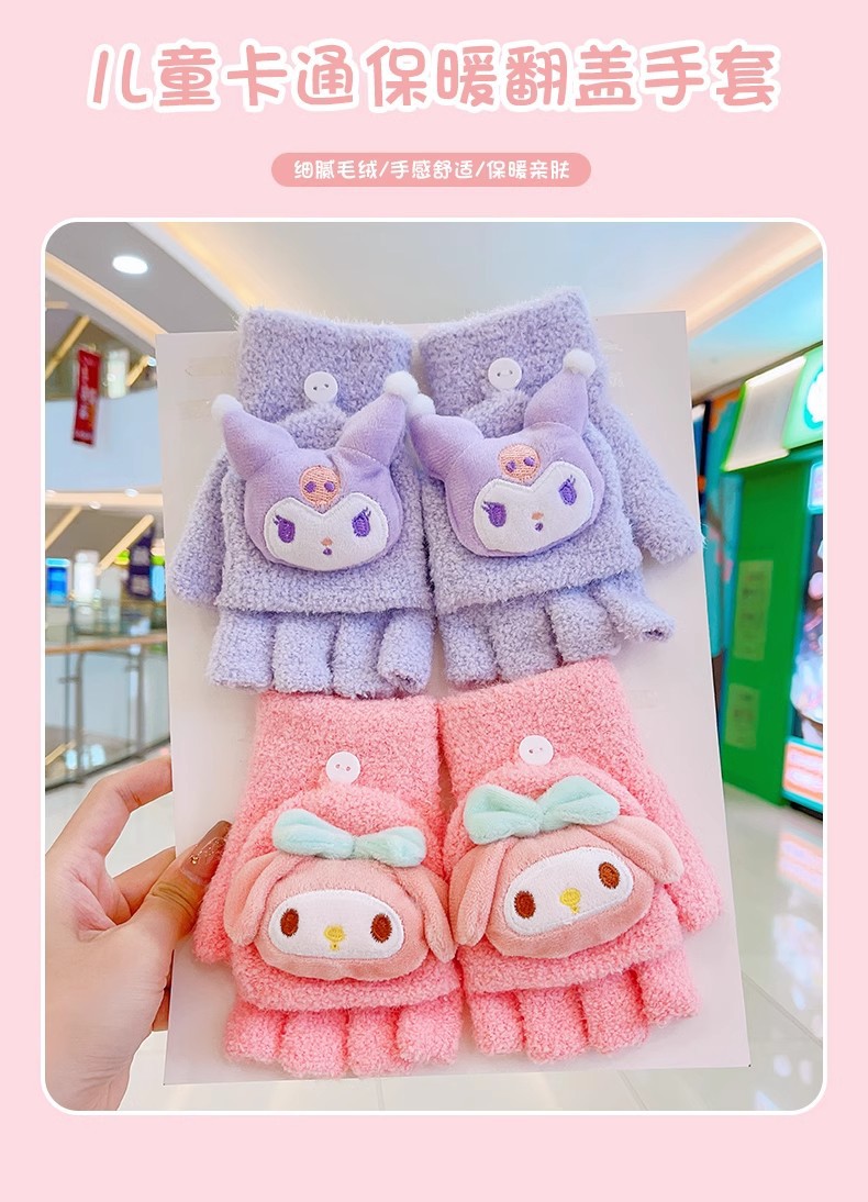 【敲高颜值!儿童卡通保暖翻盖手套】毛绒翻盖儿童手套女可爱通用针织露指珊瑚绒卡通手套儿童手套。ry