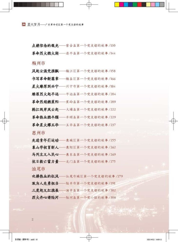 为弘扬和传承广东红色文化,讲好广东故事,传播广东革命老区精神,宣传中国共产党人特别是广东革命老区、苏区党组织在成立初期的英勇事迹,向建党100周年华诞献礼,中共广东省委党史研究室与广东省老区建设促进会联合编写出版《星火岁月》,向广大党员干部群众讲述广东老区苏区县第一个党支部(党小组)建立的故事。该项目已列入省委宣传部2021年主题出版重点选题计划。