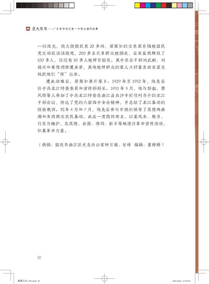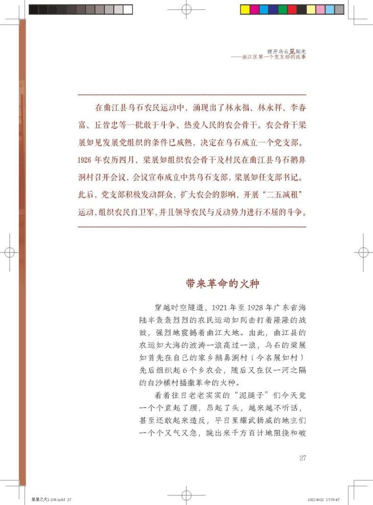 重温风雨历程,铭记星火岁月;学习党史故事,传承红色文化。在伟大的中国共产党成立100 周年之际,我们怀着崇敬的心情,出版了这套《星火岁月——广东革命老区第一个党支部的故事》。广东的革命老区有哪些?各个老区第一个党支部诞生于何处?第一个星火如何燎原?《星火岁月》给你答案。