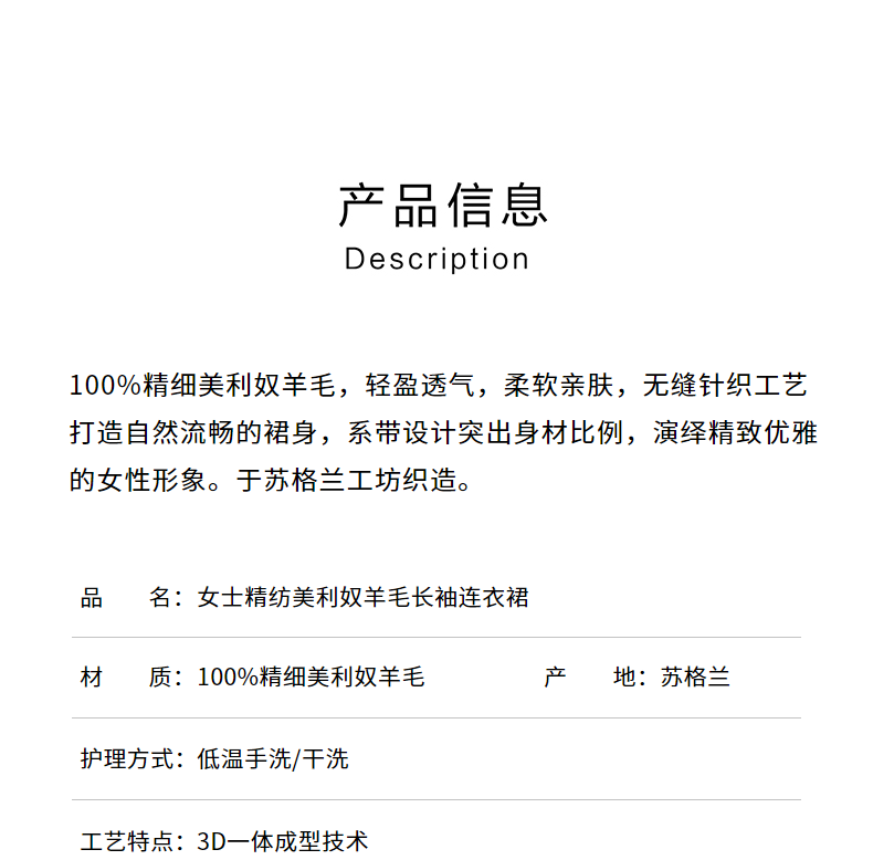 Johnstons of Elgin 女士60支精纺美利奴羊毛长袖连衣裙