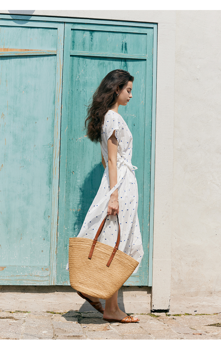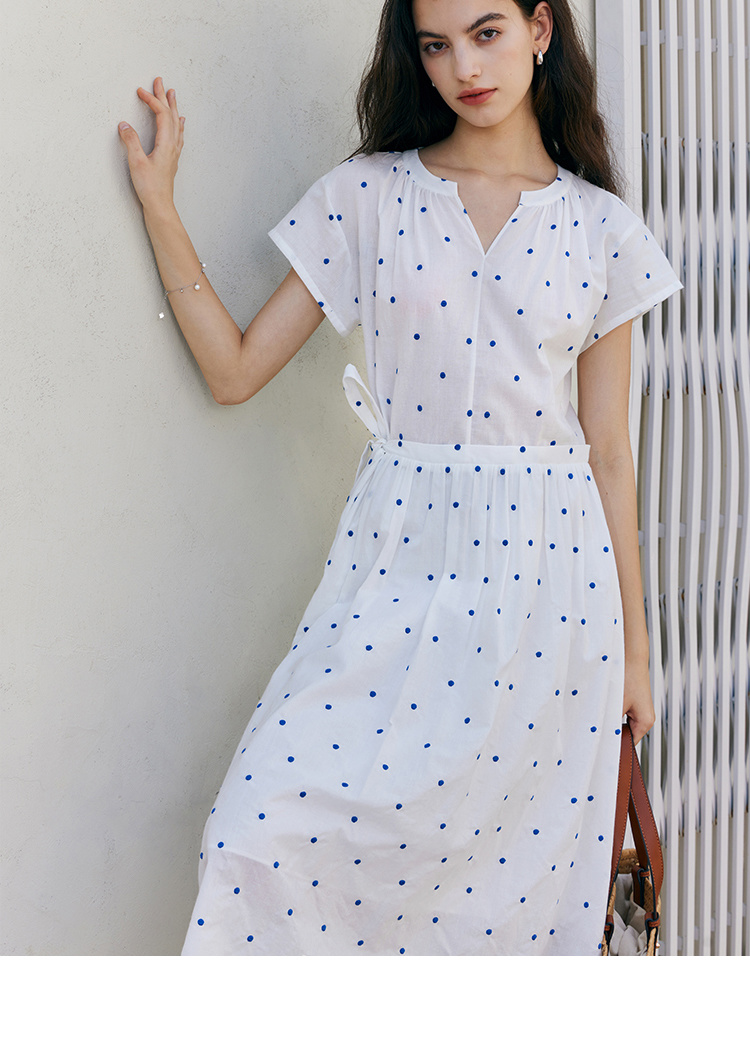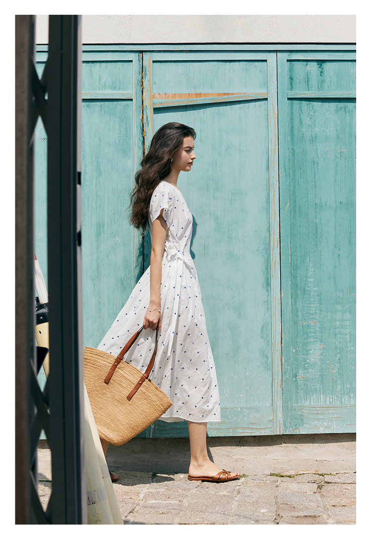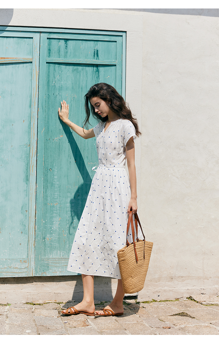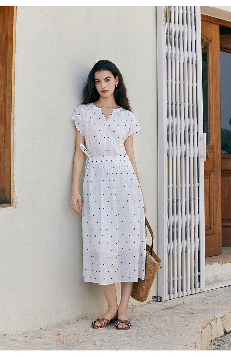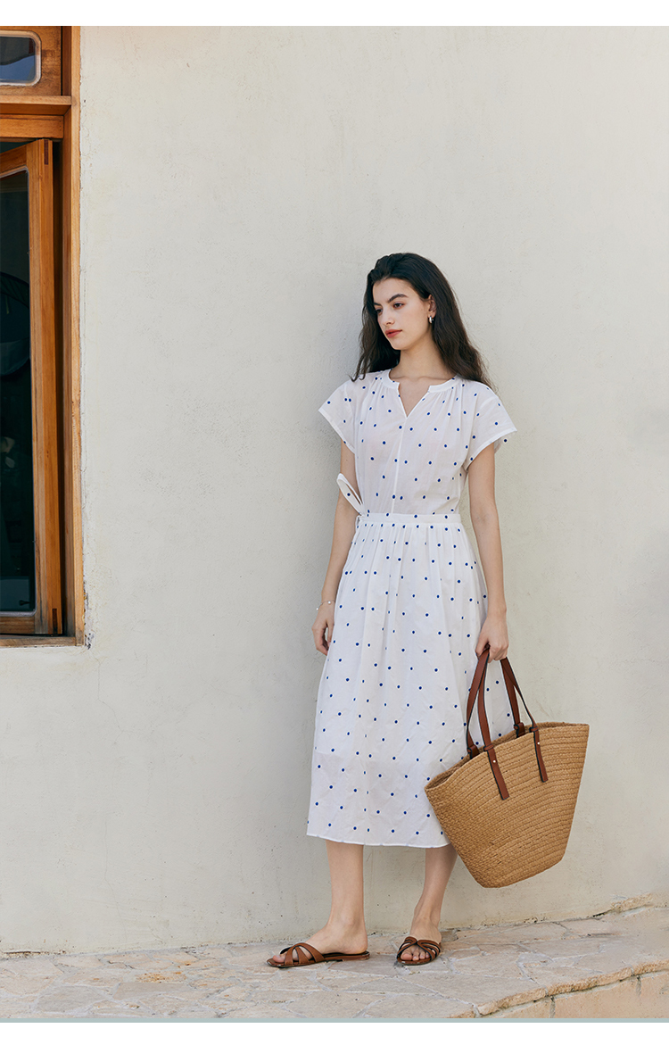 (小眠专属)HeyDress蓝色波点连衣裙女夏季法式V领收腰显瘦设计气质田园裙子
