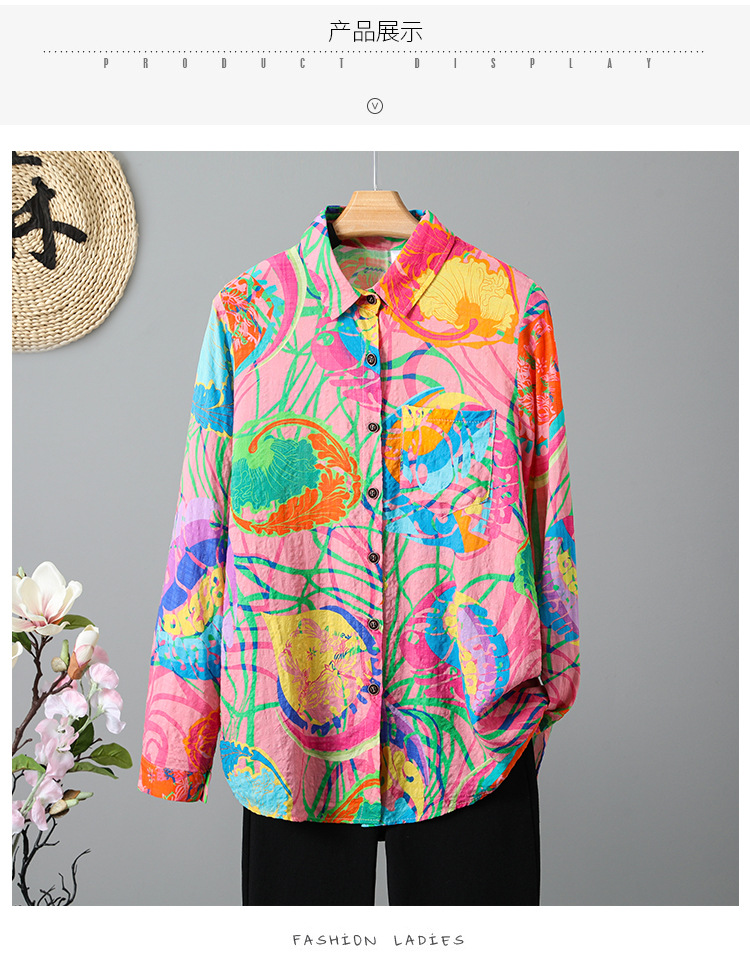 雀说新款文艺宽松大码显瘦长袖洋气彩色衬衫上衣AL3600