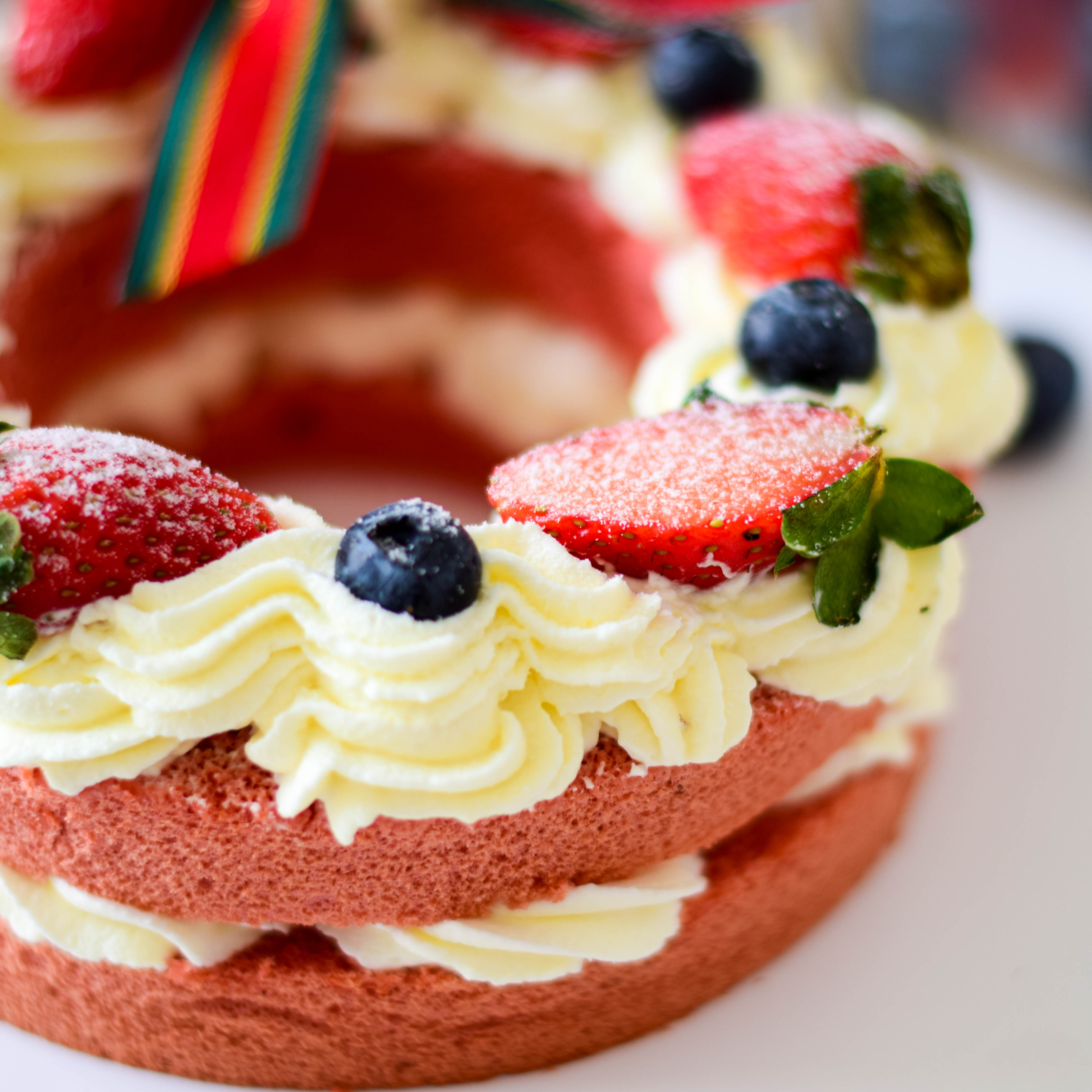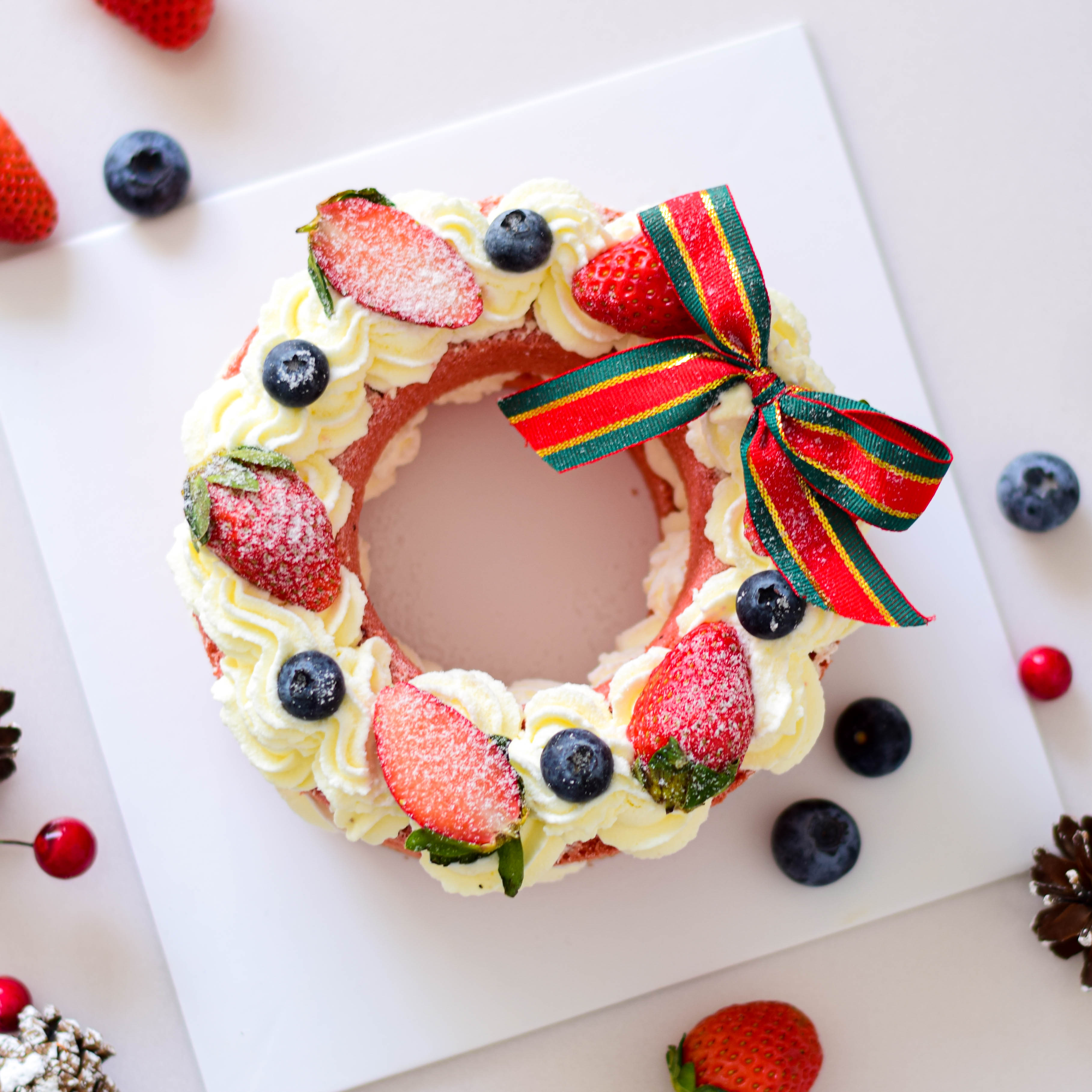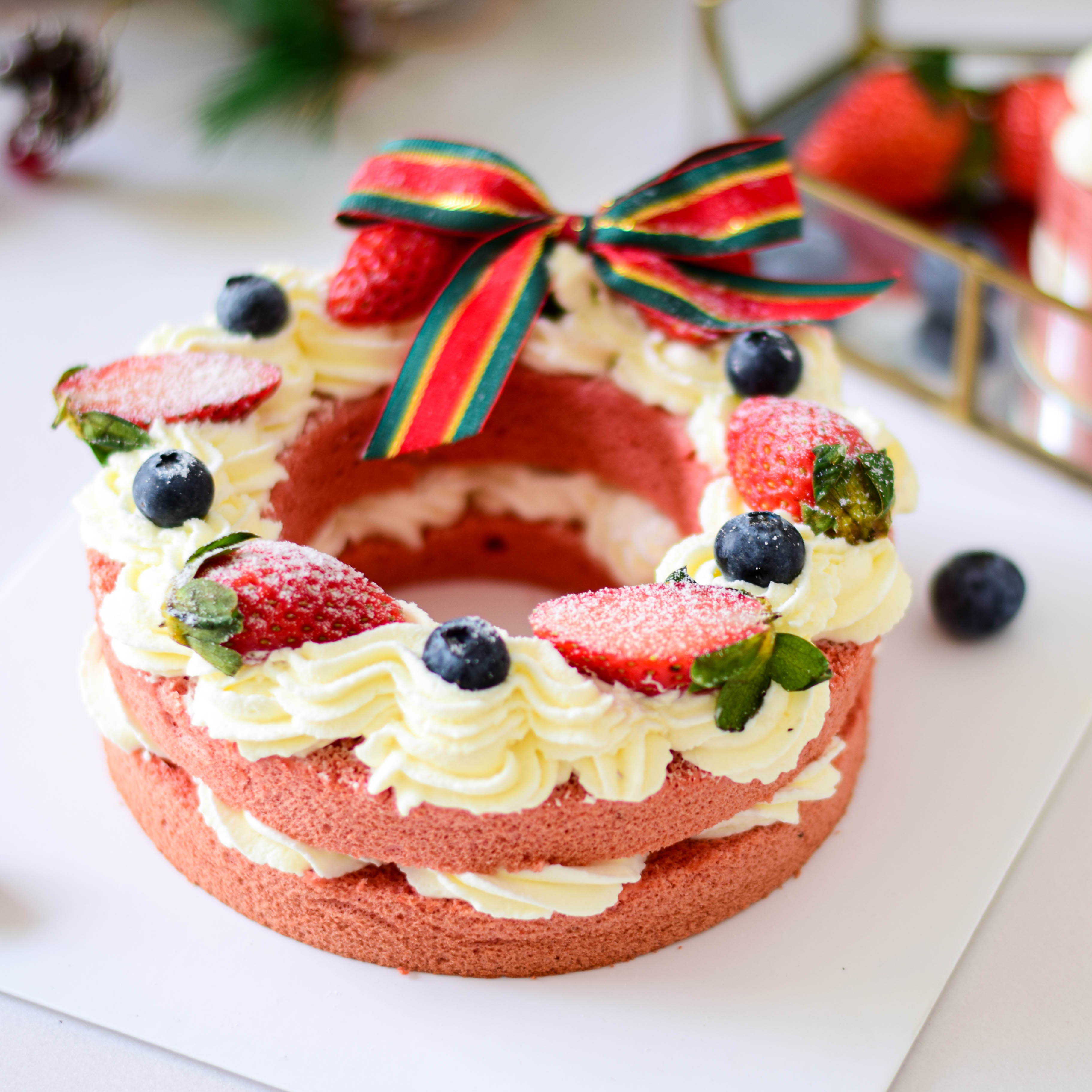 主要原料 法国进口淡奶油、小麦粉(荷兰)、纯牛奶(荷兰)、幼砂糖(韩国)、红曲粉、奶油草莓、蓝莓