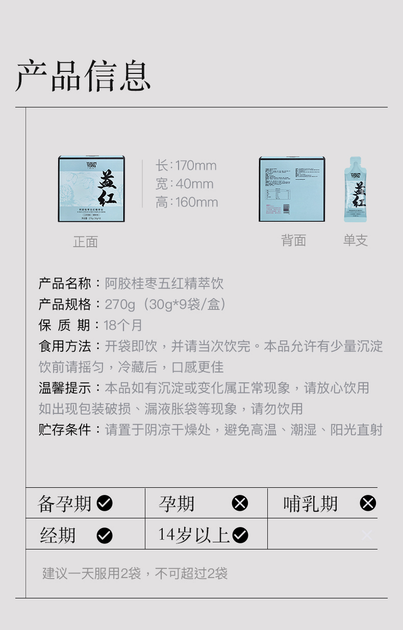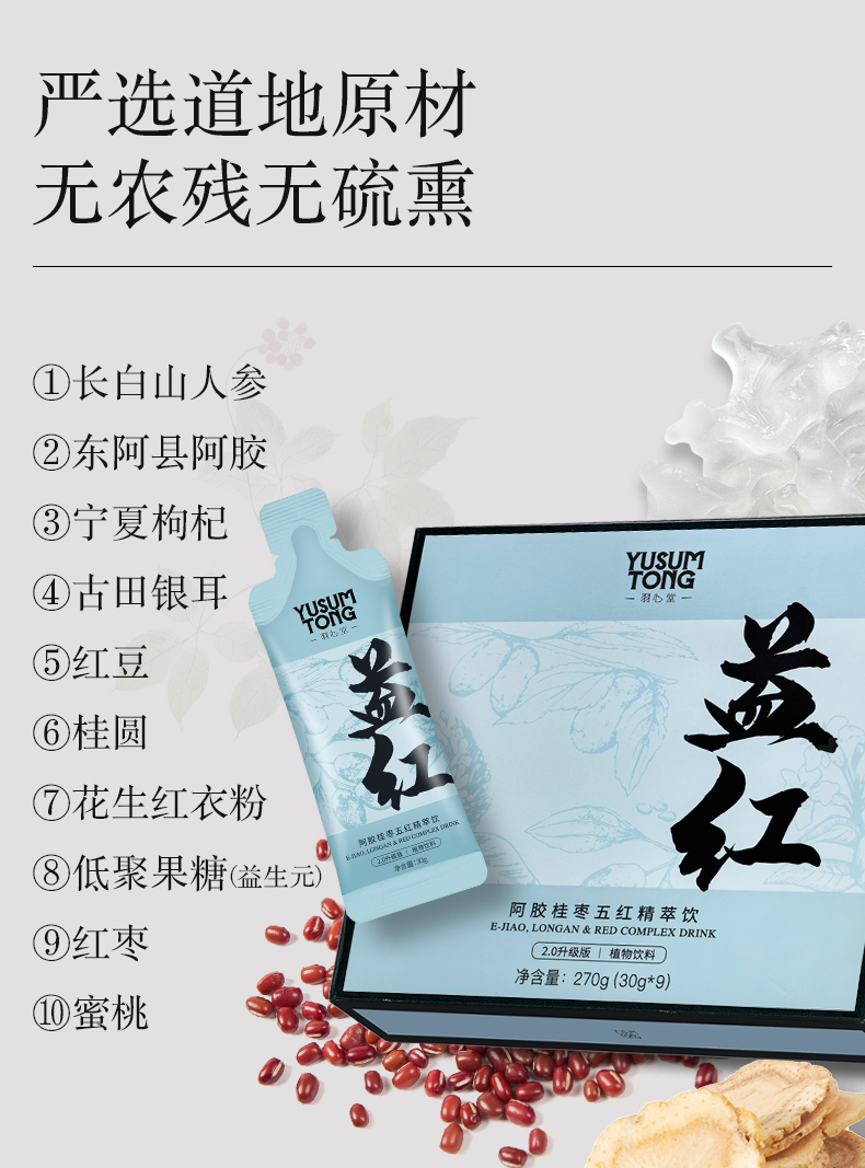 【大眼睛-11月】羽心堂 阿胶桂枣五红精萃饮 30g*9/盒 国内发货