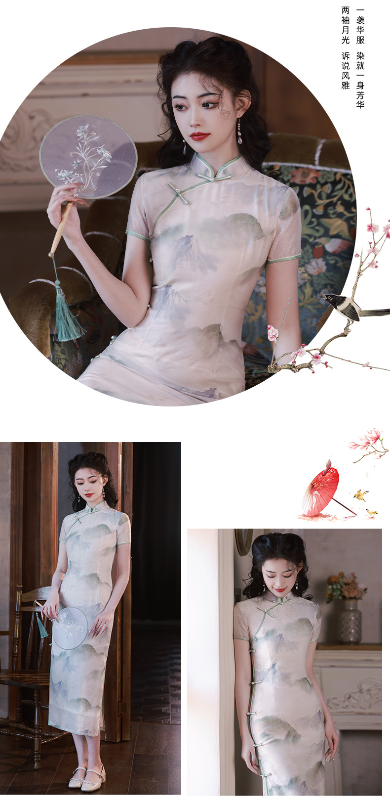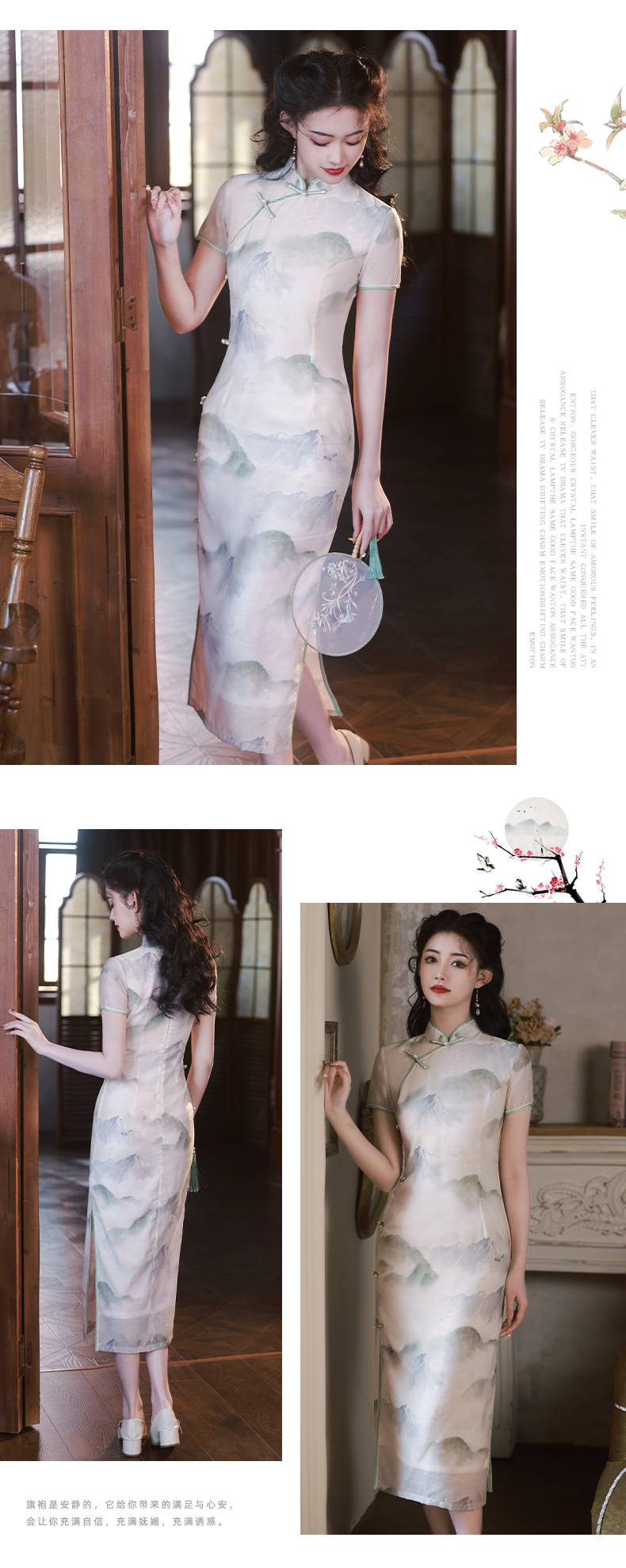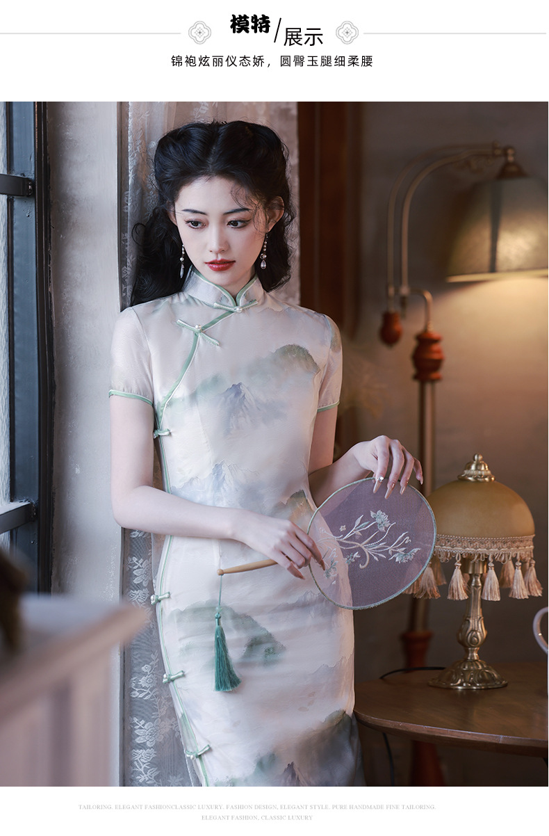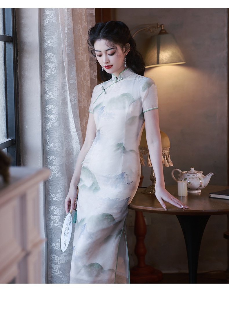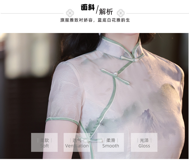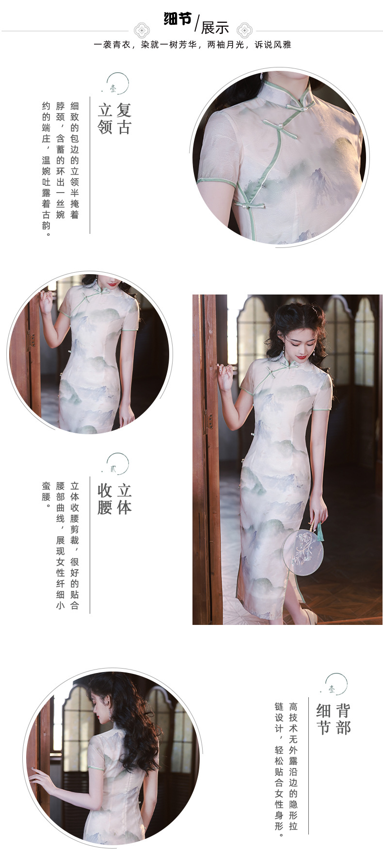 新中式半高领短袖小衫,网纱提花T恤LA43907