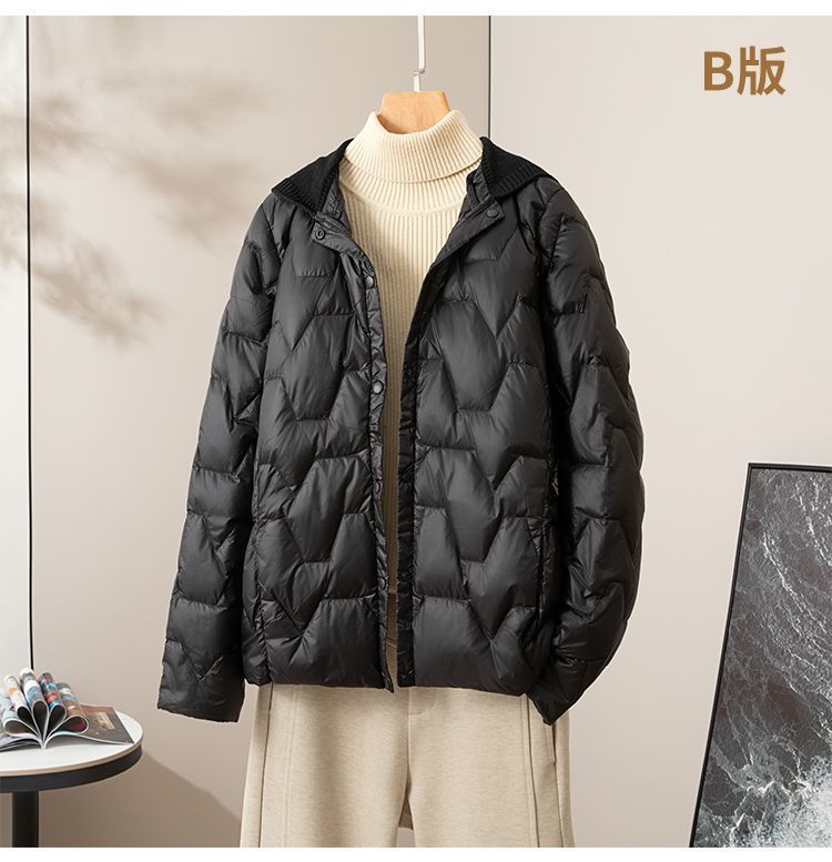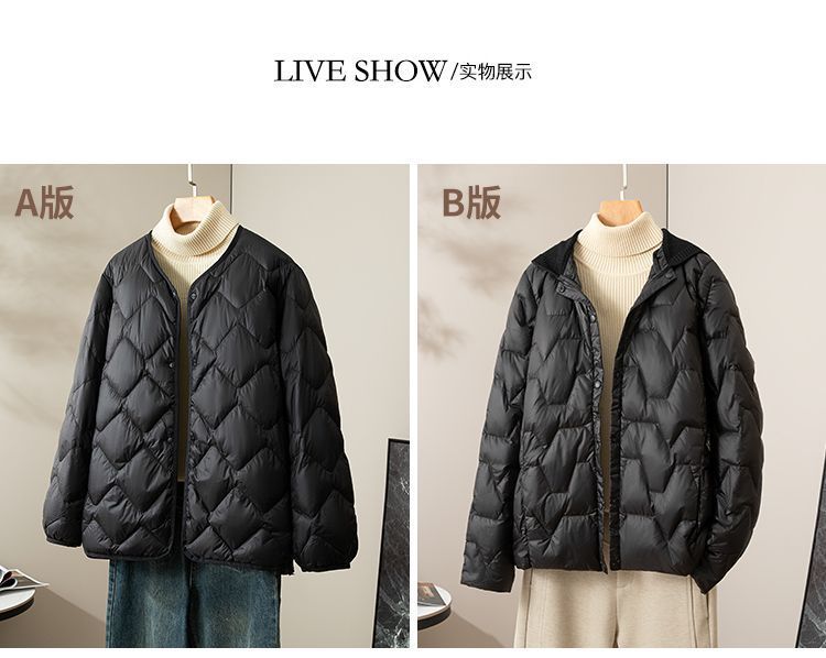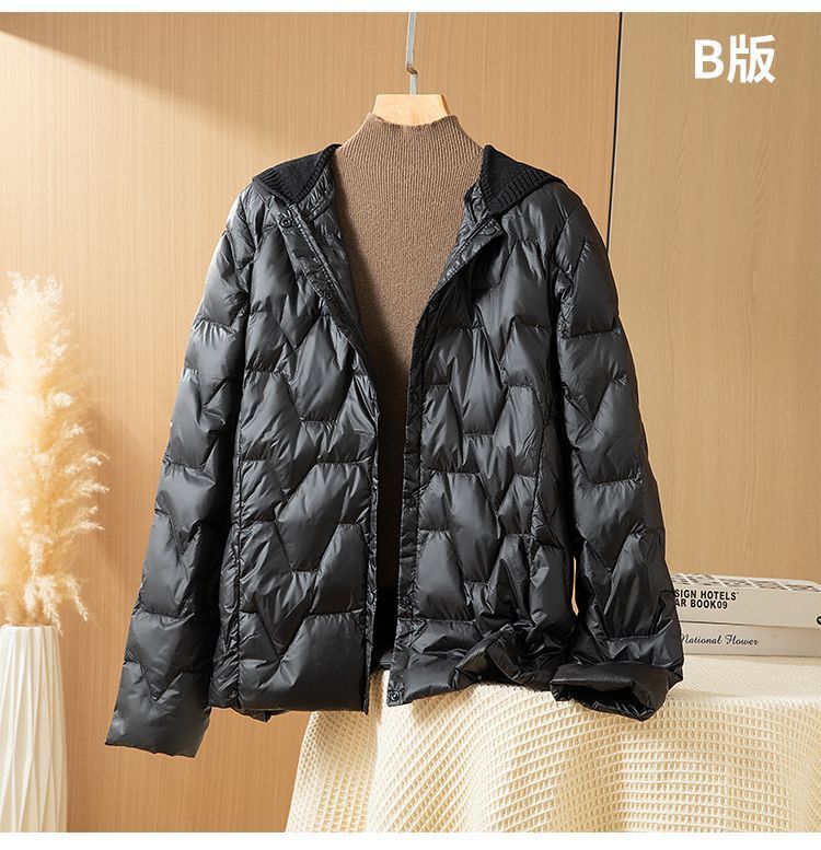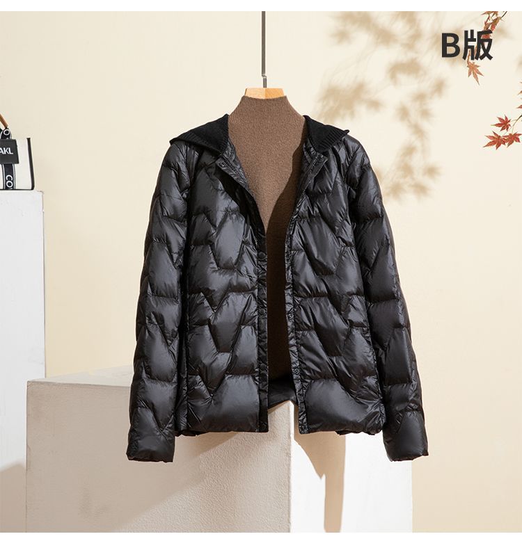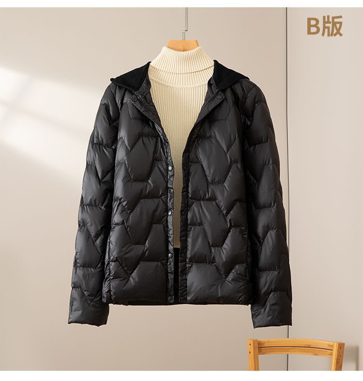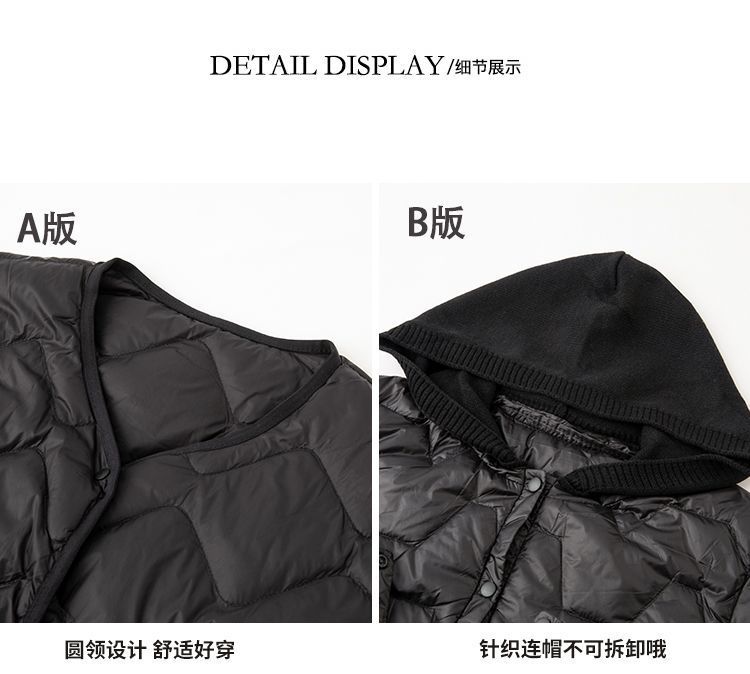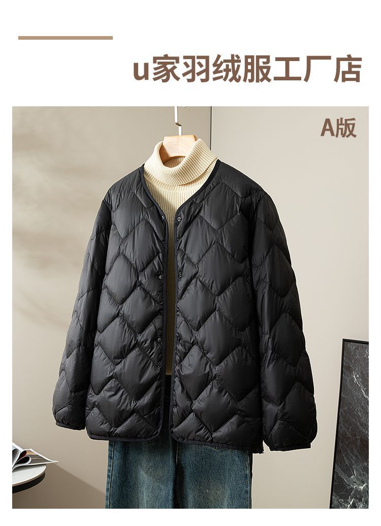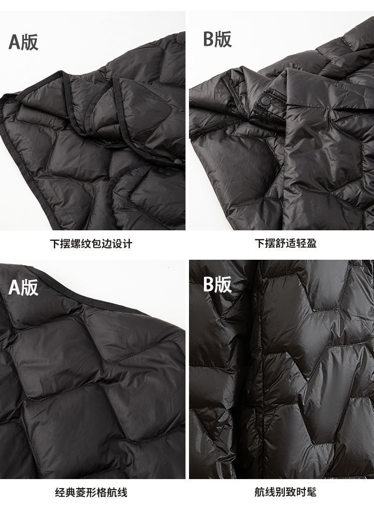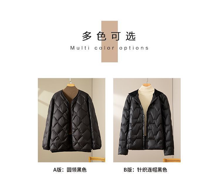 丁摩新款V领羽绒服女士轻薄宽松加大码内胆白鸭绒连帽外套AL
