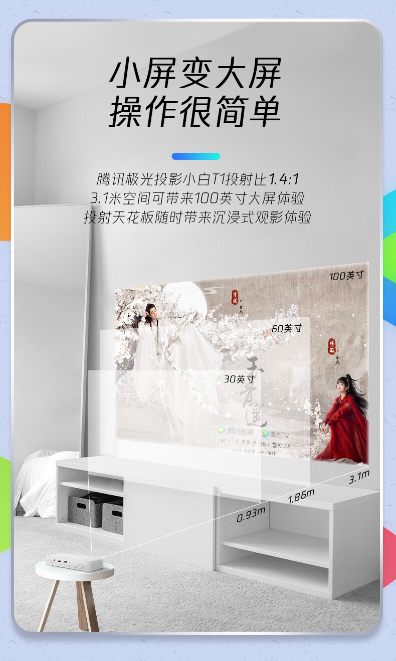【预售】腾讯极光投影 T1 投影仪家用 便携户外 露营影院投影机