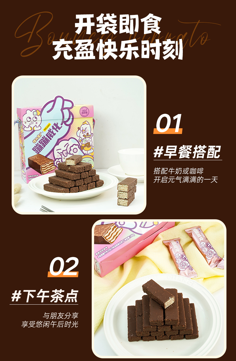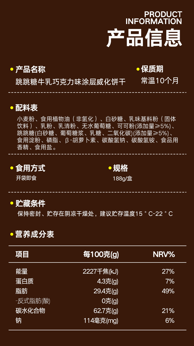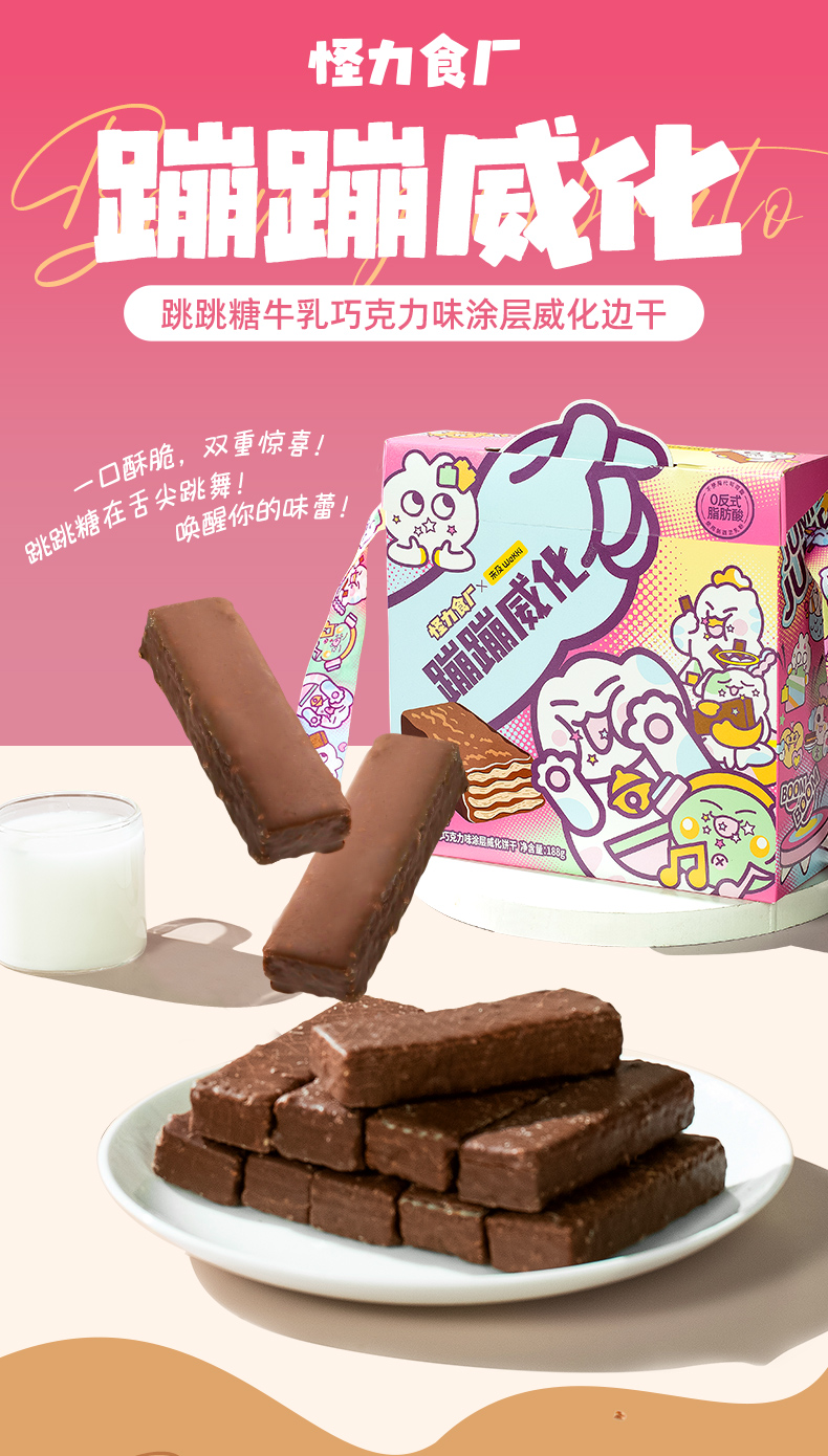 怪力食厂 跳跳糖牛乳巧克力味威化饼干 0反式脂肪酸 童趣可爱送礼 188g*1盒