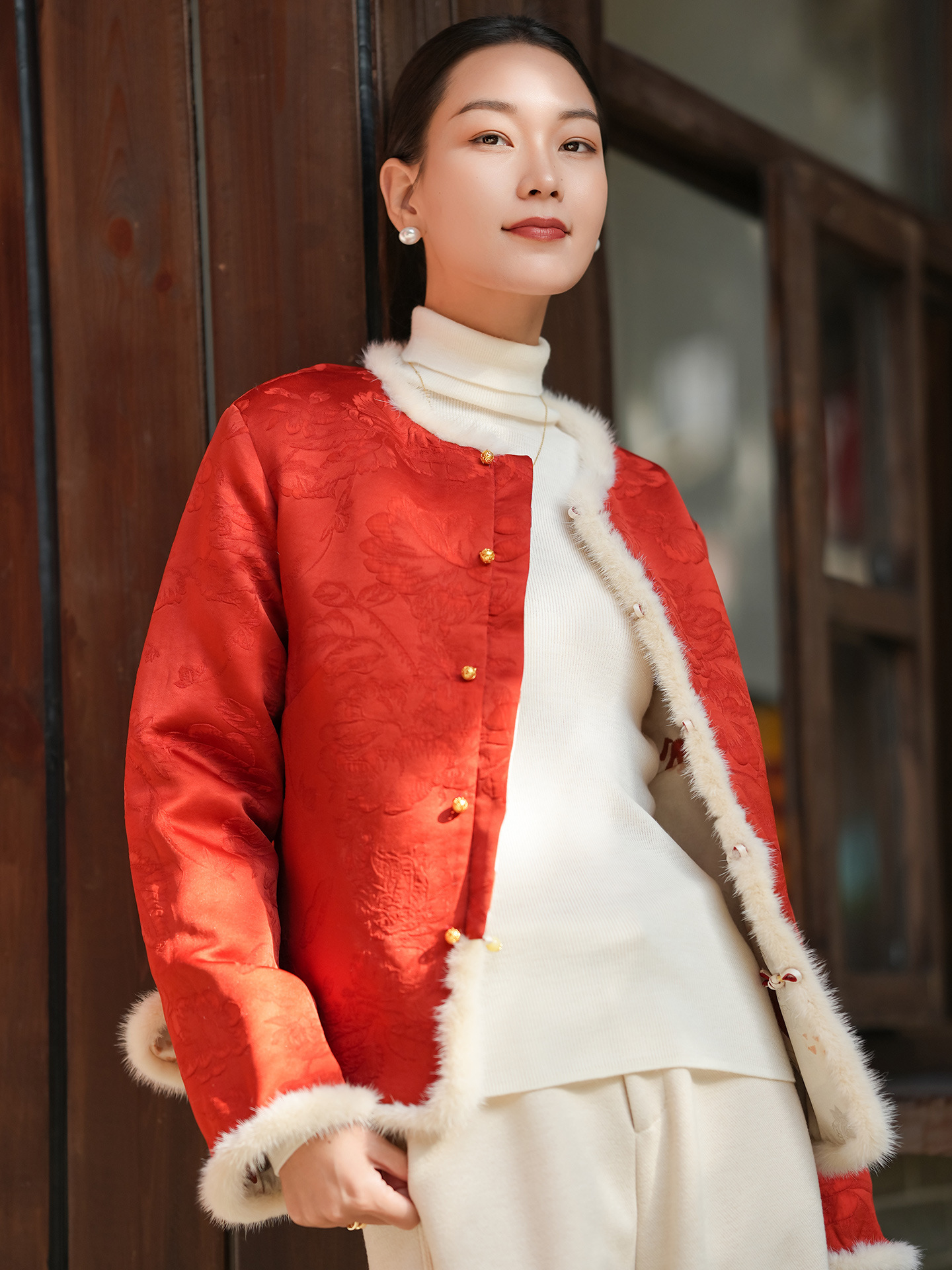 OPH XZ703-A马上过年穿搭新中式桑蚕丝棉服气质保暖真丝外套双面穿 商品图0