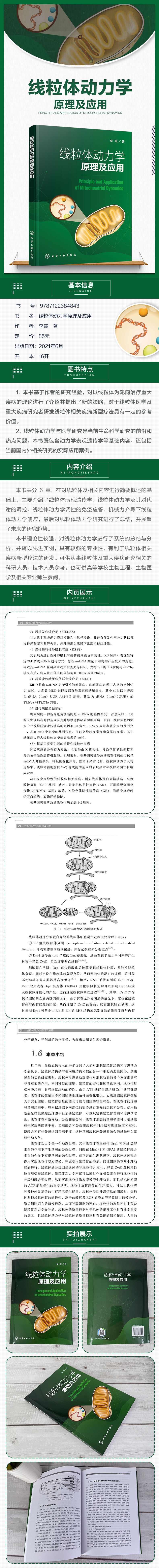 本书理论性较强,对线粒体动力学进行了系统的总结与分析,并辅以先进实例,具有较强的专业性,有利于线粒体相关疾病新型疗法的研发。本书可供从事线粒体及重大疾病研究等工作的科研人员、技术人员参考,也可供高等学校生物工程、生物医学及相关专业师生参阅。