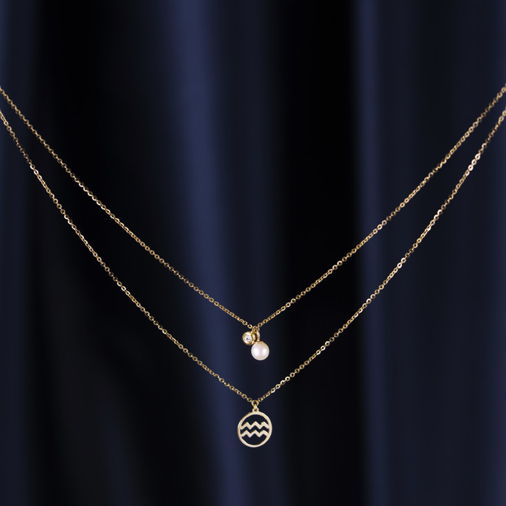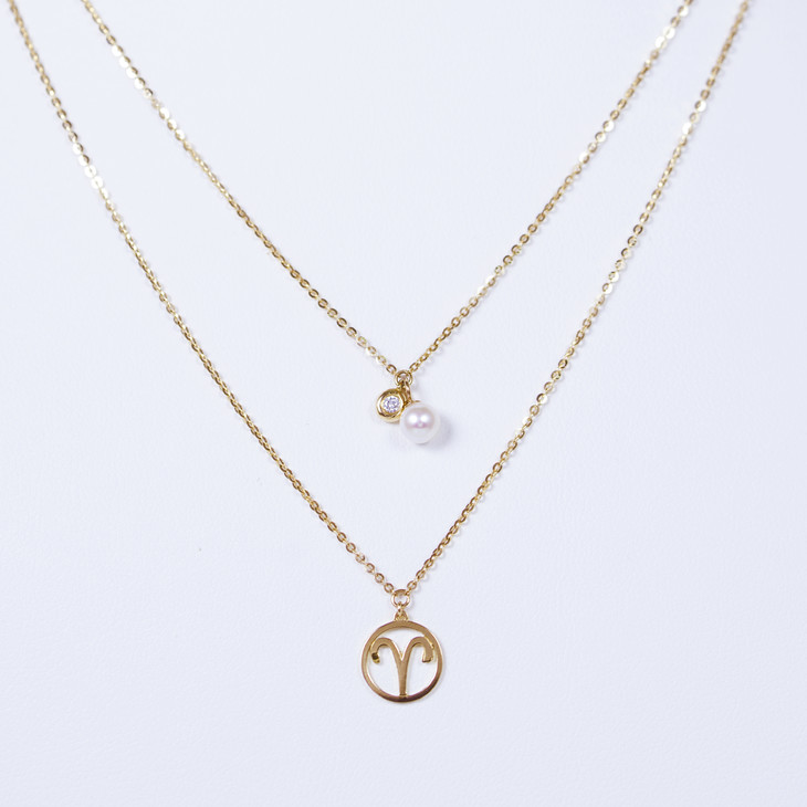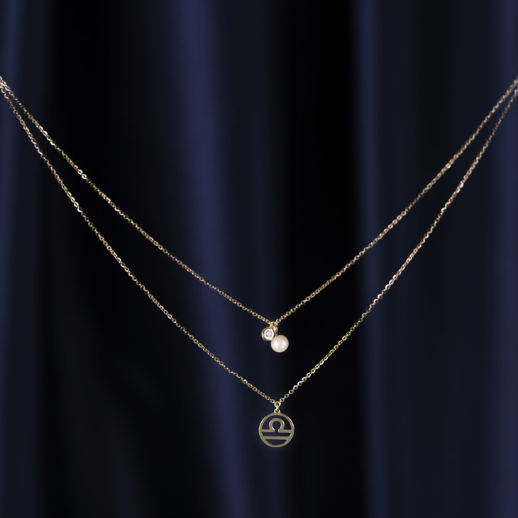双层叠戴效果的二合一项链,星座与baby Akoya,锆石互相衬托点缀