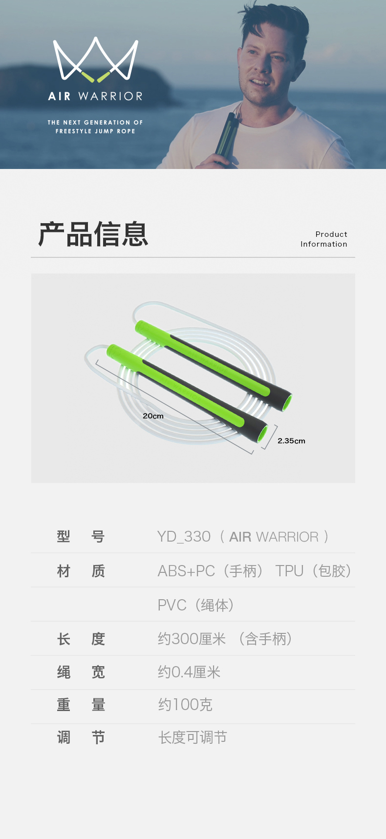 【跃动 x 世锦赛AIR WARRIOR系列 魔法棒】跳绳健身绳减肥运动专用跳神 专业绳子竞速比赛花式胶绳 长度可调