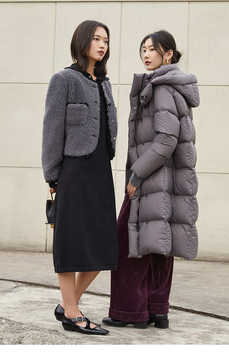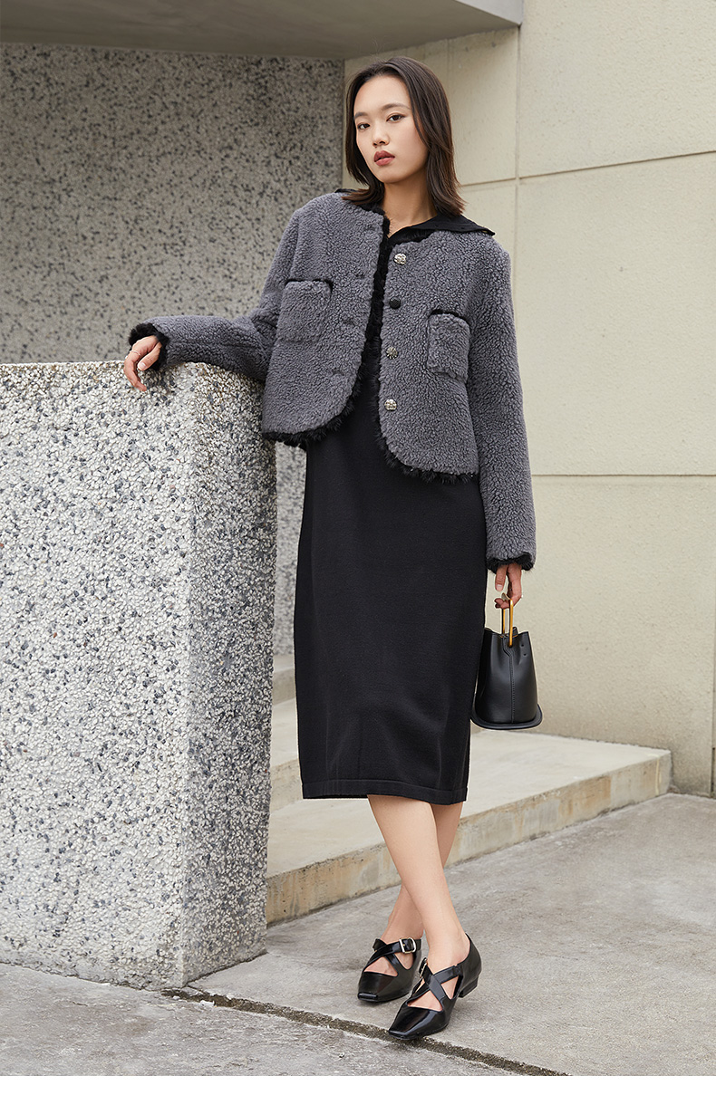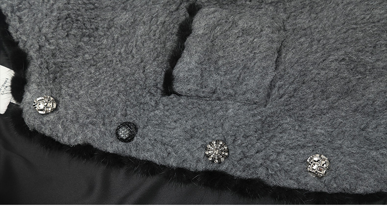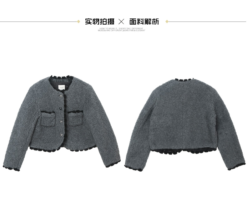 灰调毛绒短款夹克女 撞色毛边装饰圆领单排扣上衣 法式小香风秋冬温柔质感外套