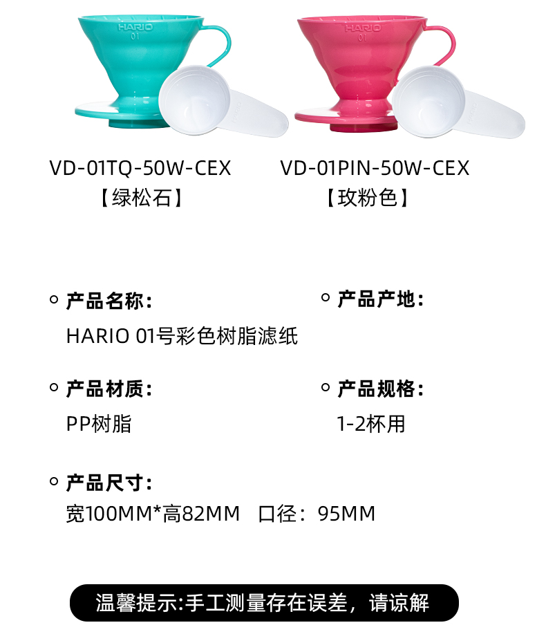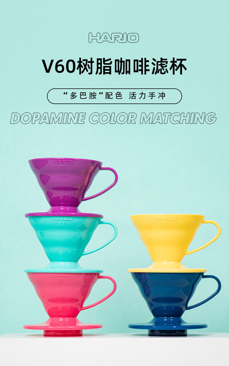 【HARIO】多巴胺色滤杯咖啡V60树脂滤杯手冲咖啡杯滴滤杯VD