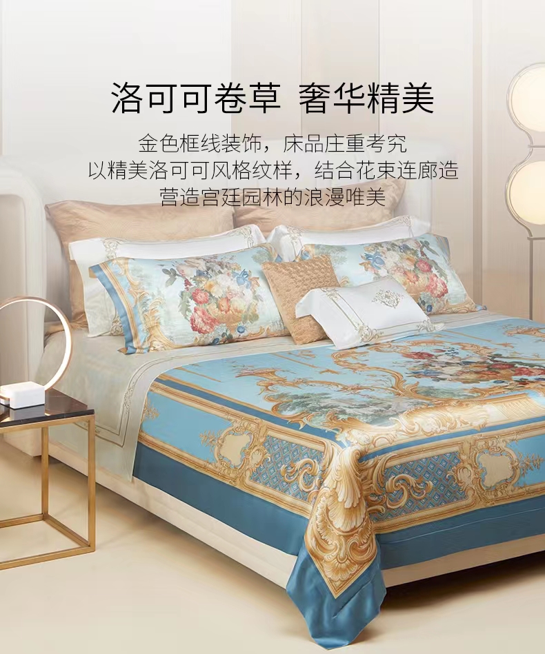 ROYALCOVER/罗卡芙 复古洛可可宫廷风真丝数码印花四件套美泉宫规格240*240
