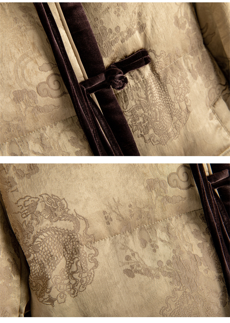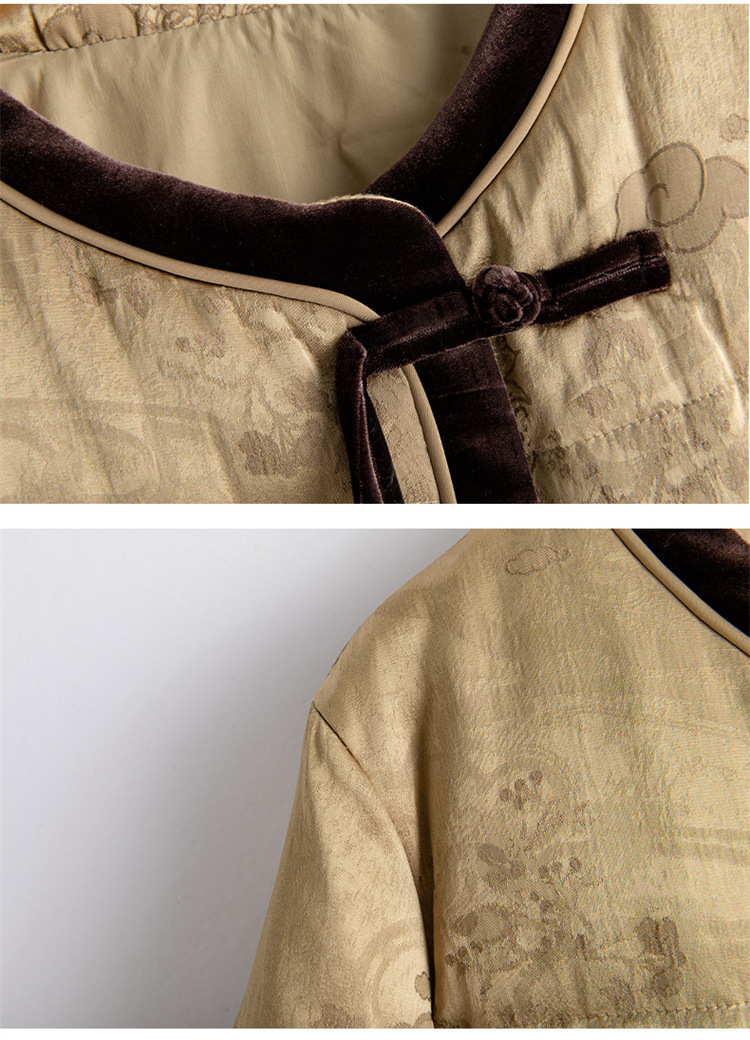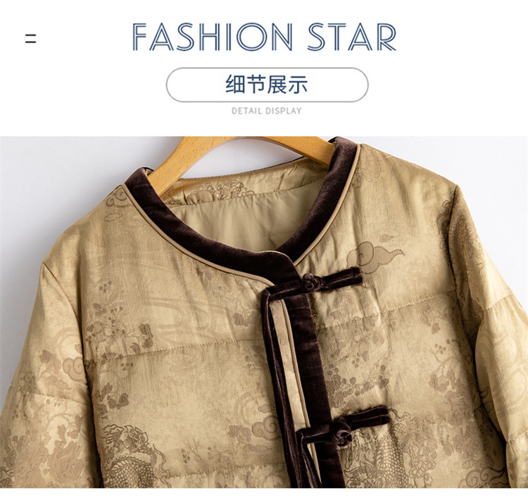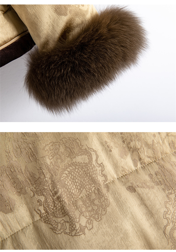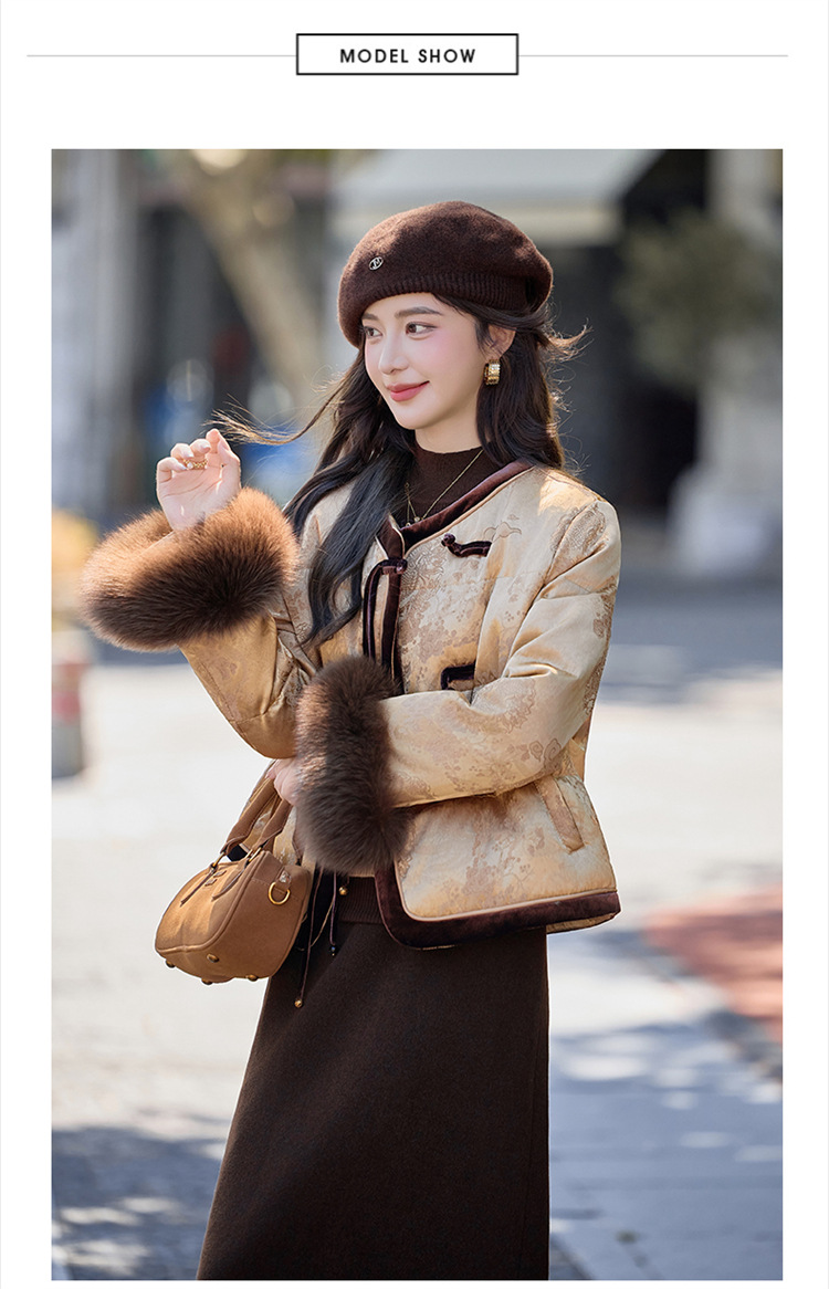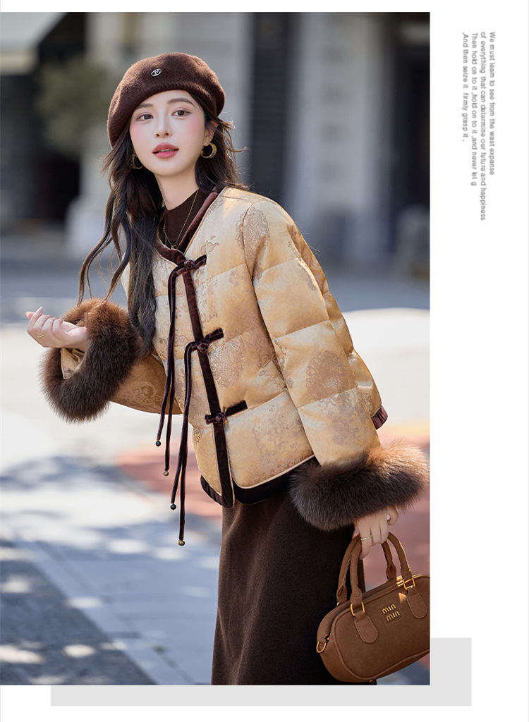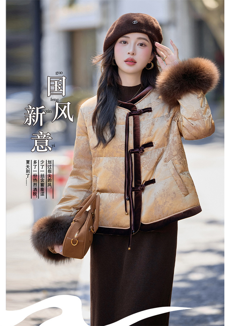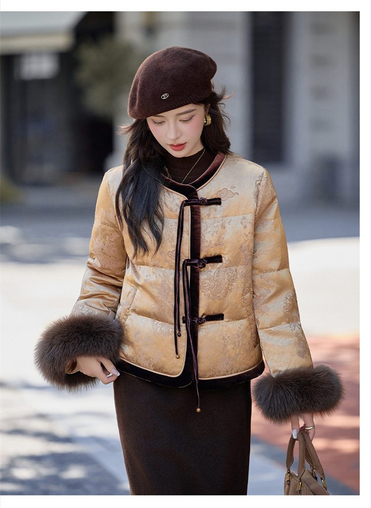 2025冬季新款款圆领提花料新中式真狐狸毛袖短款女式羽绒服SYY2693