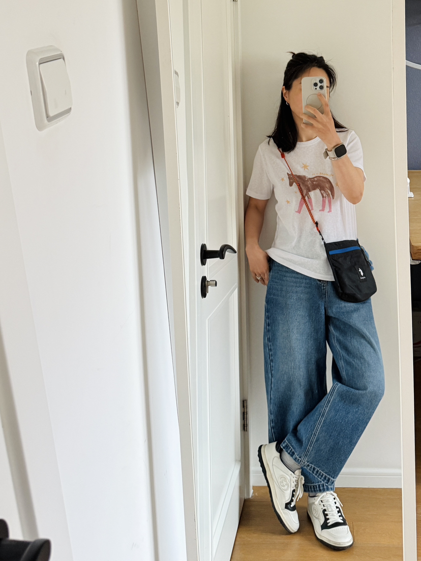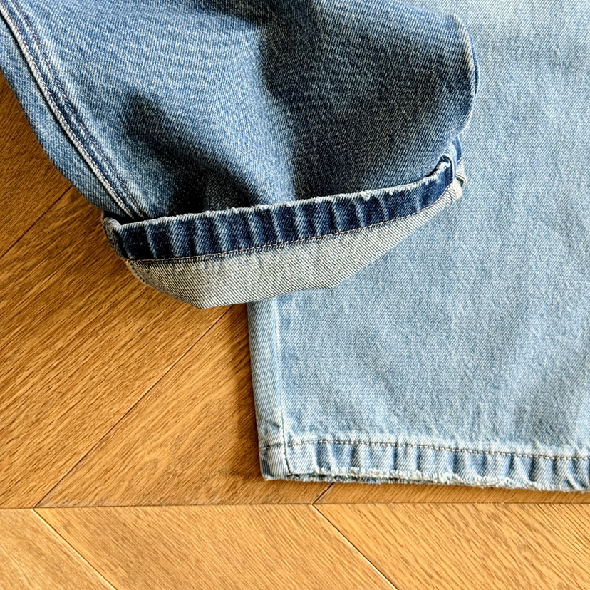 镰刀牛仔裤!建议大家人手一条,轻松驾驭各种腿型,不仅复古雅痞腔调满分,还大写的好搭、显高显瘦,自带酷飒腔调,随性又自然~中高腰香蕉裤镰刀裤长裤型,不夸张的弧形线条自然流畅,裤脚口微收,结构线视觉收窄前片面积,更显瘦,同时修饰腿型,拉长腿部比例,凸显腿长,裤型包容度足够大,不挑人穿,能很好隐藏腿粗、腿不直、胯宽等身型缺陷~