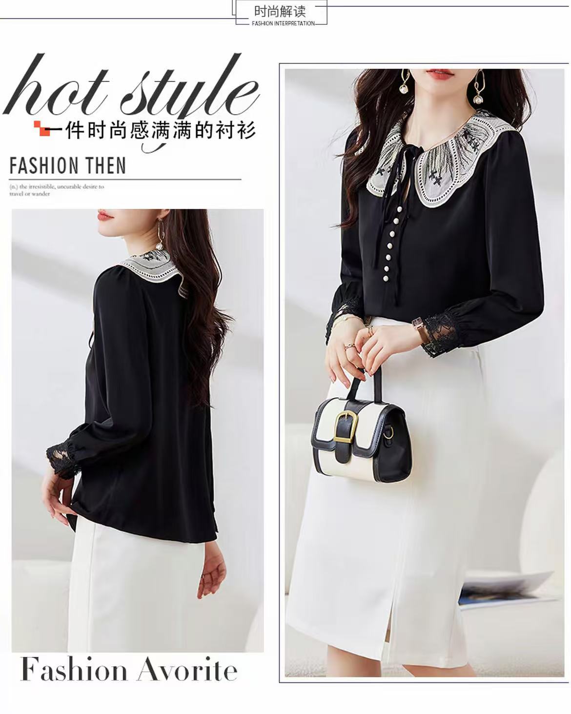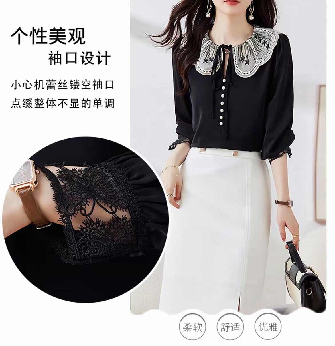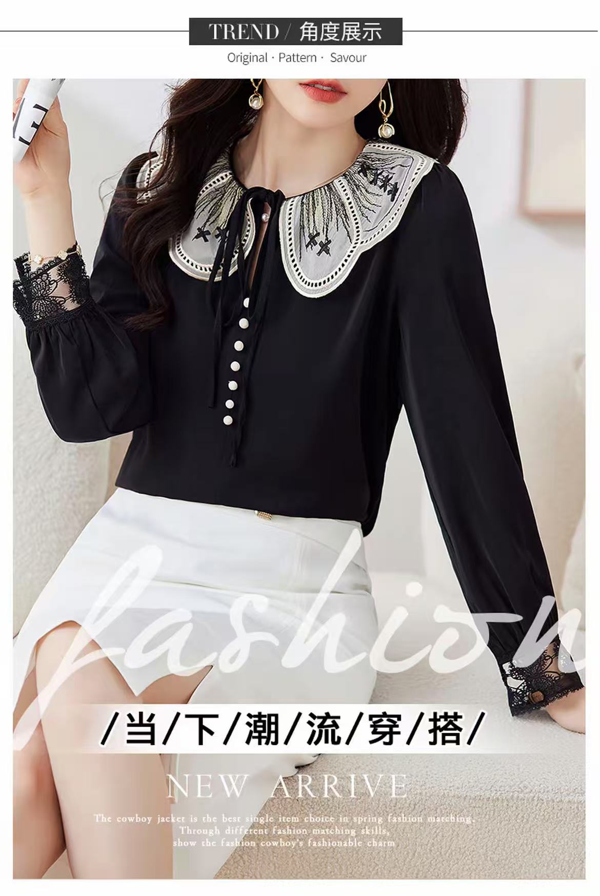 【早秋特卖】88103蕾丝刺绣系带优雅气质长袖小衫衬衫-喜出