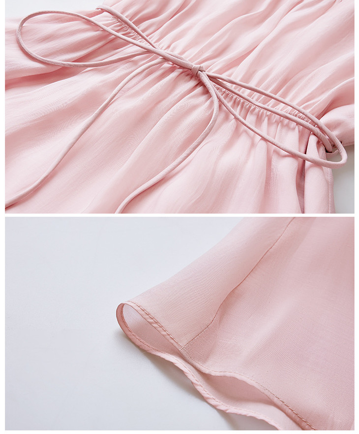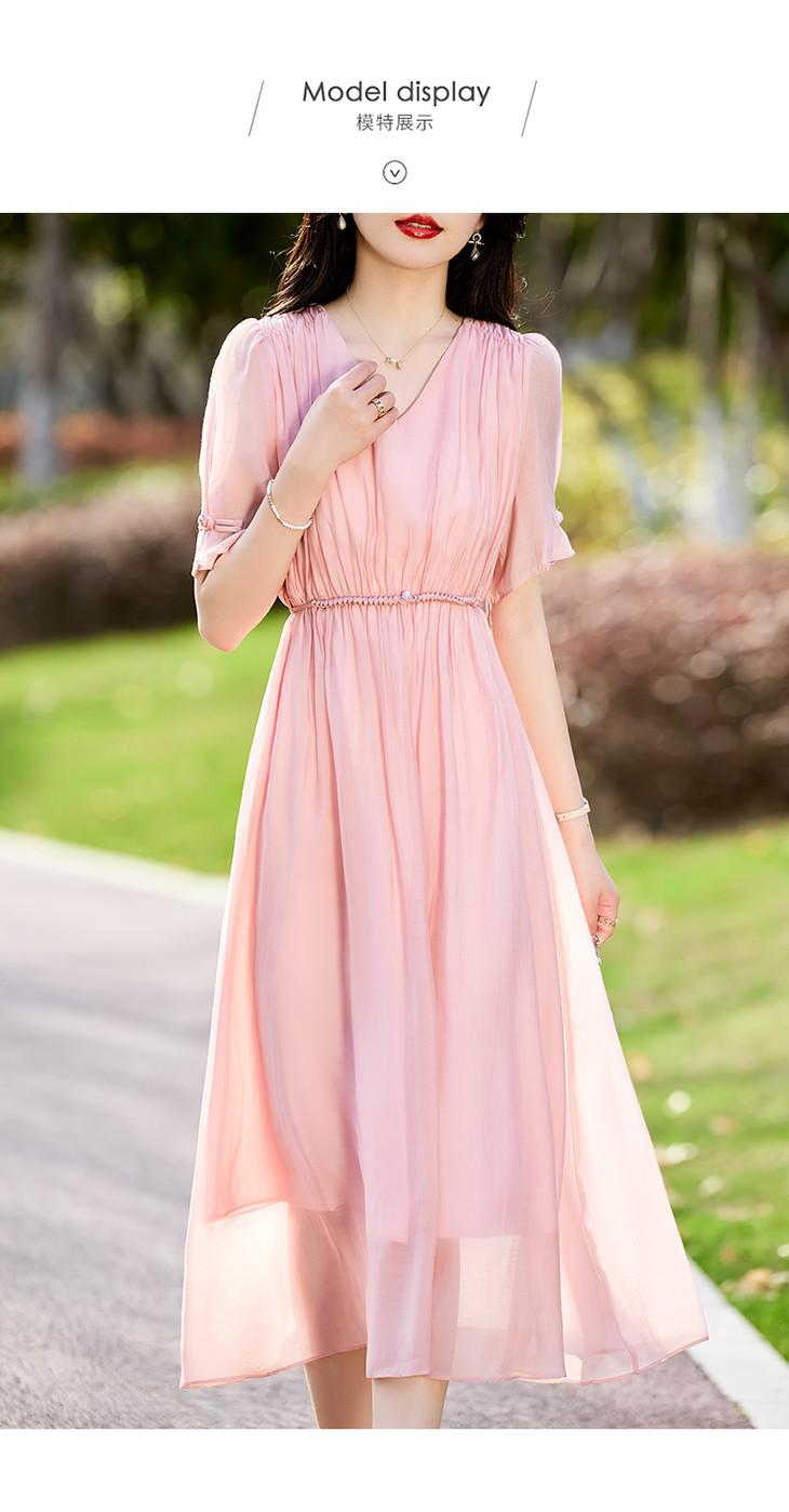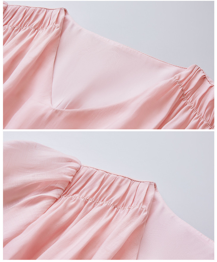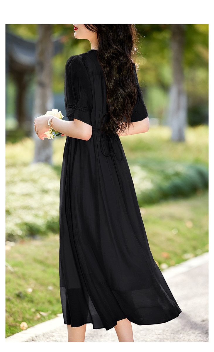 韩版纯色V领盘扣复古连衣裙 CWX9016