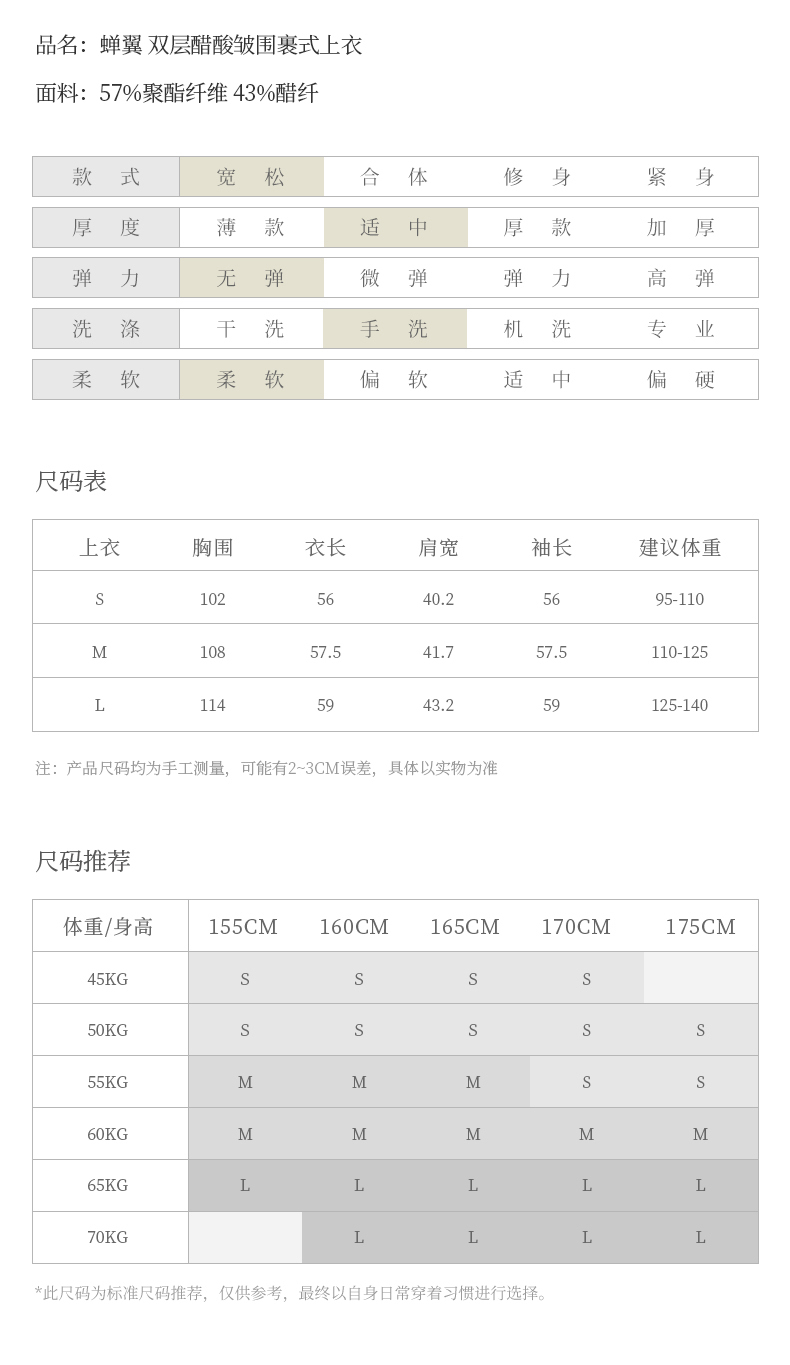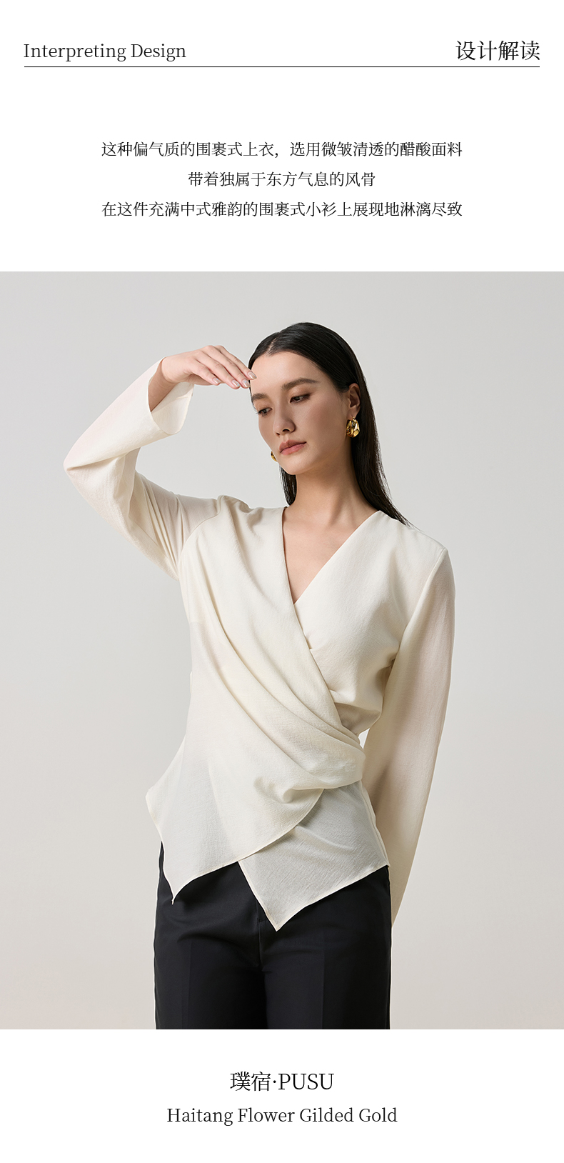 54543 璞宿PUSU蝉翼 双层醋酸皱围裹式上衣