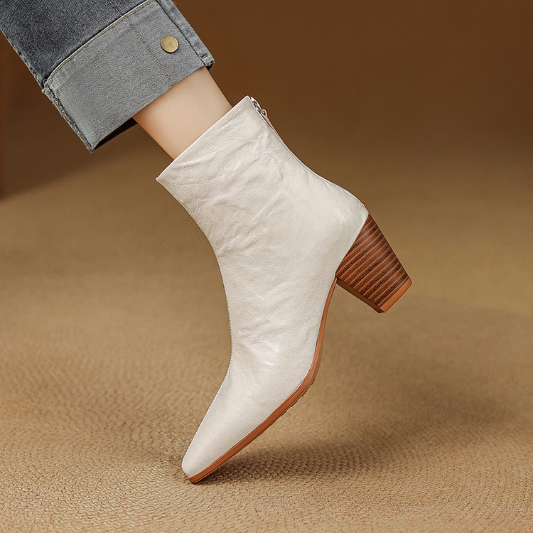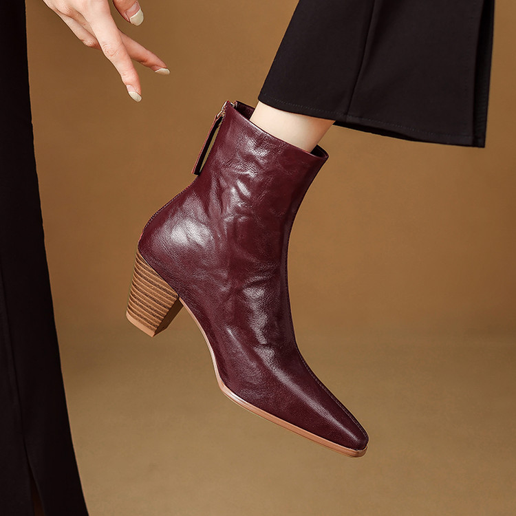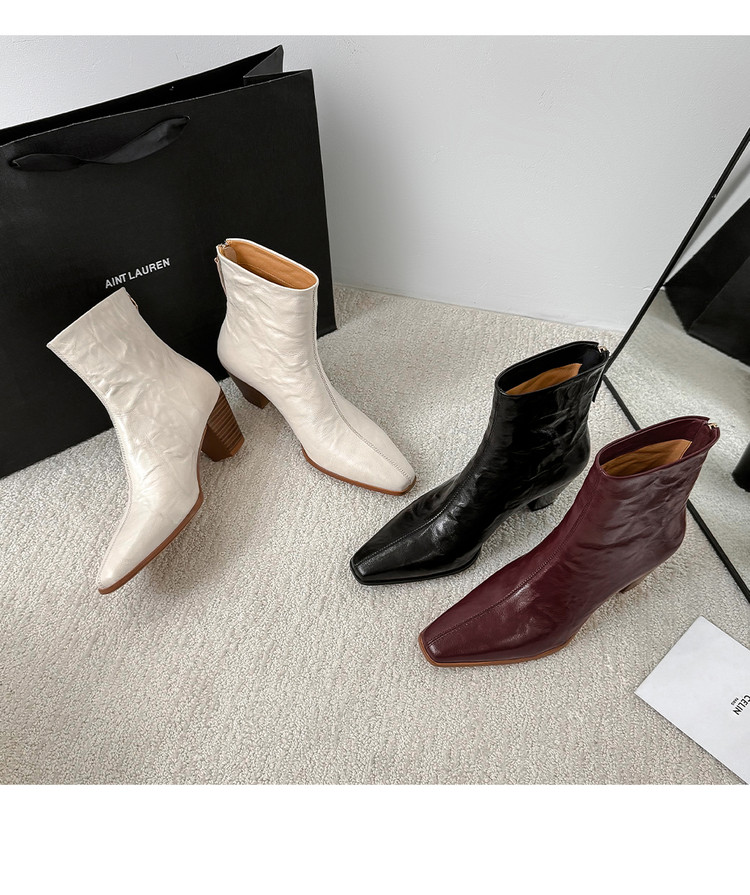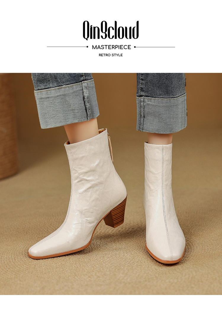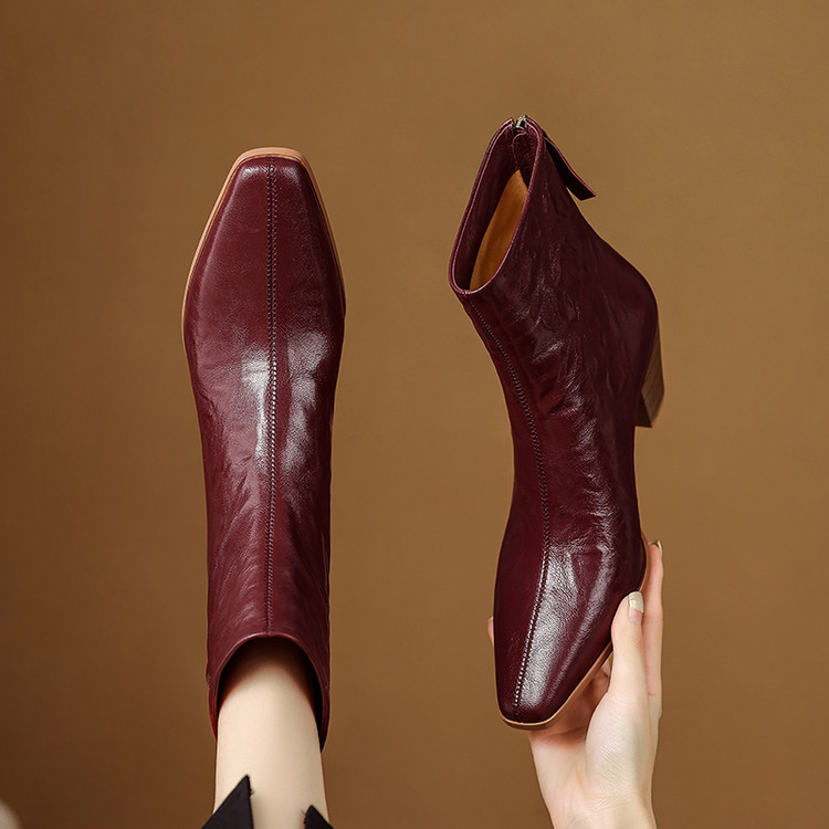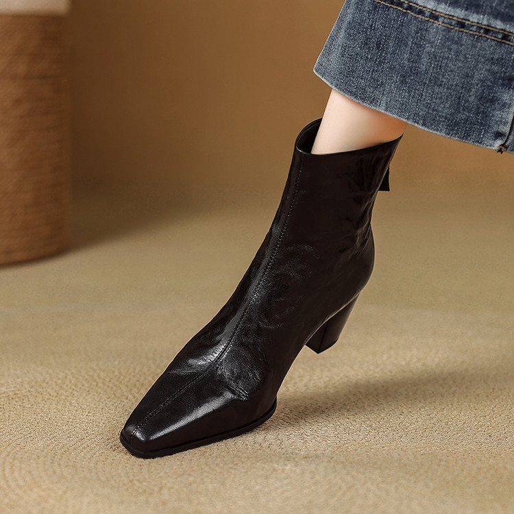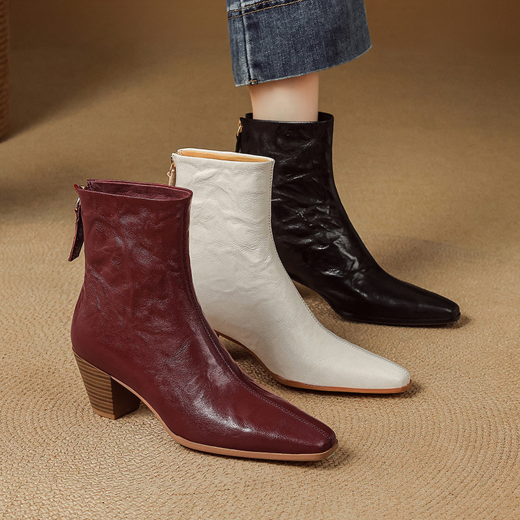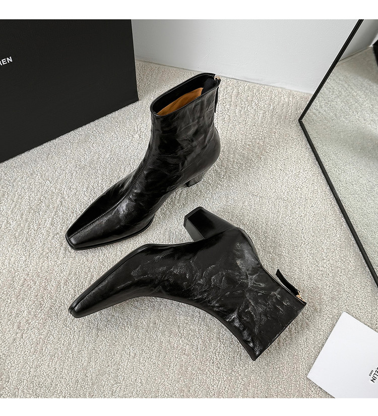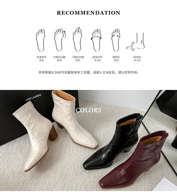 【预售5天】软羊皮高跟短靴女秋季新款简约百搭方头后拉链粗跟女靴子AA&C3345