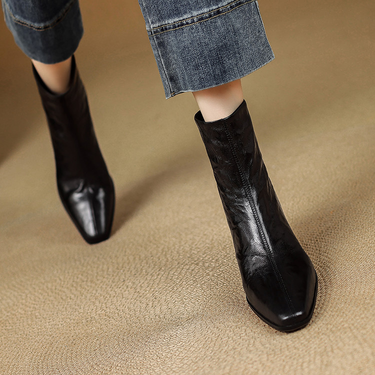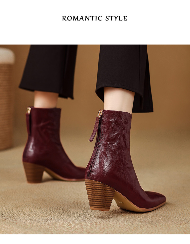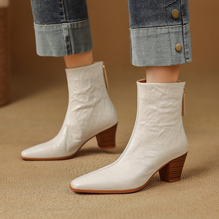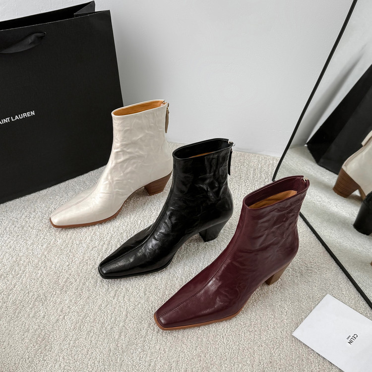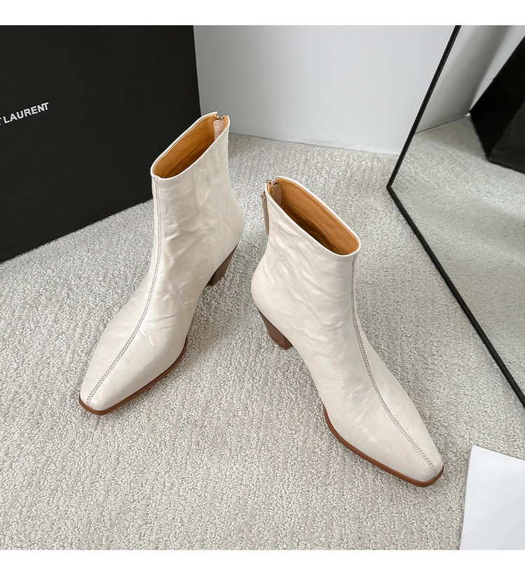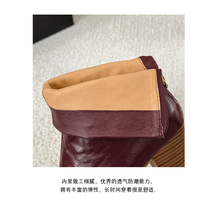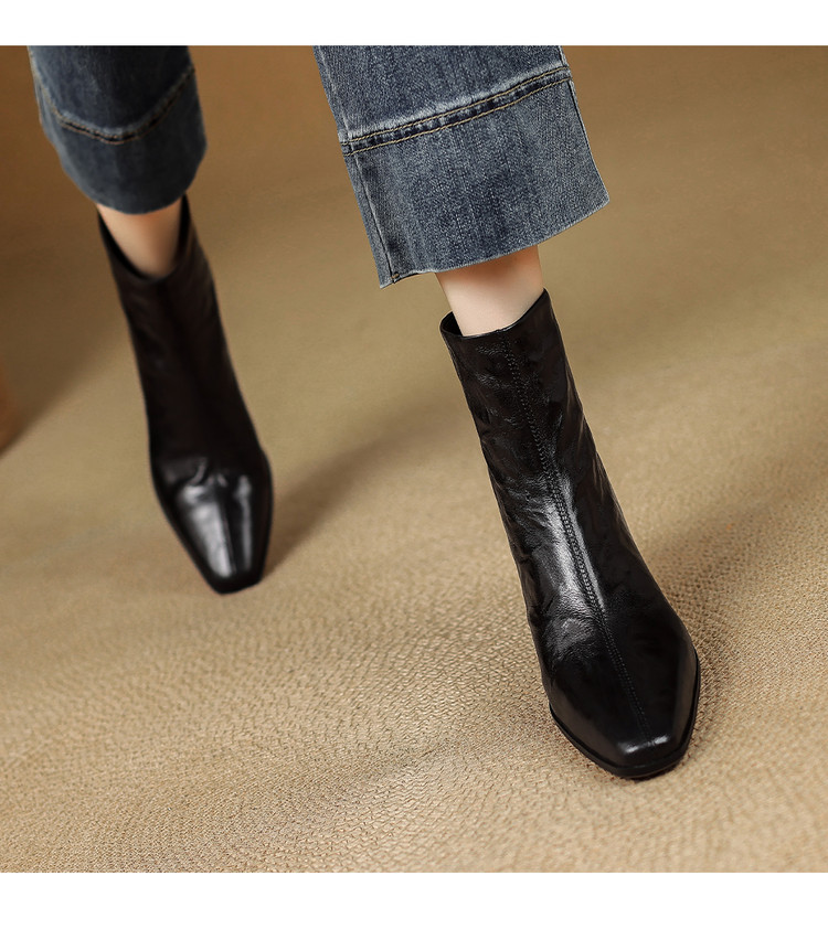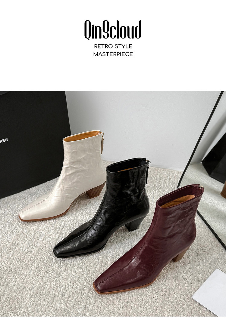 【预售5天】软羊皮高跟短靴女秋季新款简约百搭方头后拉链粗跟女靴子AA&C3345