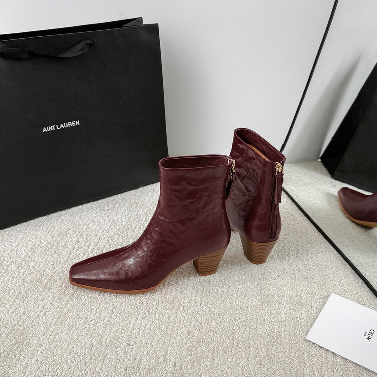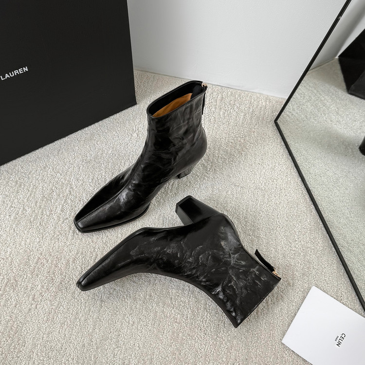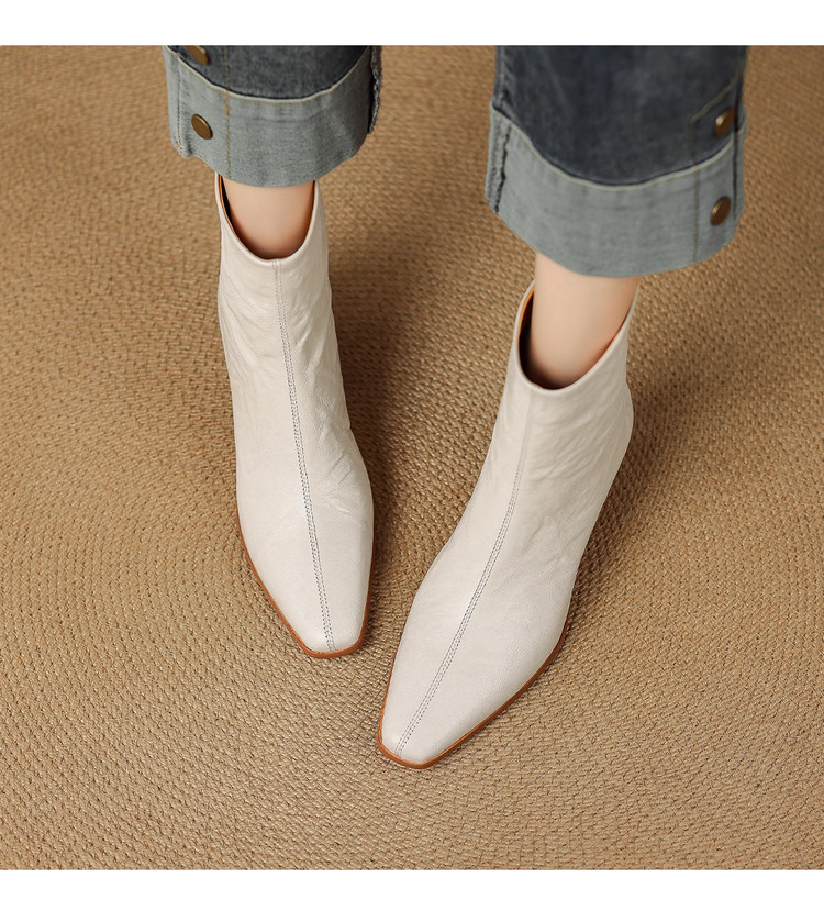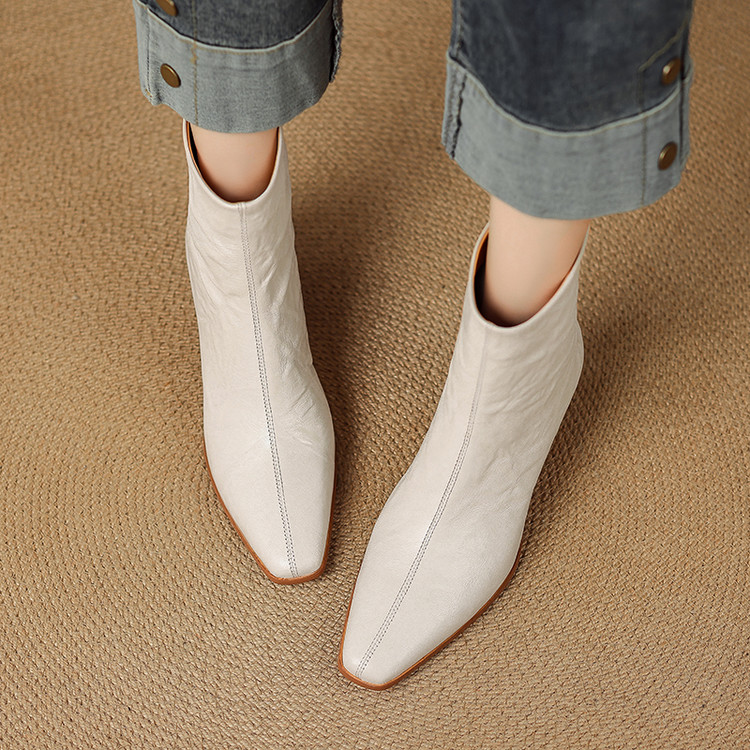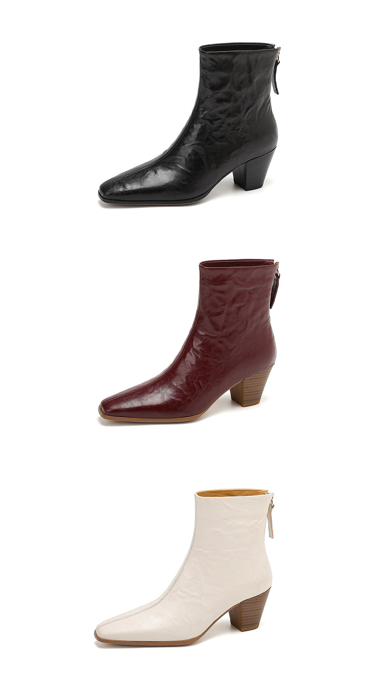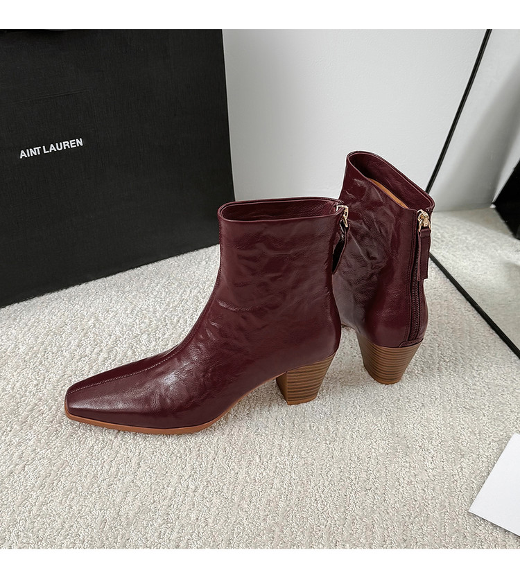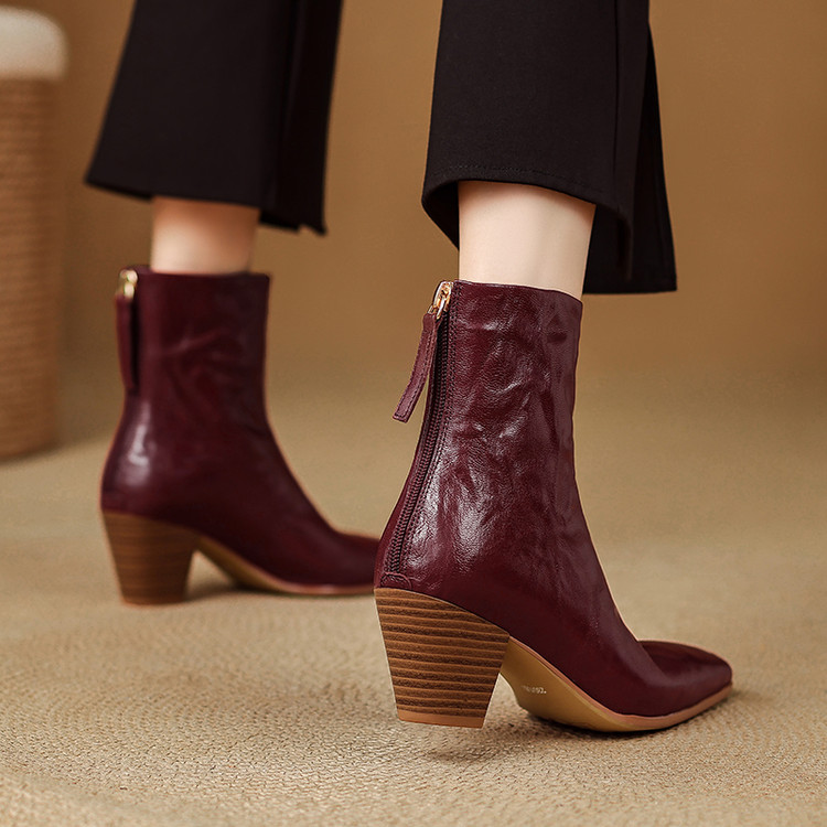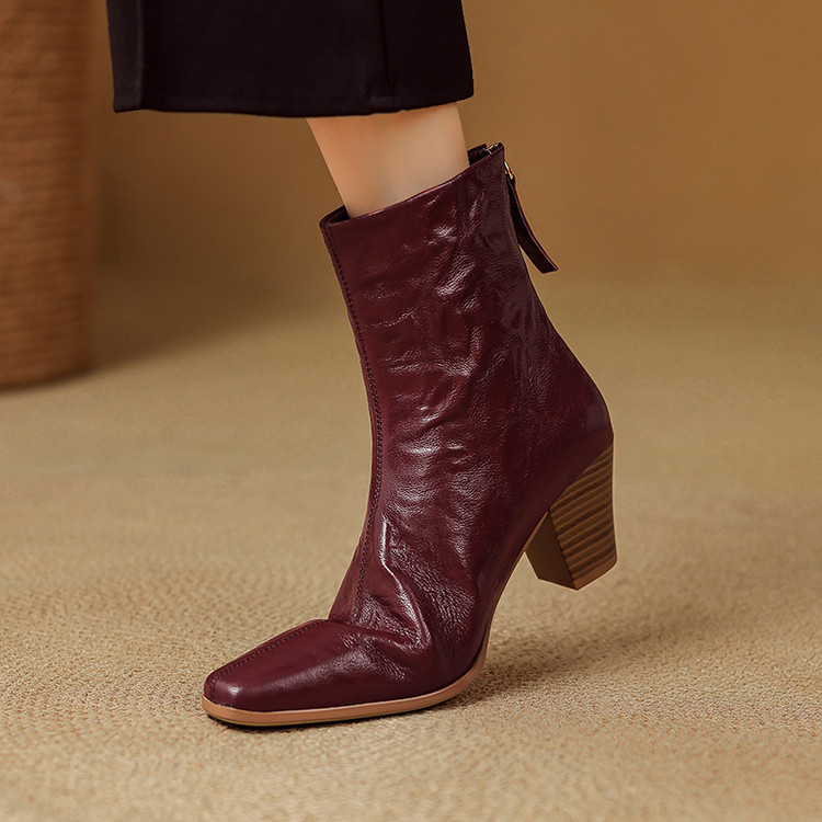【预售5天】软羊皮高跟短靴女秋季新款简约百搭方头后拉链粗跟女靴子AA&C3345